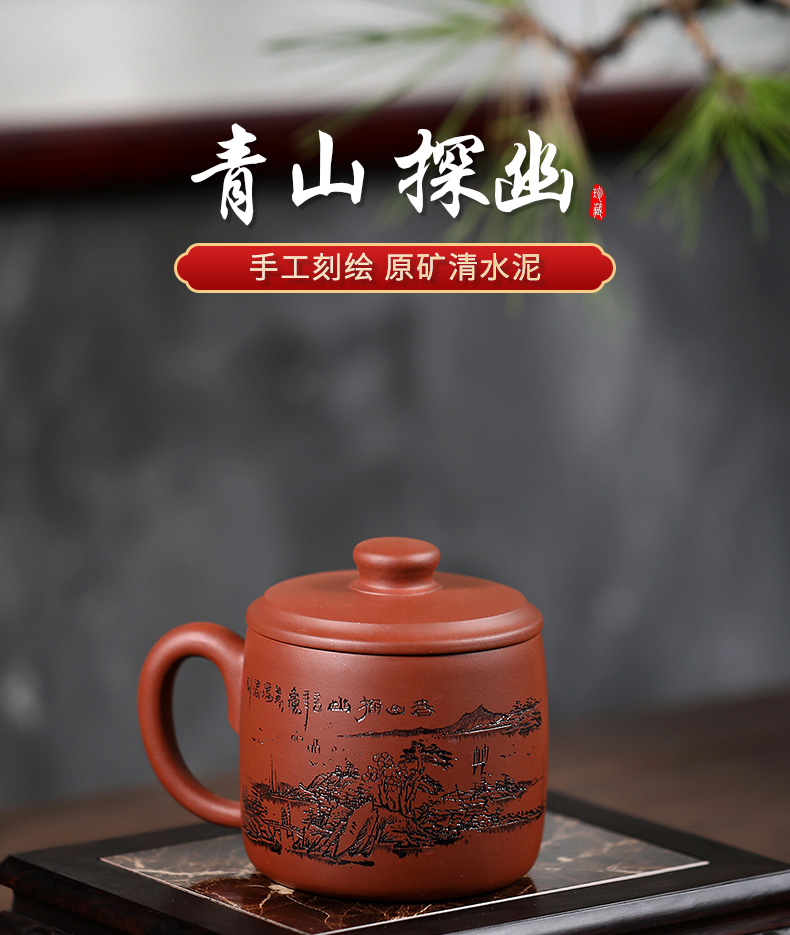 【非同款】宜兴原矿紫砂杯茶杯正宗清水泥大容量纯手工办公单人家用青山探幽