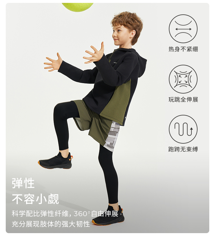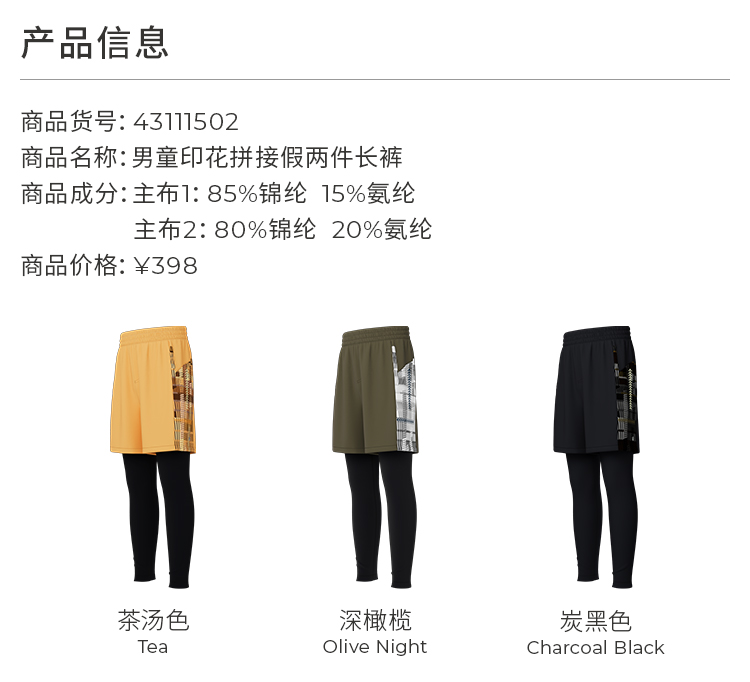 【24年秋新】moodytiger24秋新男童紧身透气速干假两件运动长裤43111502