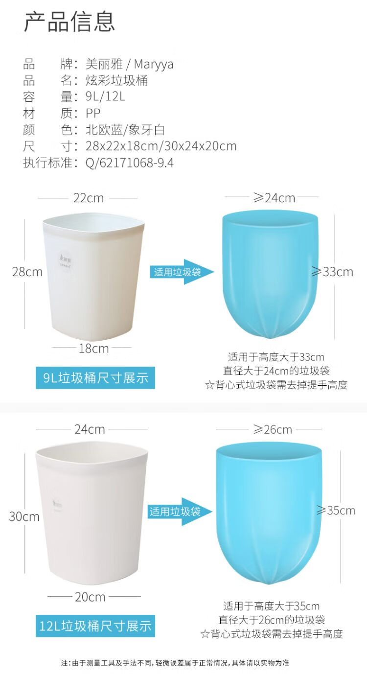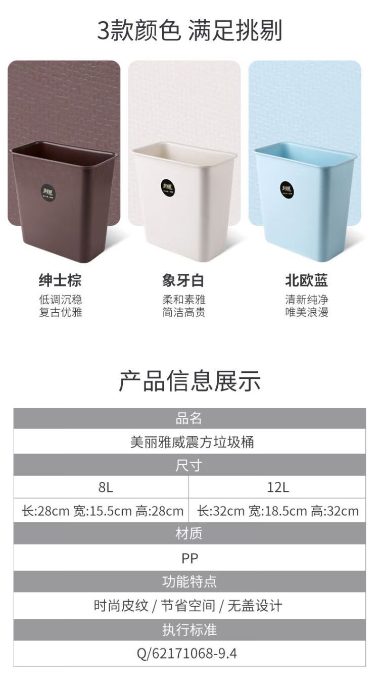 美丽雅炫彩垃圾桶方形(大)/个
