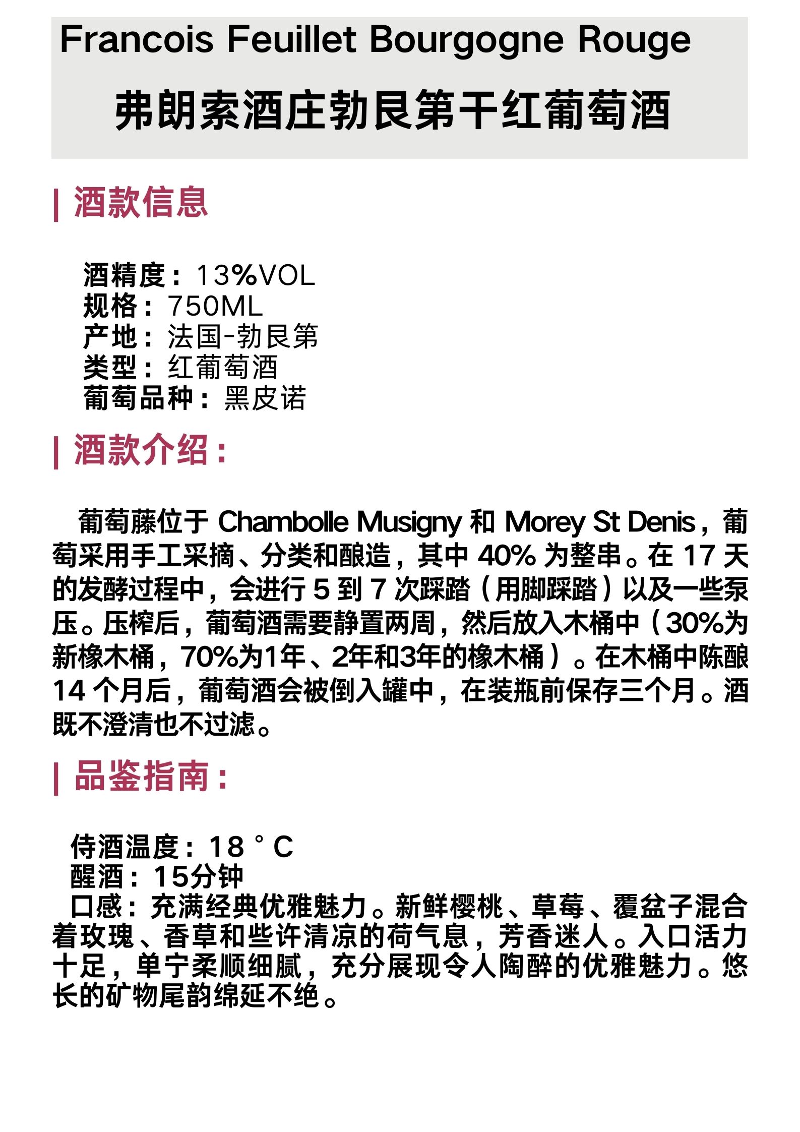 弗朗索酒庄勃艮第干红葡萄酒 Francois Feuillet Bourgogne Rouge
