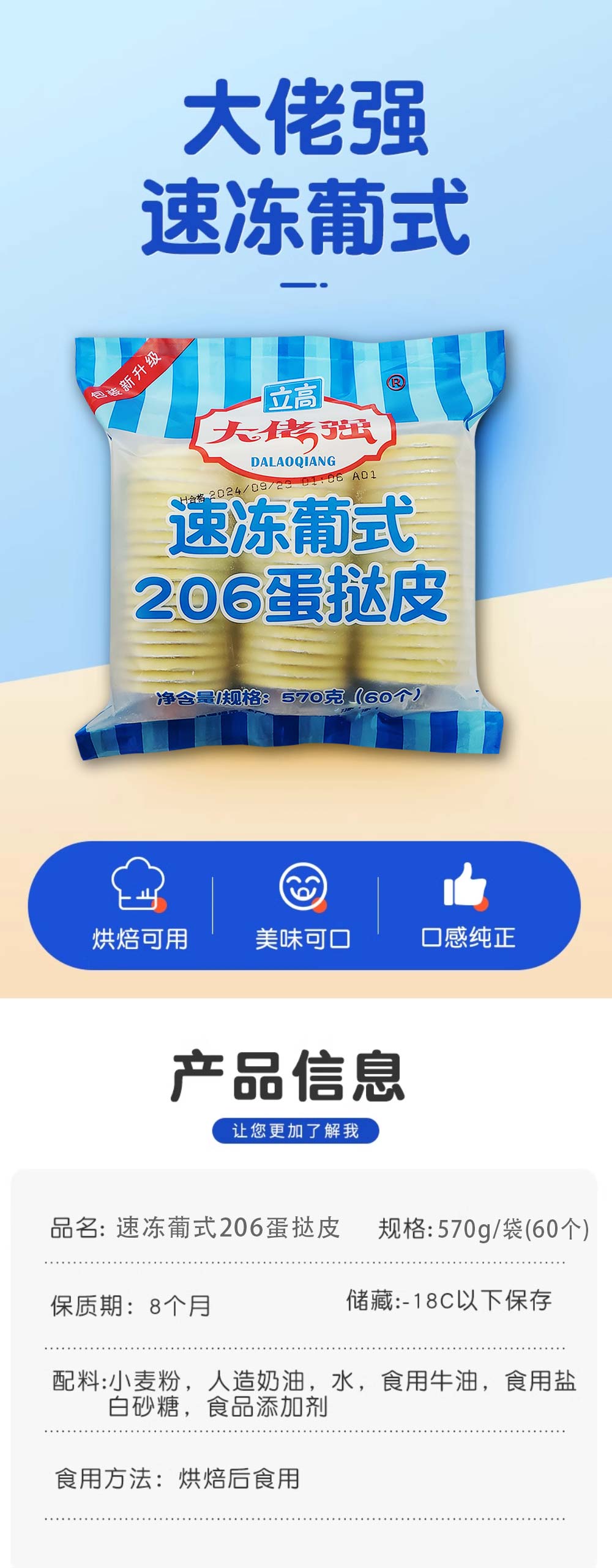 立高(大佬强)速冻葡式206蛋挞皮 570g/袋(60个) 11袋/件