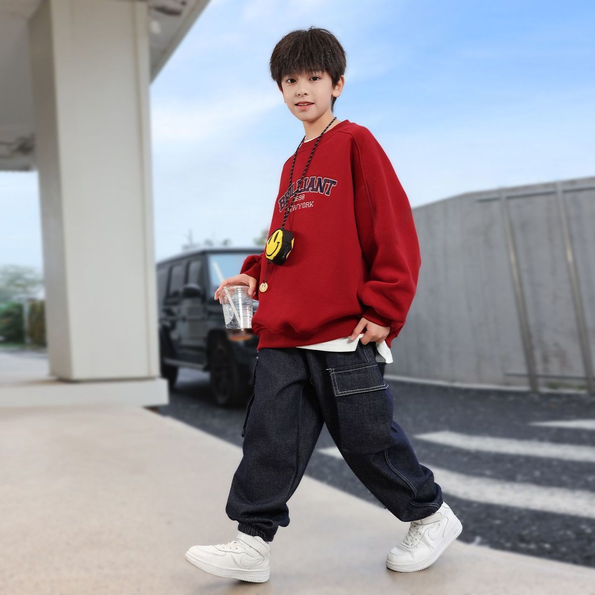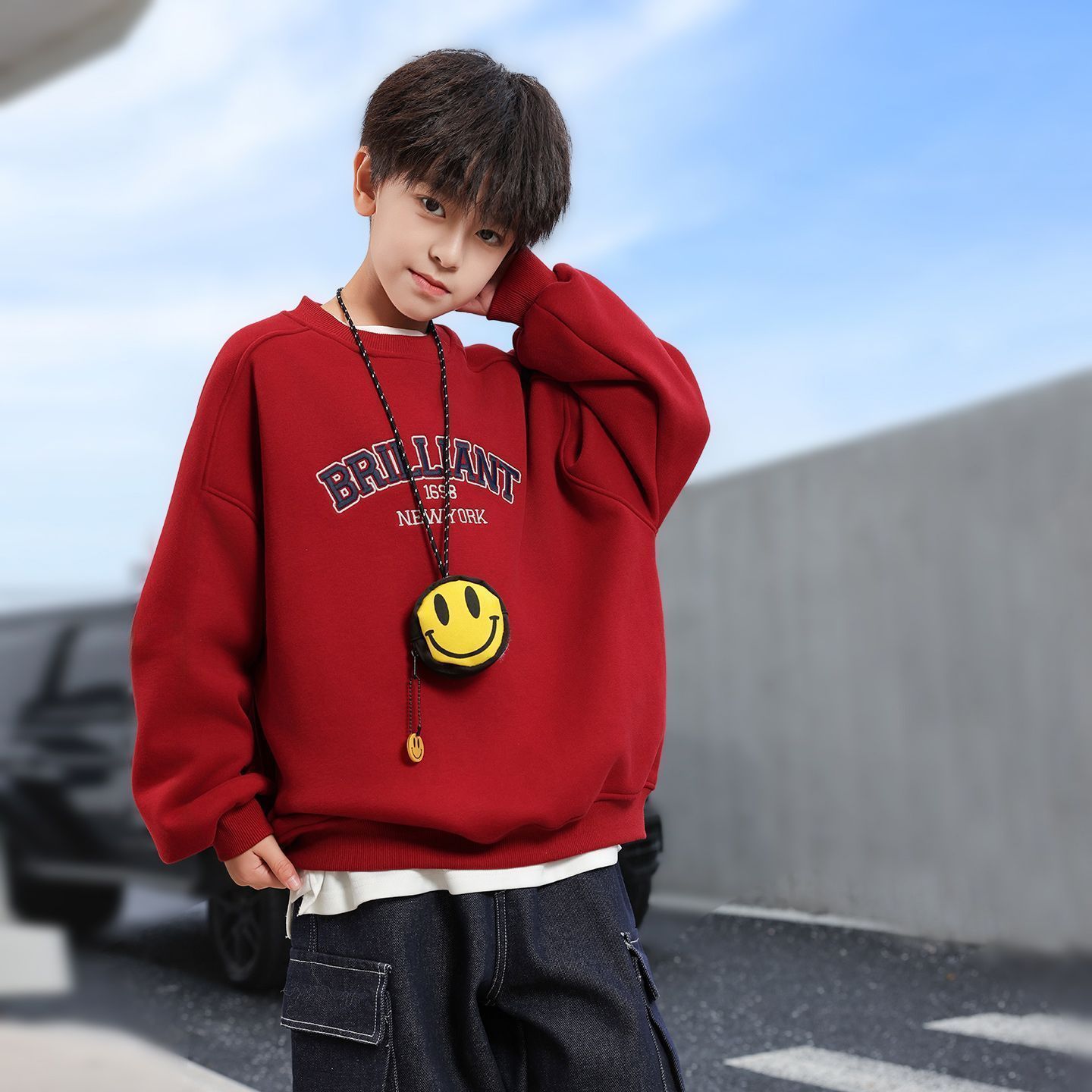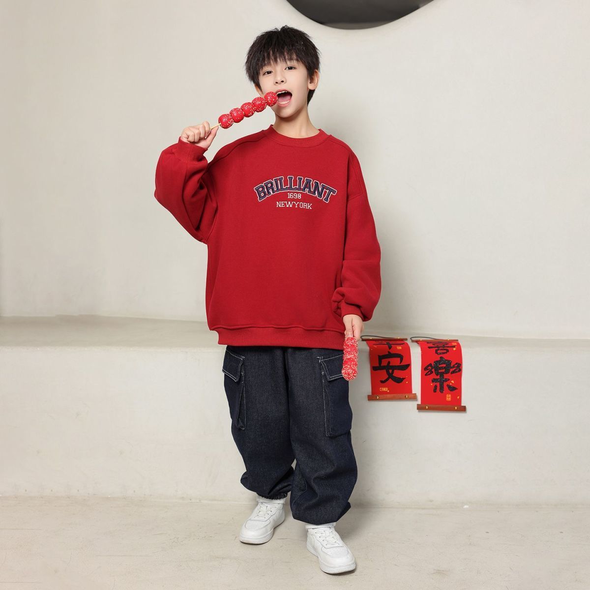 【马年!红卫迎新春】秋冬季新款男童装年服 加绒加厚卫衣 中大童男童女孩韩版洋气圆领上衣服