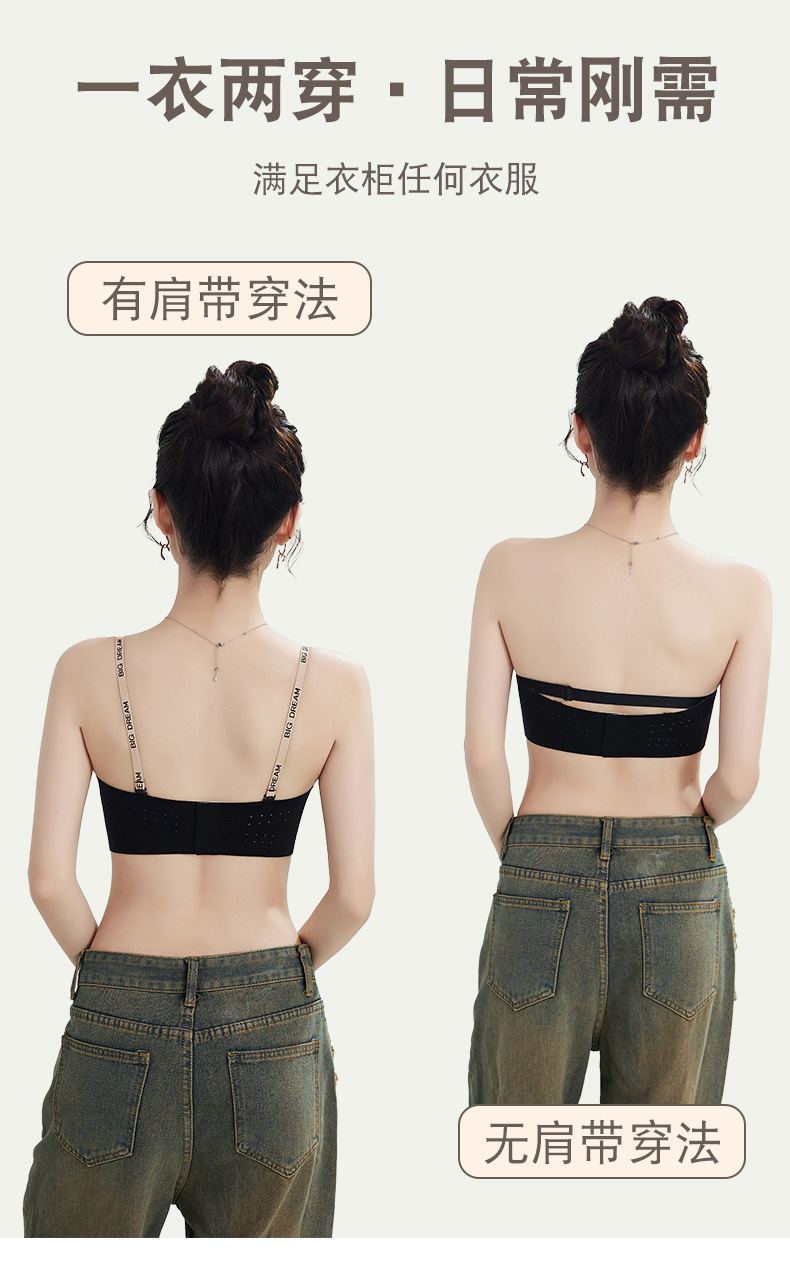 【巨舒适!多种穿法】新款字母带Bra看不见的支撑,惊不惊喜!少女显气质,美得飞起!多种穿法,百搭不腻。上托聚拢,小胸见神奇!前扣无肩带防滑抹胸内衣,让你轻松脱变~