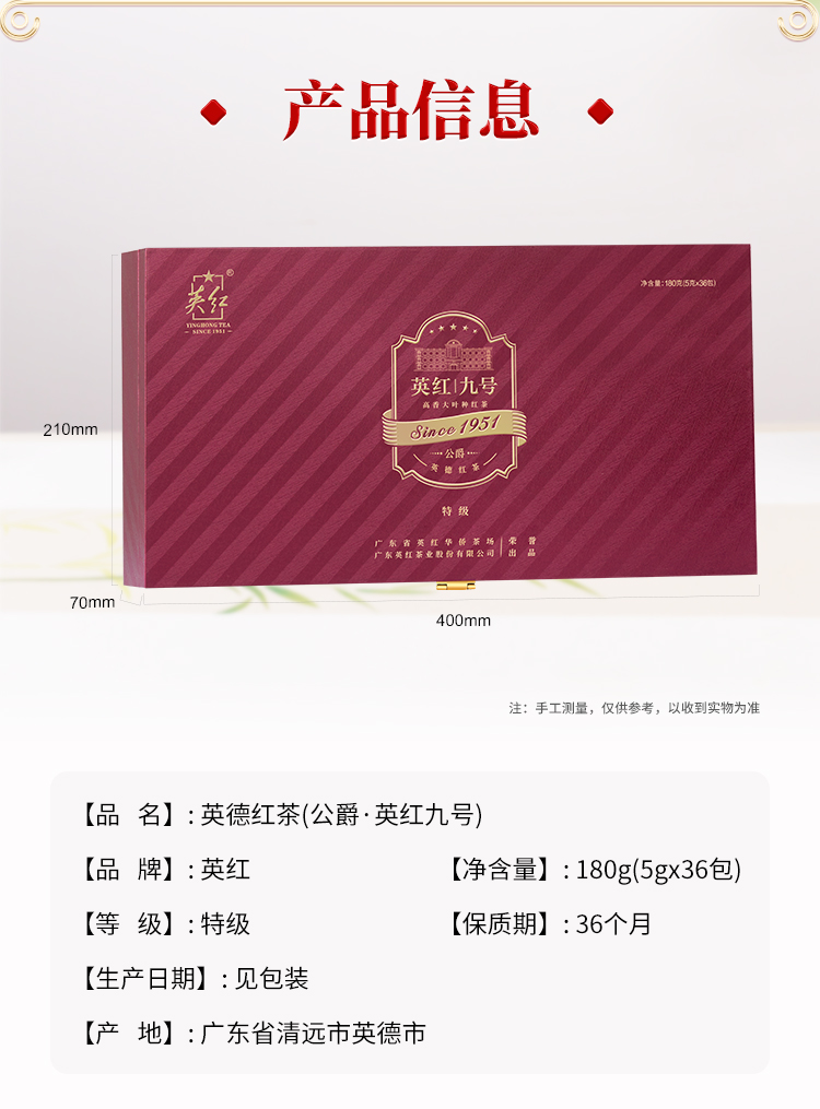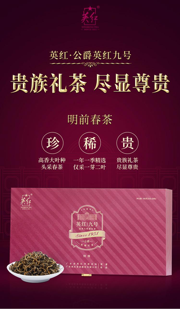 【贵族礼茶 尽显尊贵】英红牌 2023明前春茶 特级英德红茶 公爵九号 180g/盒 礼盒装(京东同款)