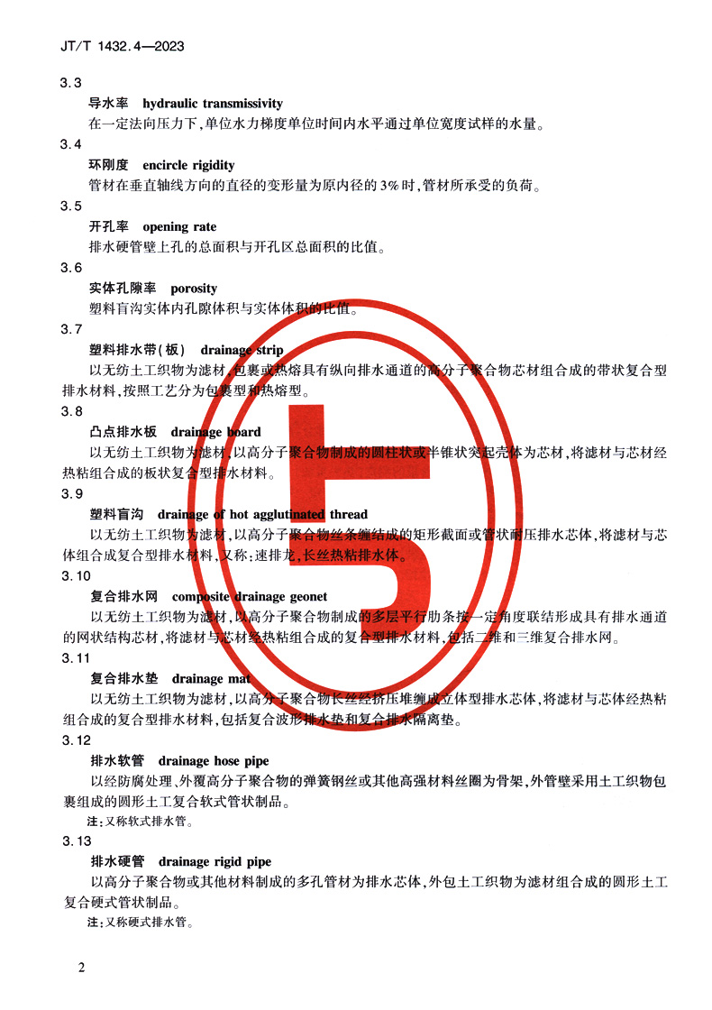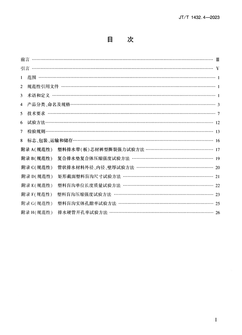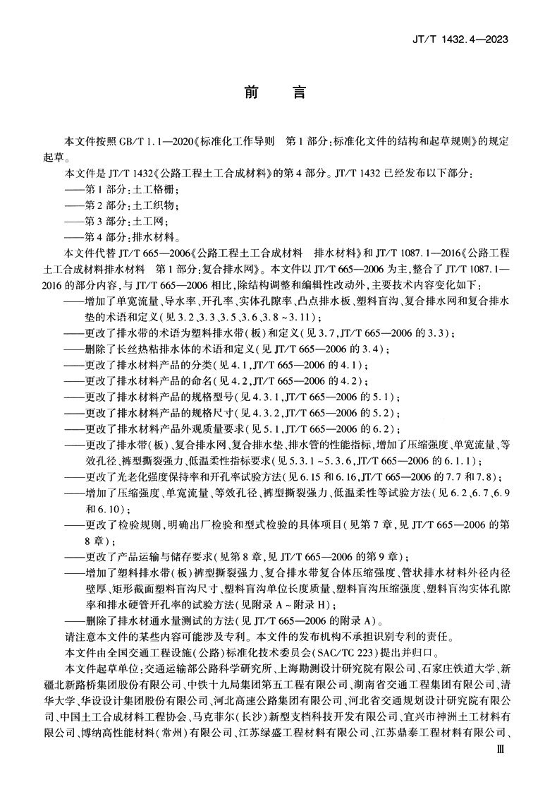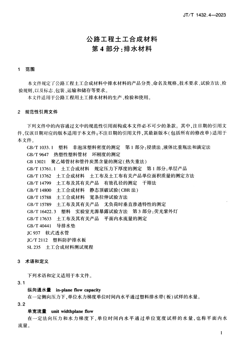 书名:公路工程土工合成材料 第4部分:排水材料(JT/T1432.4—2023)