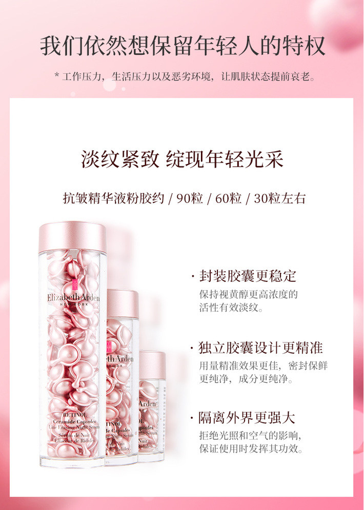 【跨境】ElizabethArden 伊丽莎白雅顿 时空焕活夜间多效胶囊精华液 粉胶 28ml60粒 42ml90粒(60粒效期26年1月 90粒效期到26年11月)