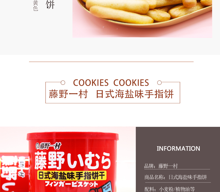 藤野一村手指饼干罐装网红日式牛奶海盐北海道日本风味儿童手指饼