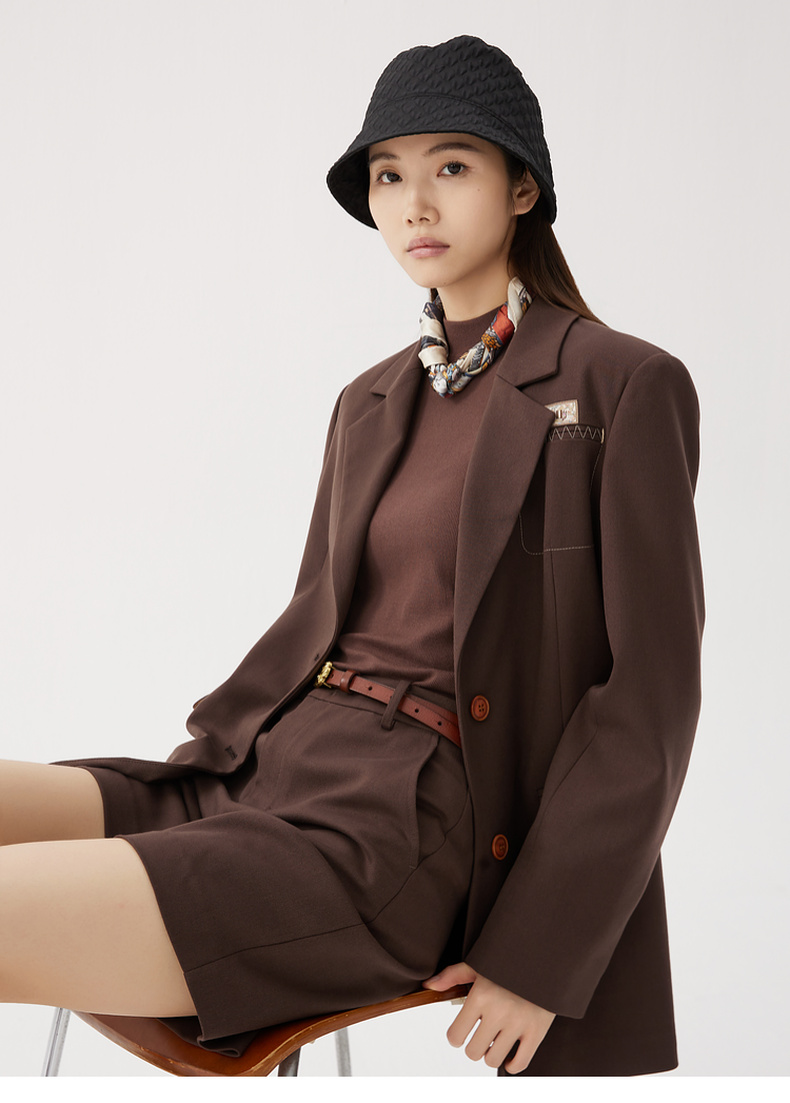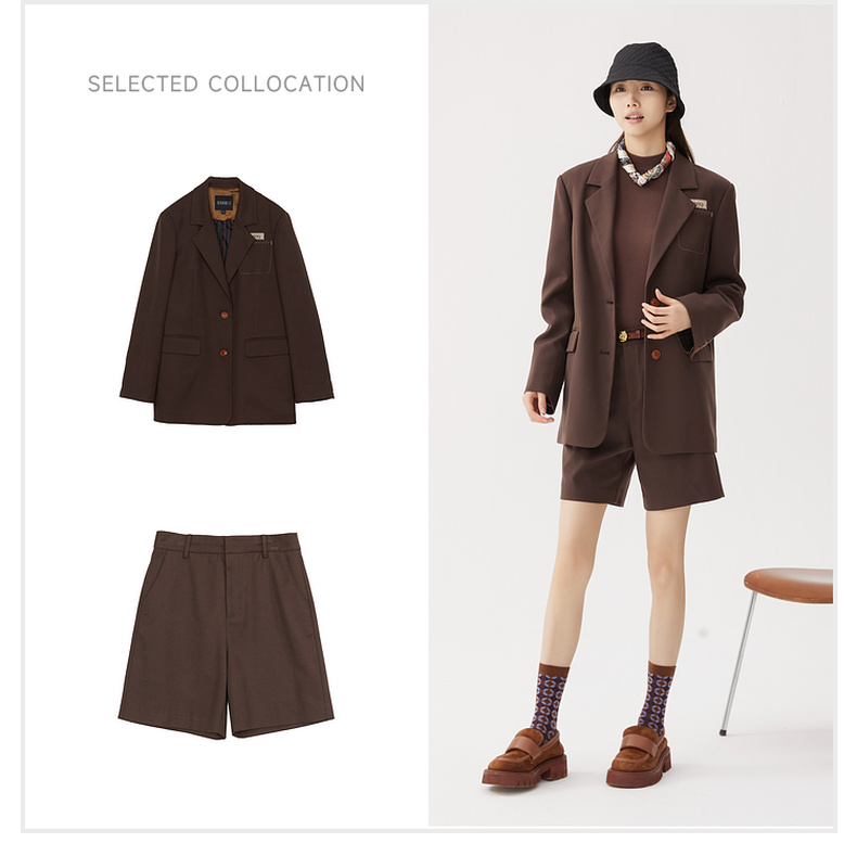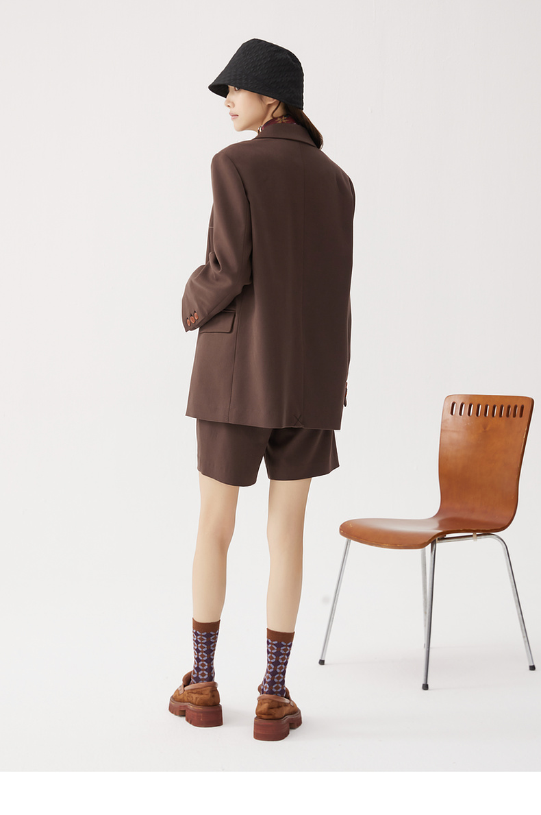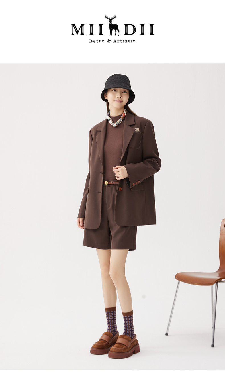 谜底宽松西装外套女2024秋季新品复古通勤风单排扣西服243GW0997