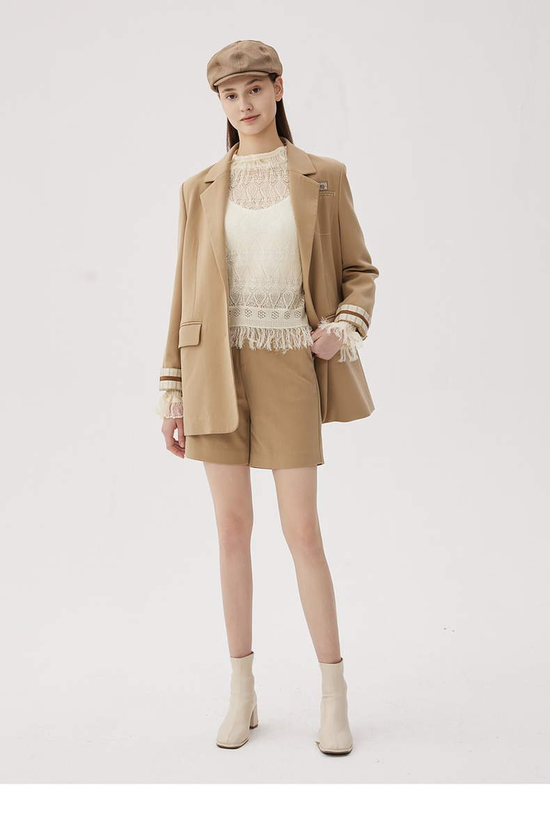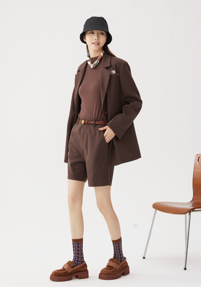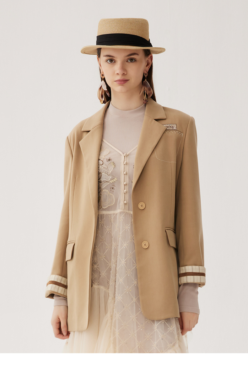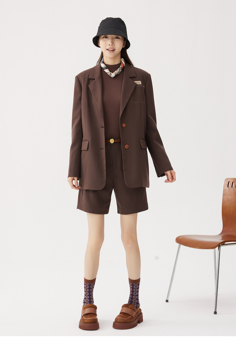 谜底宽松西装外套女2024秋季新品复古通勤风单排扣西服243GW0997