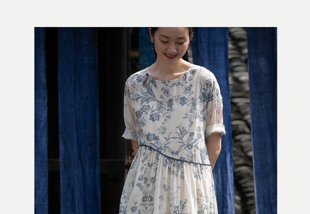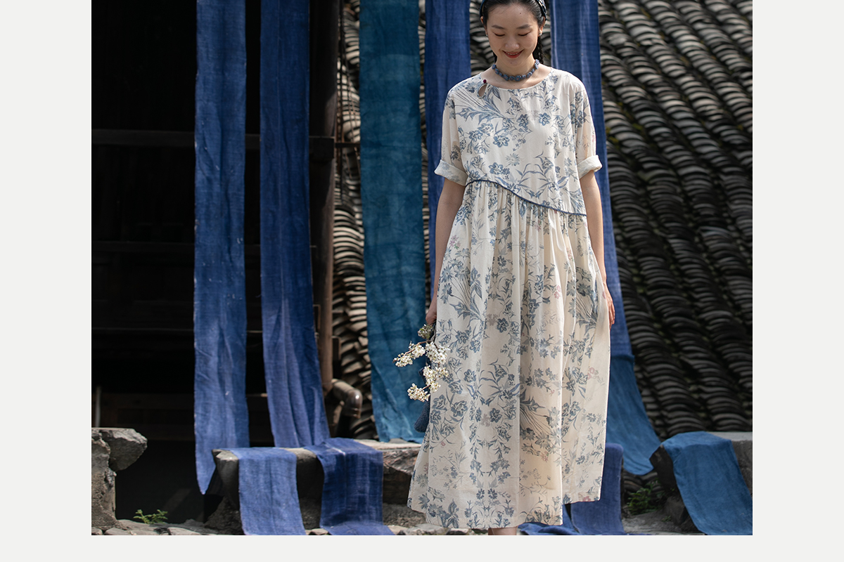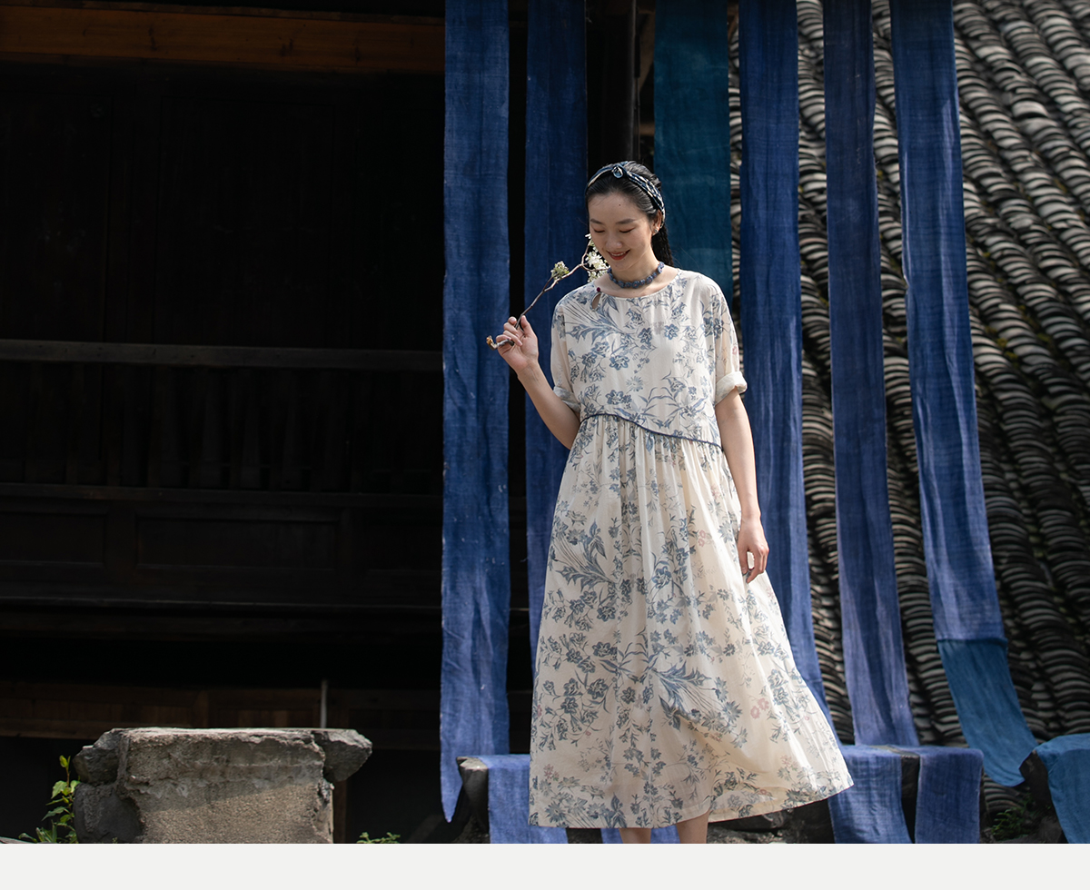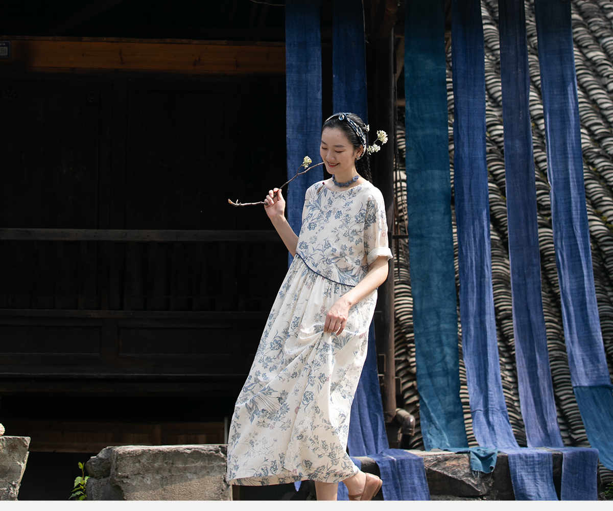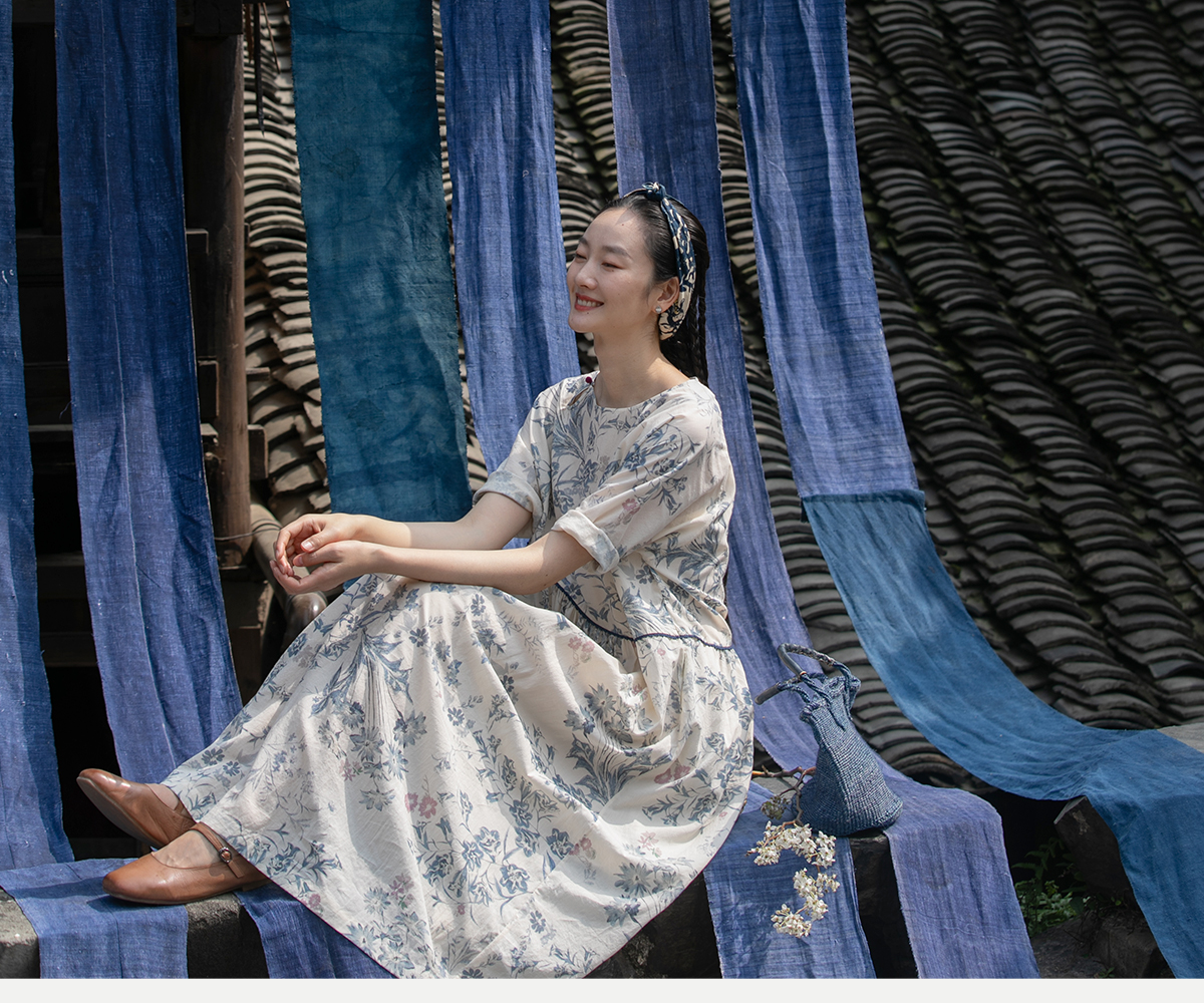 牧衣游原创 印花佰分佰新疆棉连衣裙轻薄柔软宽松文艺长裙 小桃织
