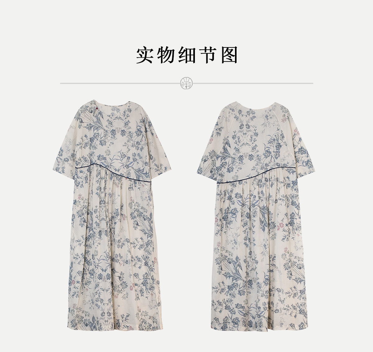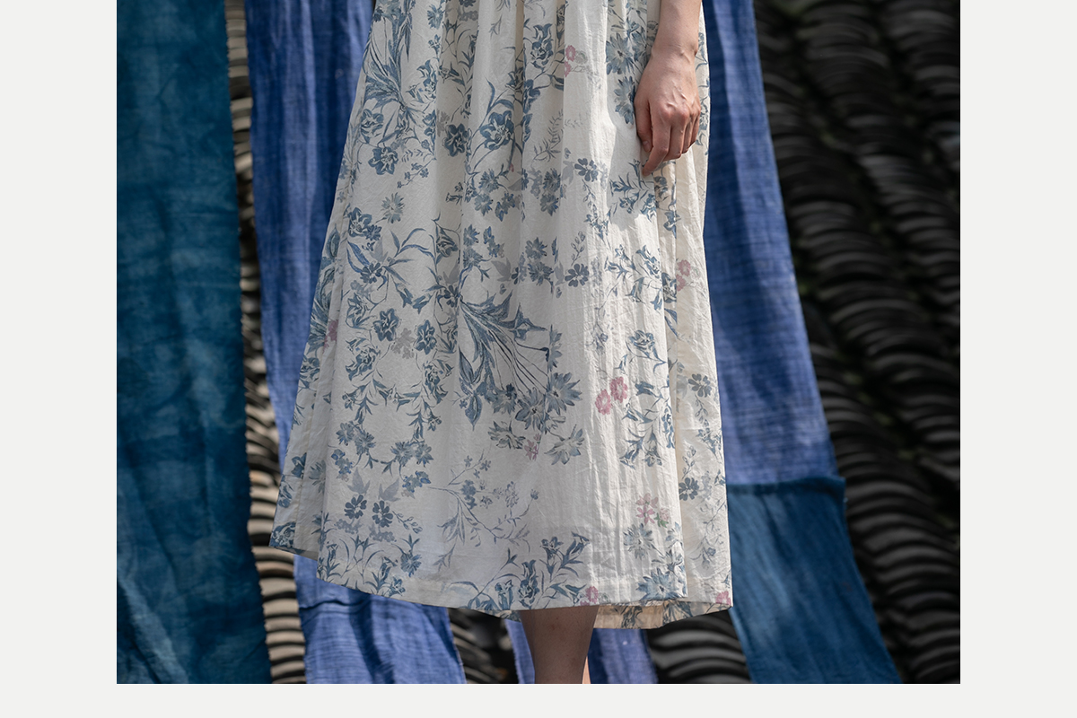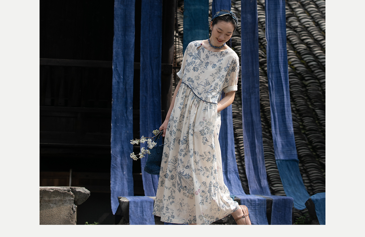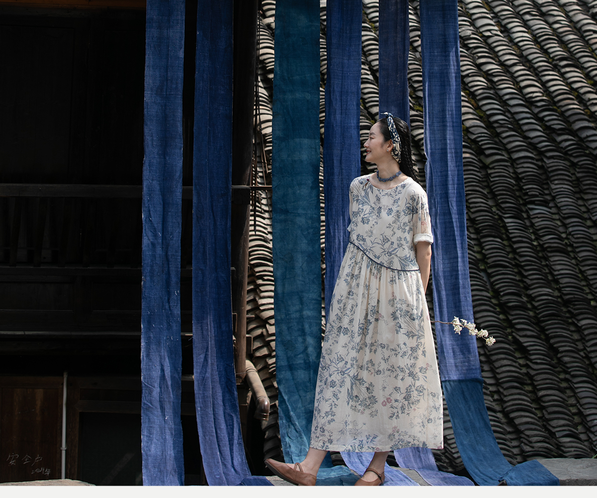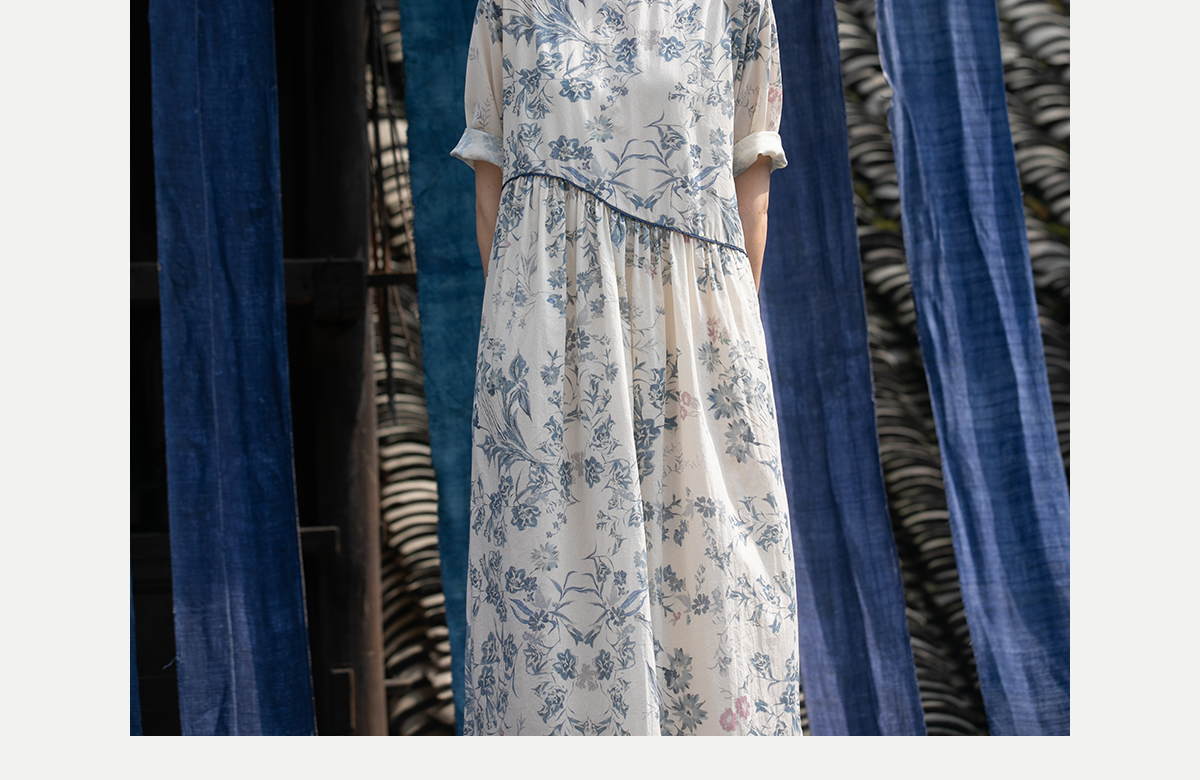 牧衣游原创 印花佰分佰新疆棉连衣裙轻薄柔软宽松文艺长裙 小桃织