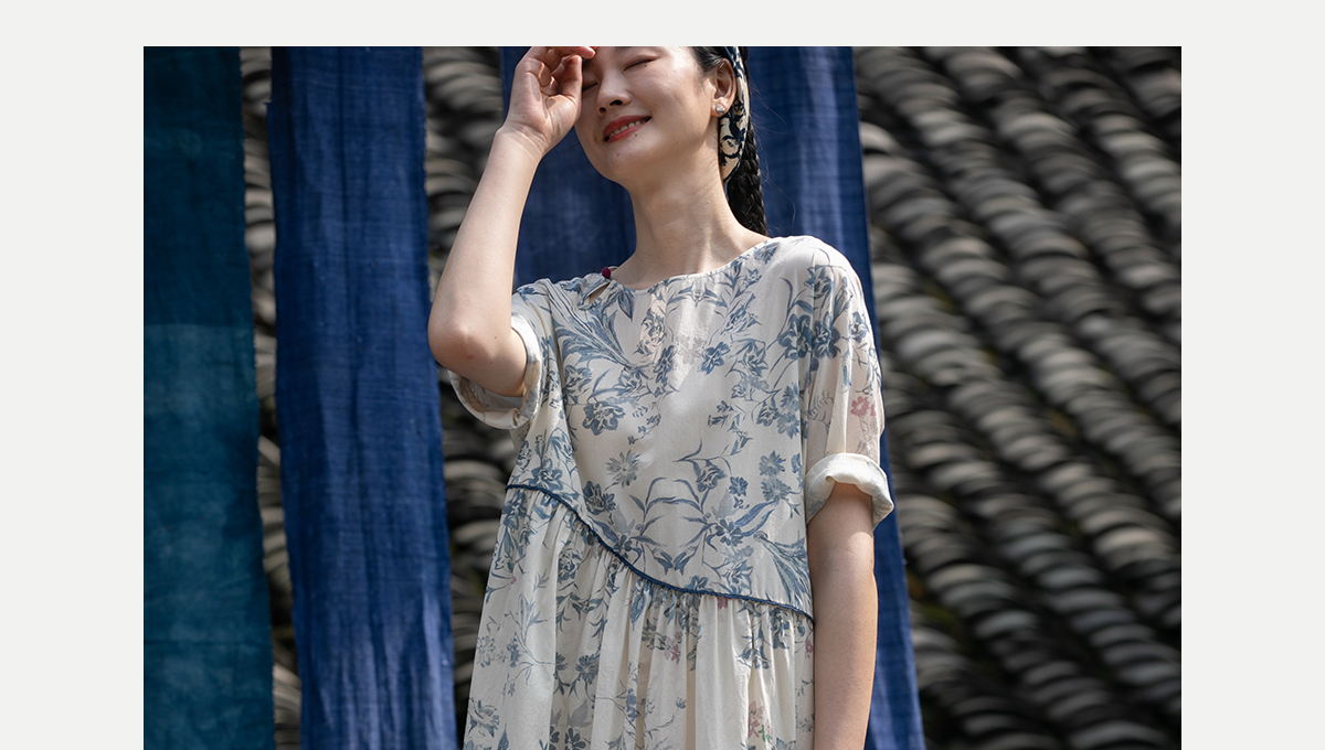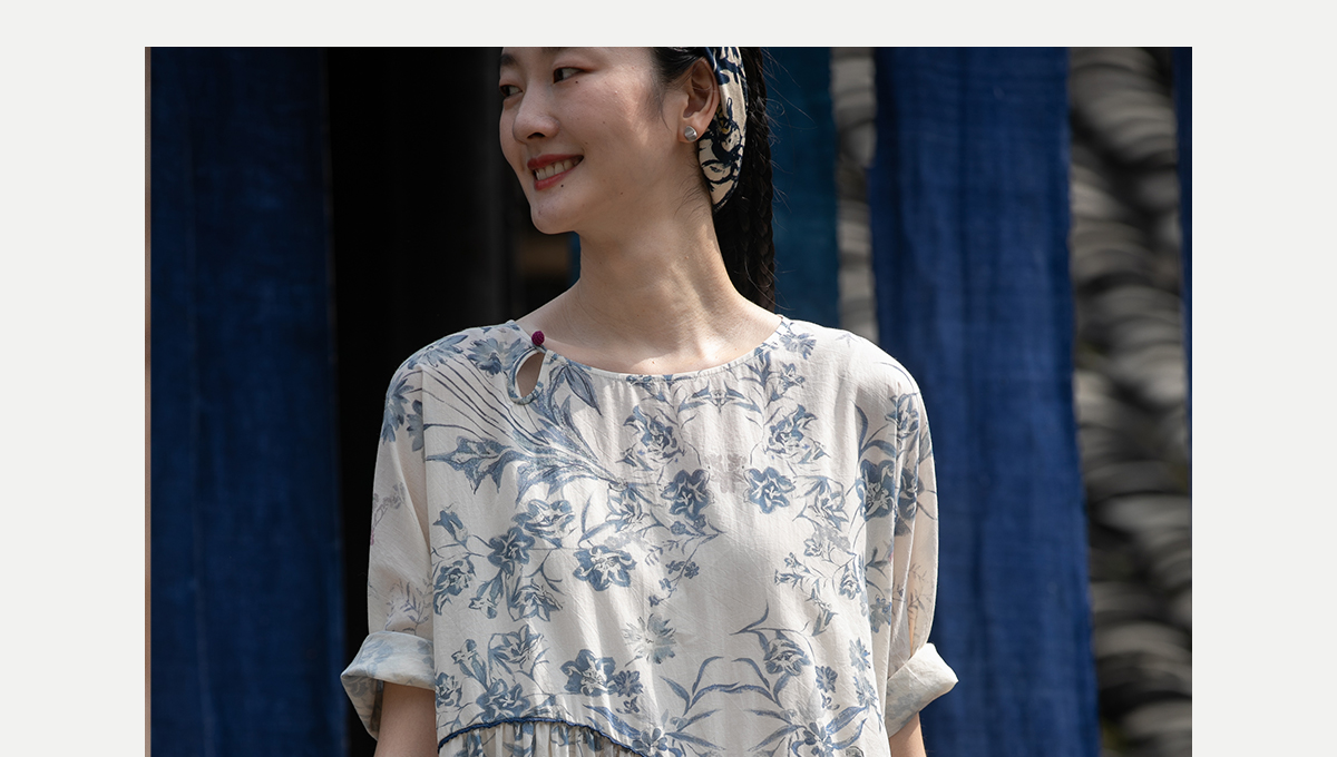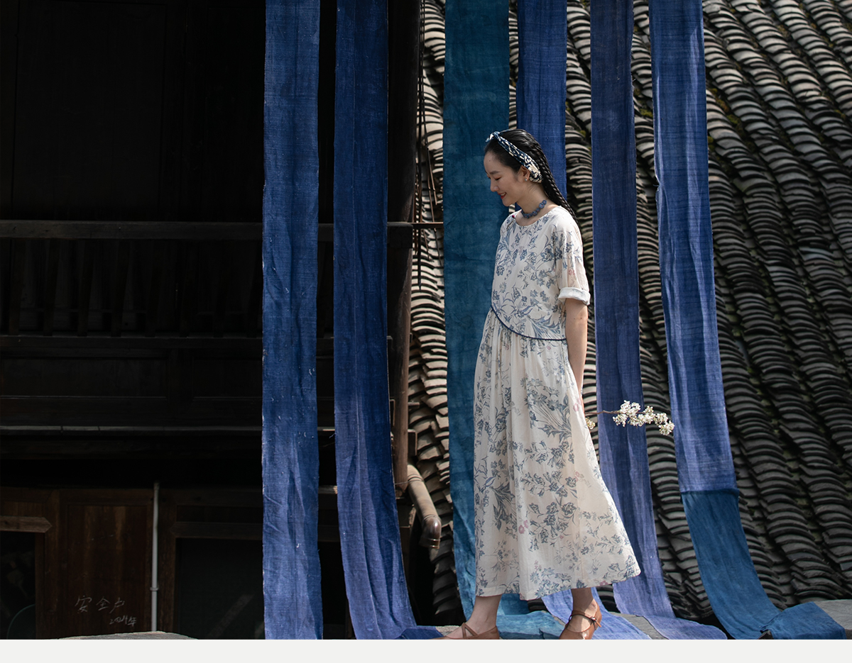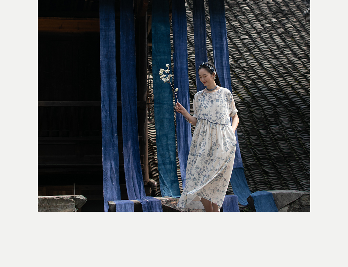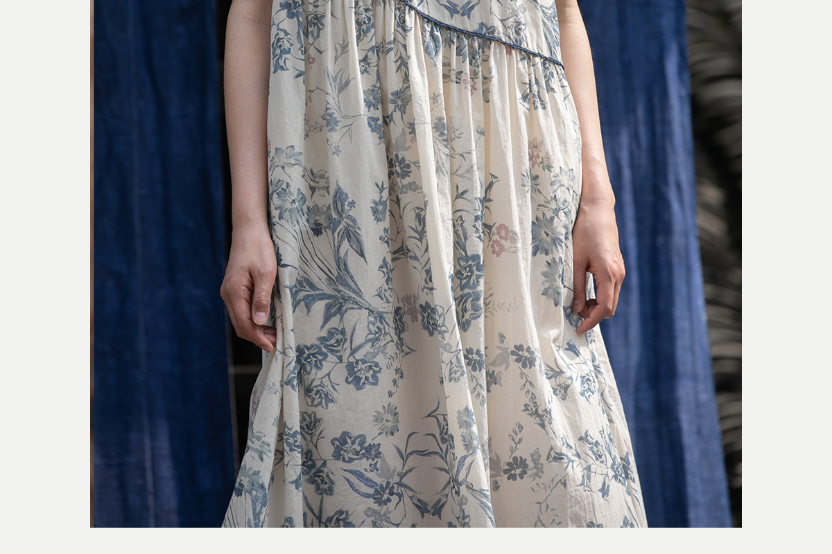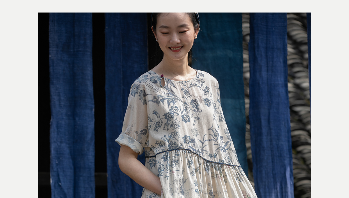 牧衣游原创 印花佰分佰新疆棉连衣裙轻薄柔软宽松文艺长裙 小桃织