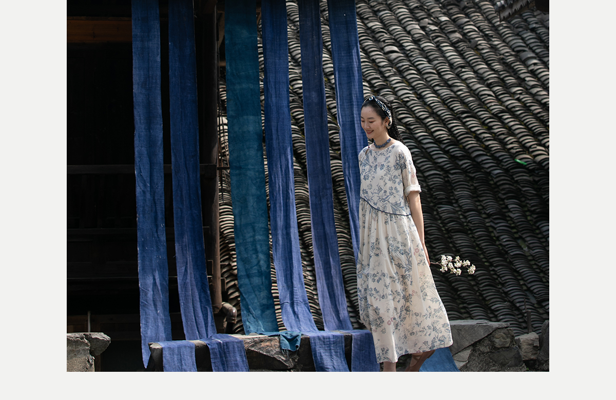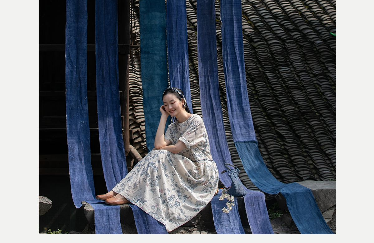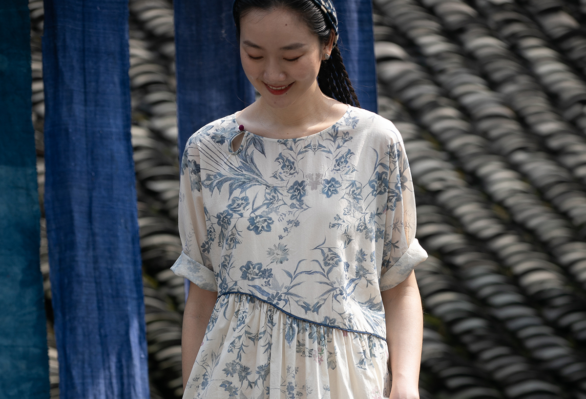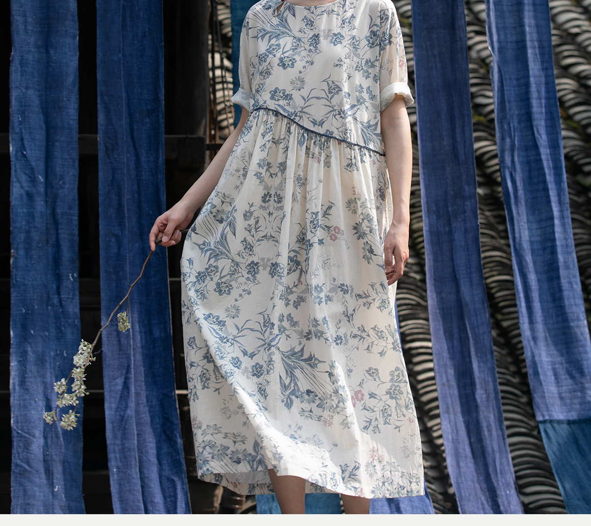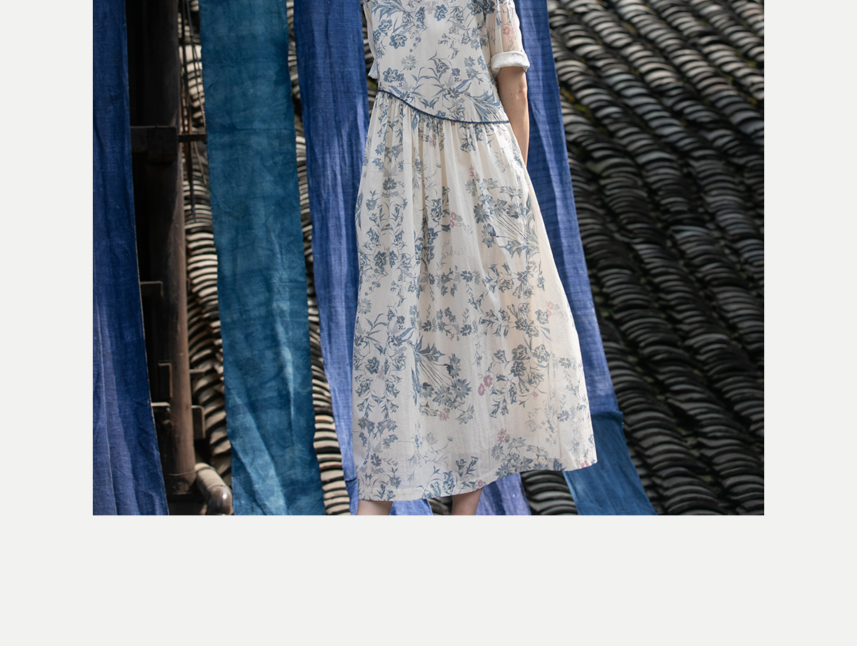 牧衣游原创 印花佰分佰新疆棉连衣裙轻薄柔软宽松文艺长裙 小桃织