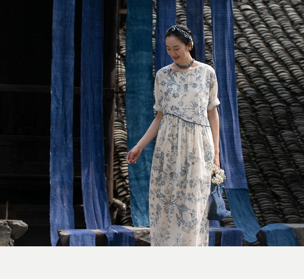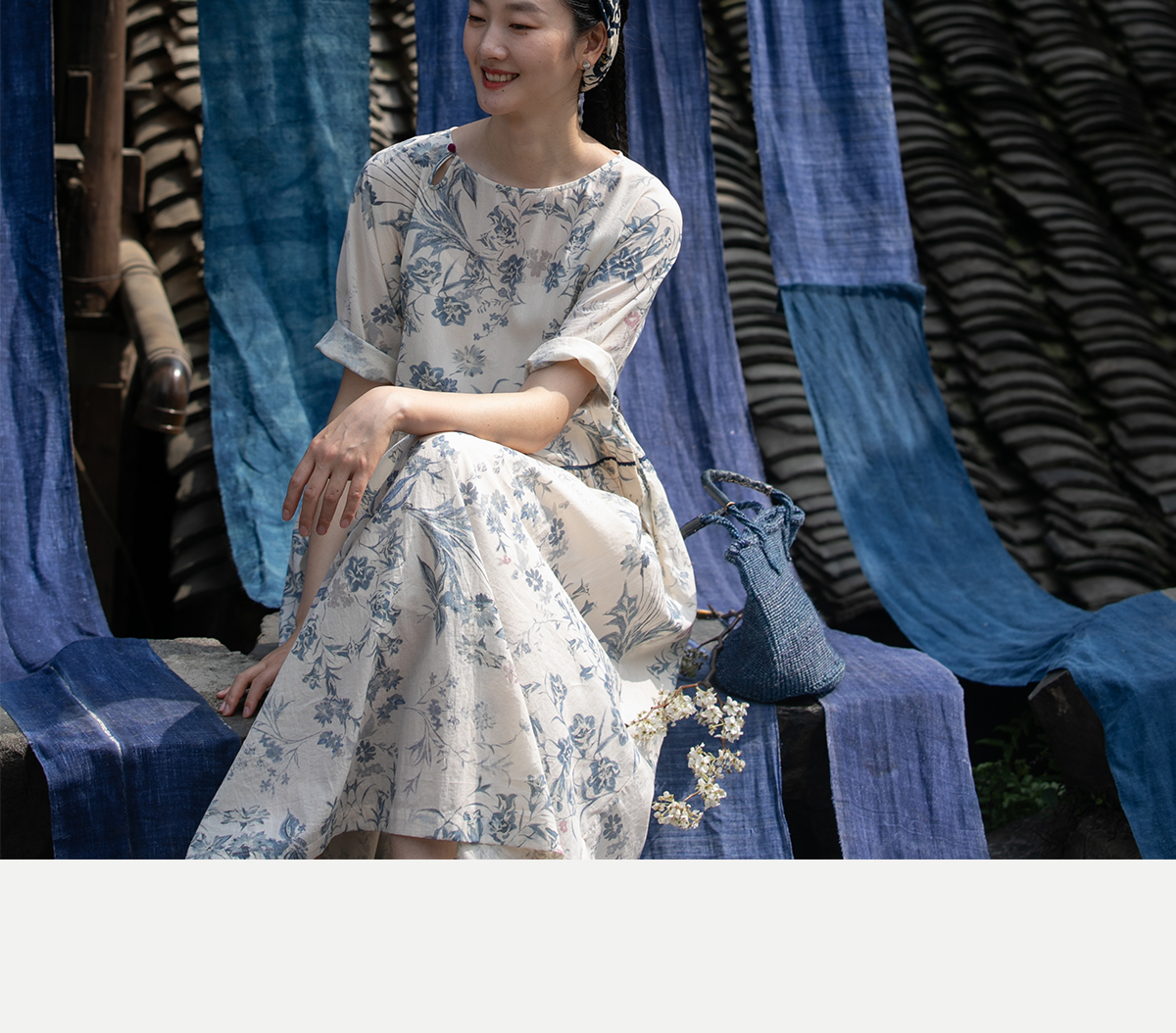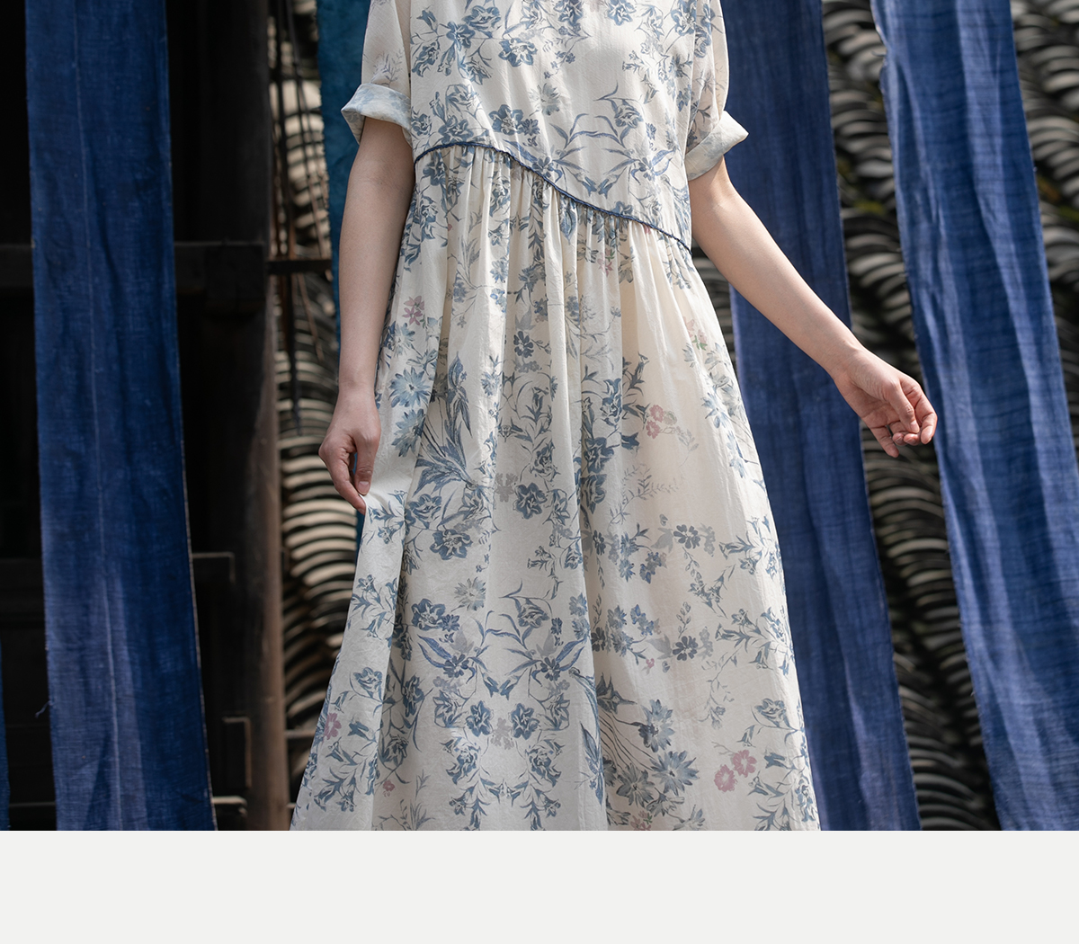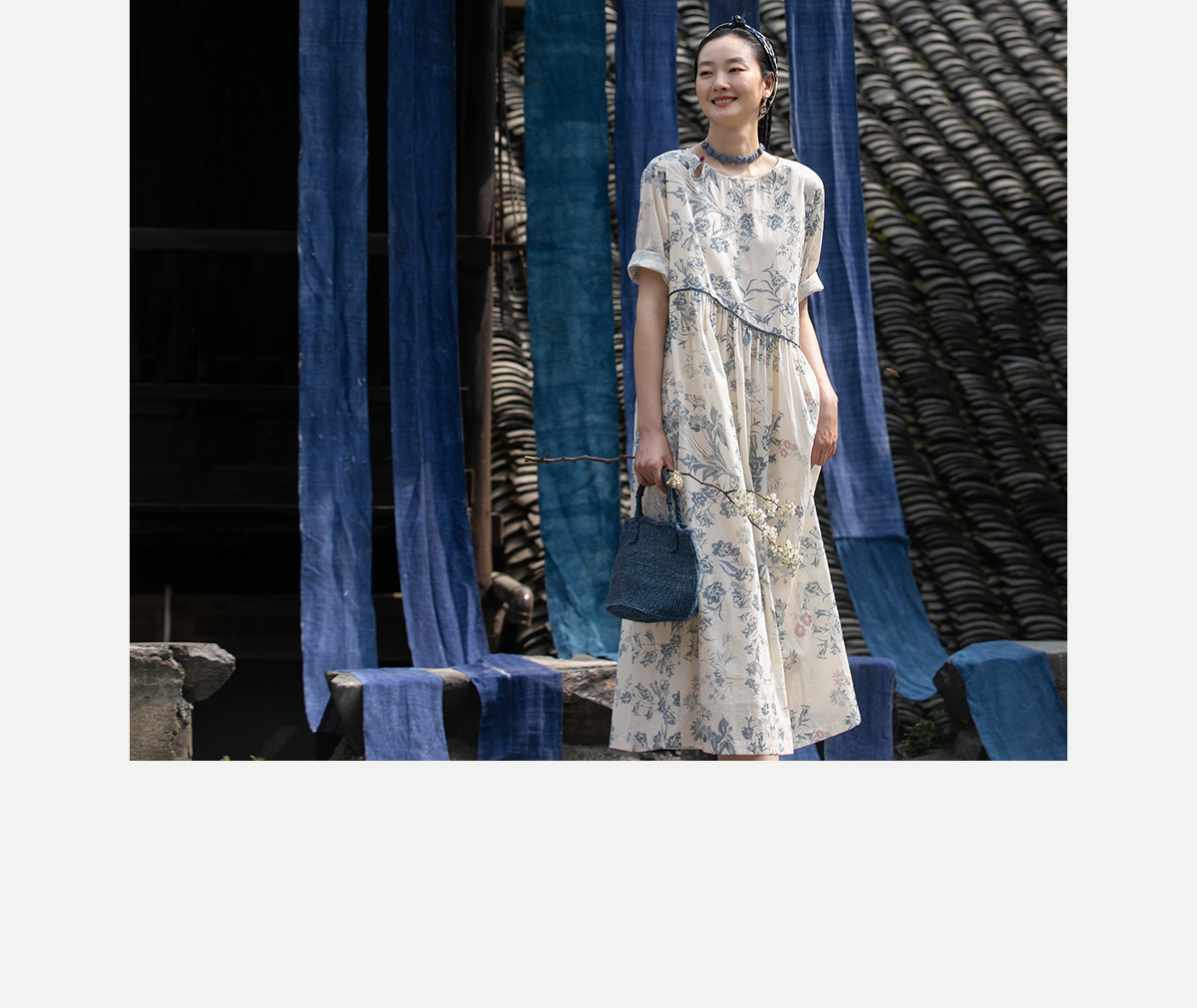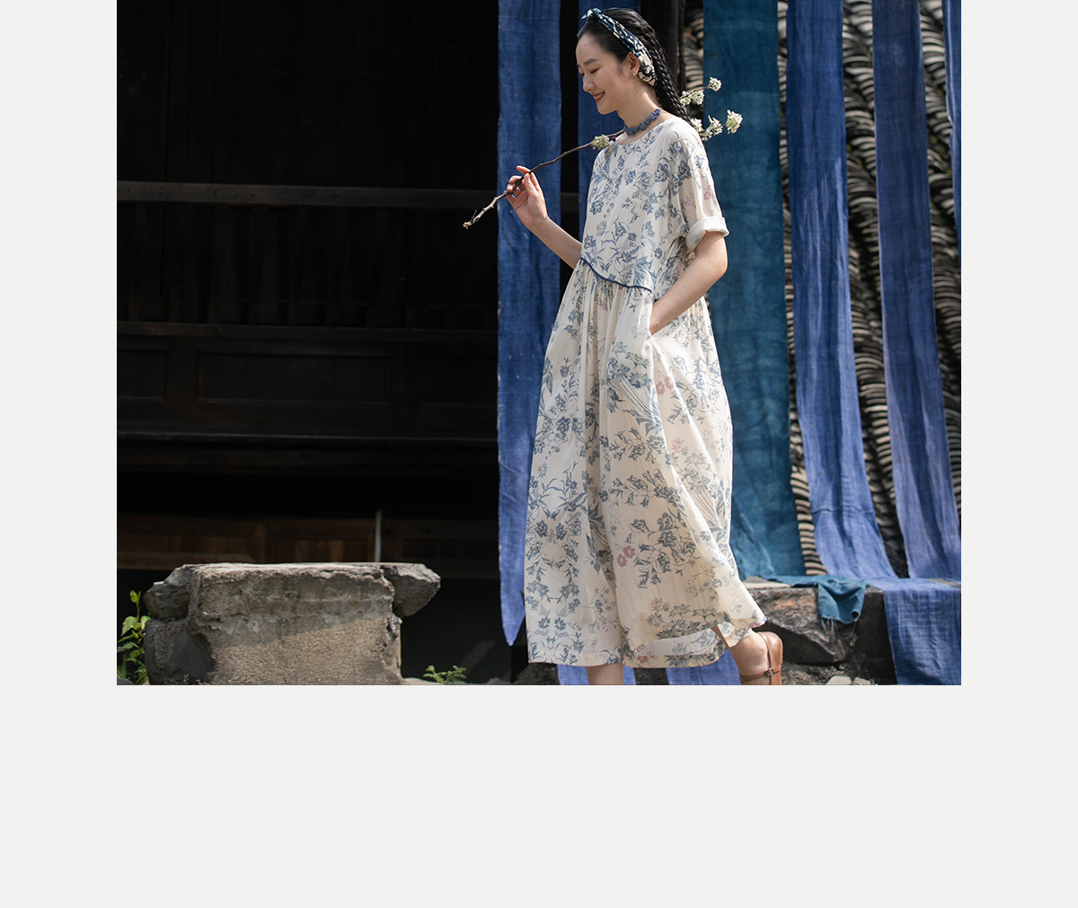 牧衣游原创 印花佰分佰新疆棉连衣裙轻薄柔软宽松文艺长裙 小桃织