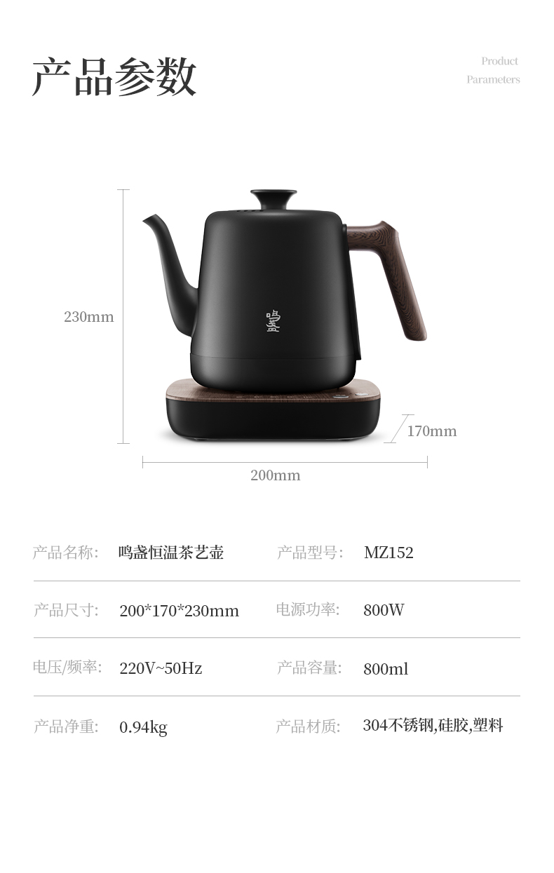 鸣盏 恒温茶艺壶煮茶壶泡茶壶MZ152[福利品]