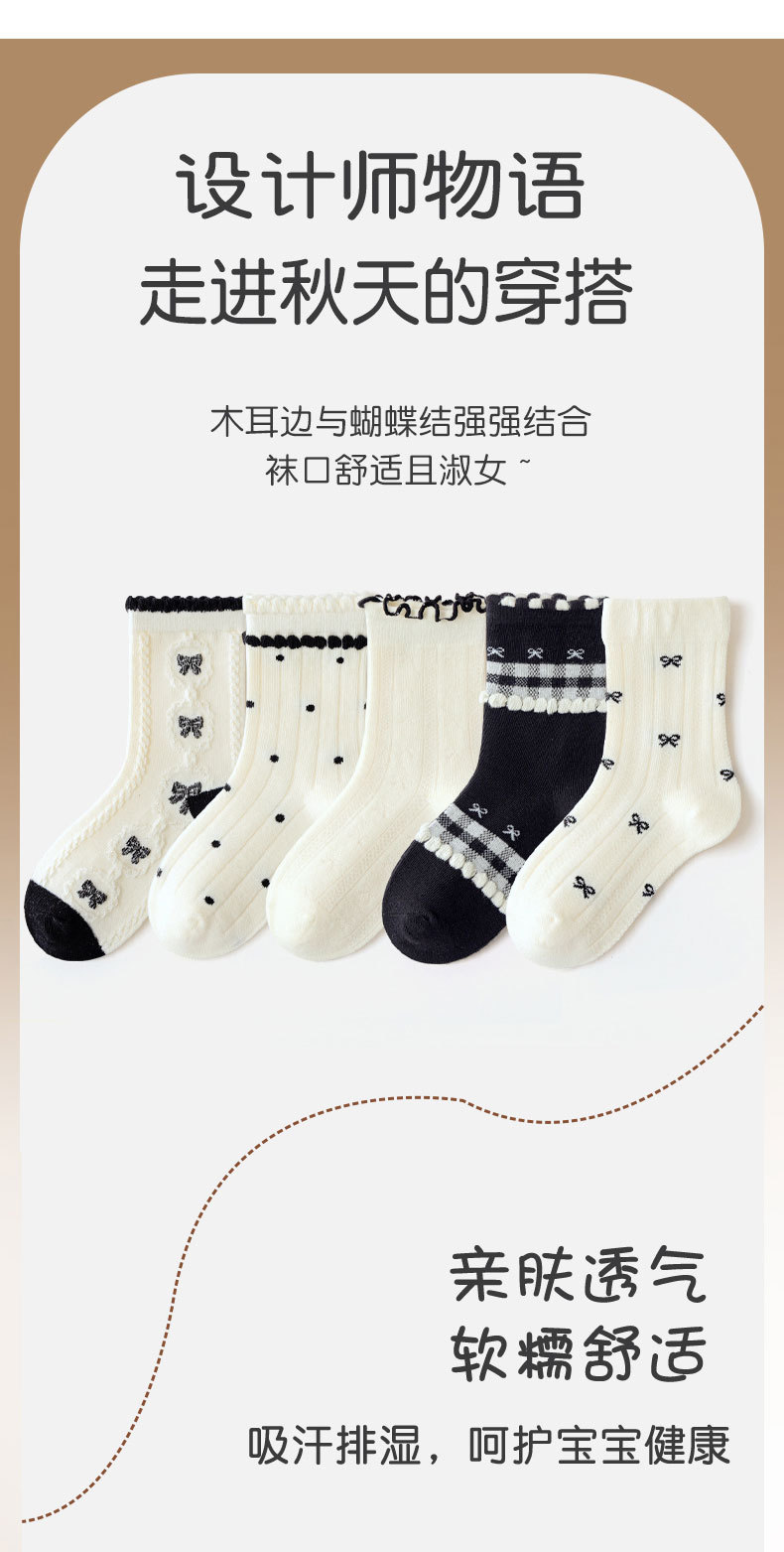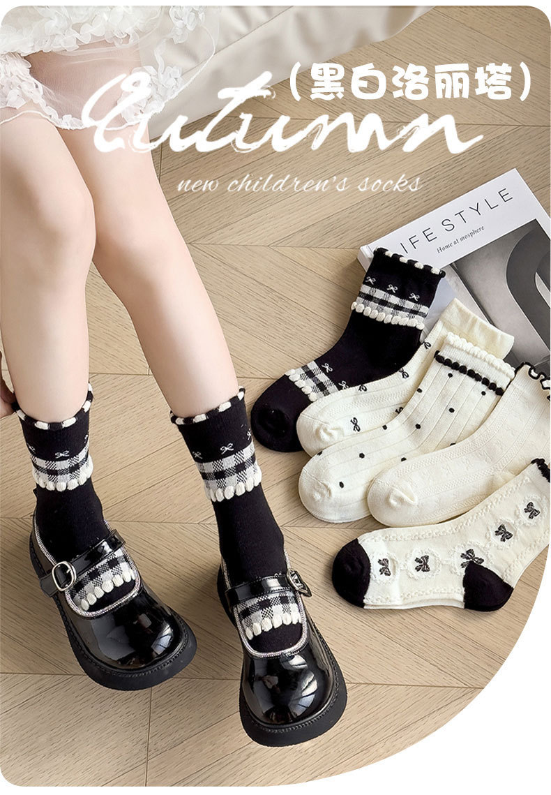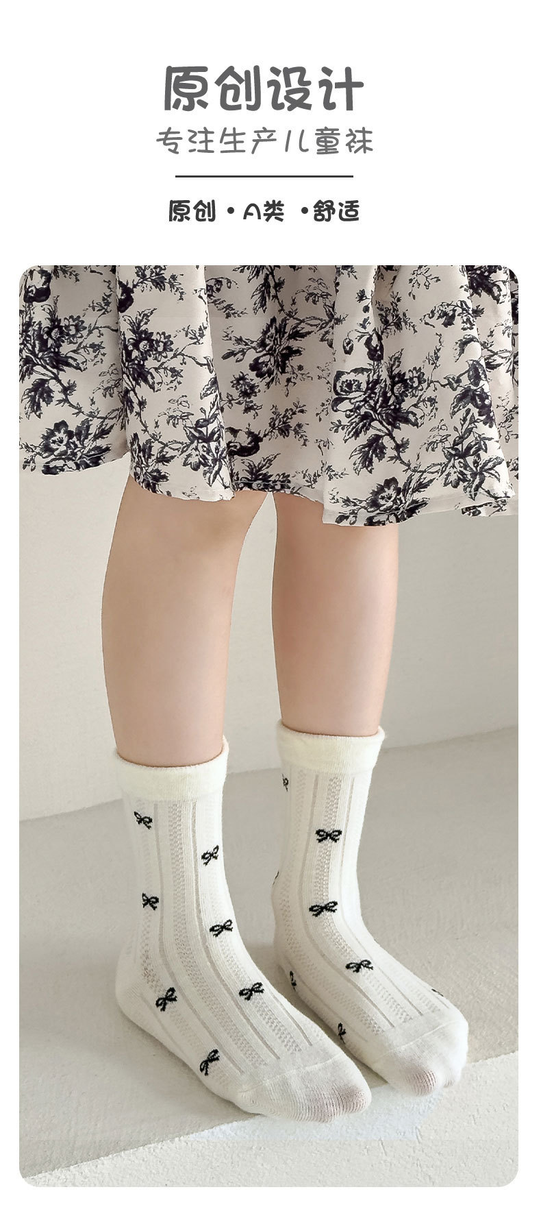 超值 10双装 秋季袜子儿童洛丽塔蝴蝶结甜美薄款中筒袜公主学生潮袜宝宝女童袜