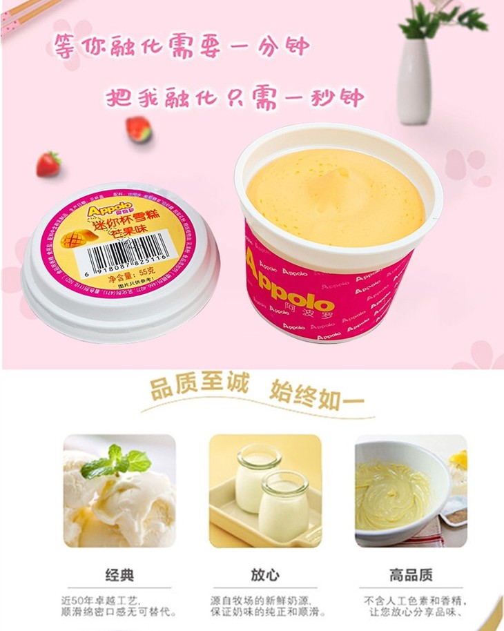 【优惠特价20元/10杯】阿波罗迷你杯雪糕(芒果味|香草味|香芋味 | 陈皮话梅味)