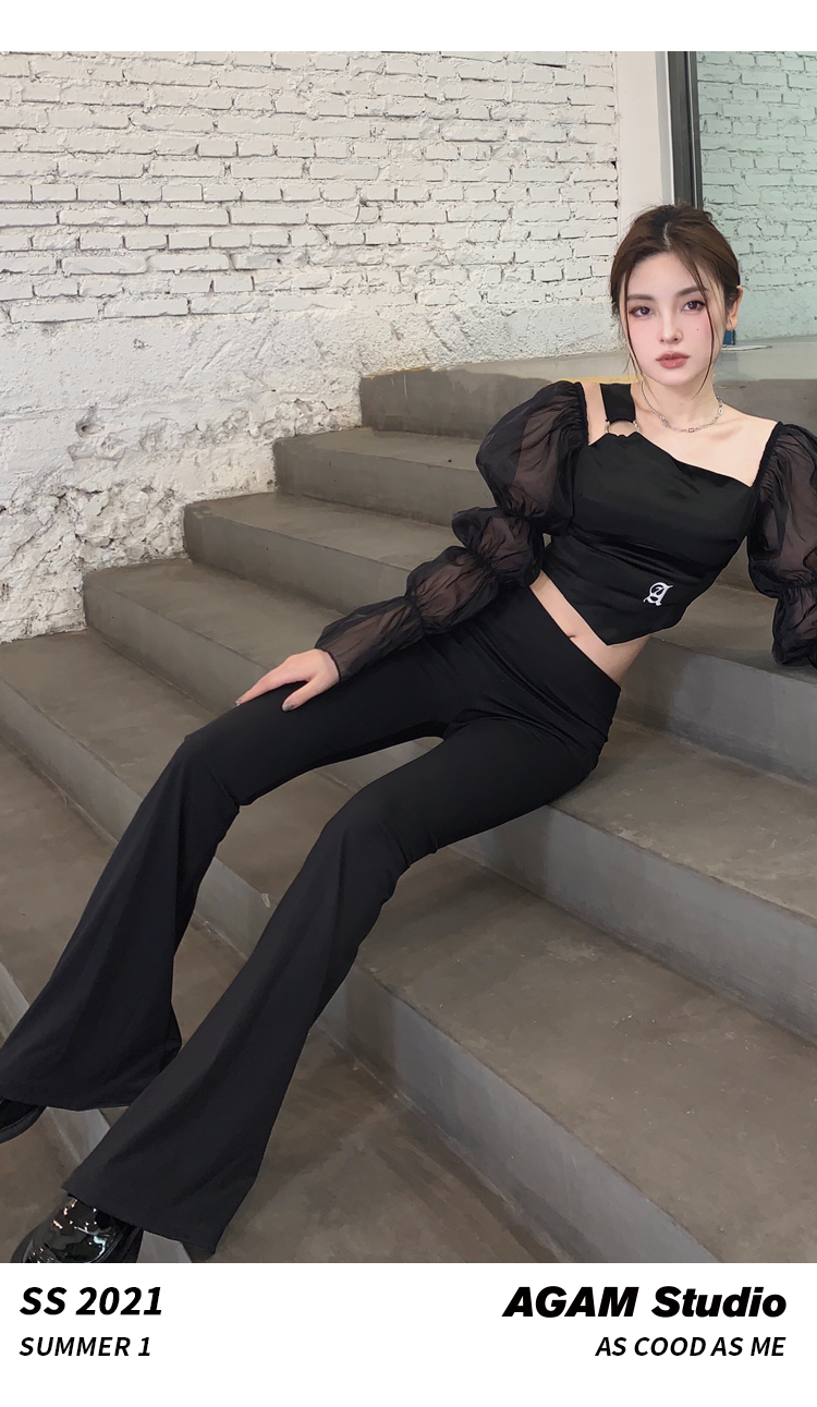 AGAM STUDIO 自带长腿特效 经典百搭高腰显瘦弹力喇叭长裤休闲裤