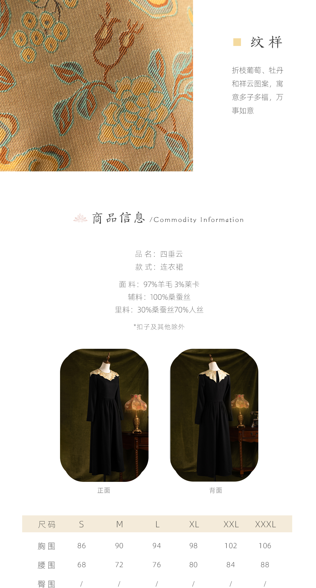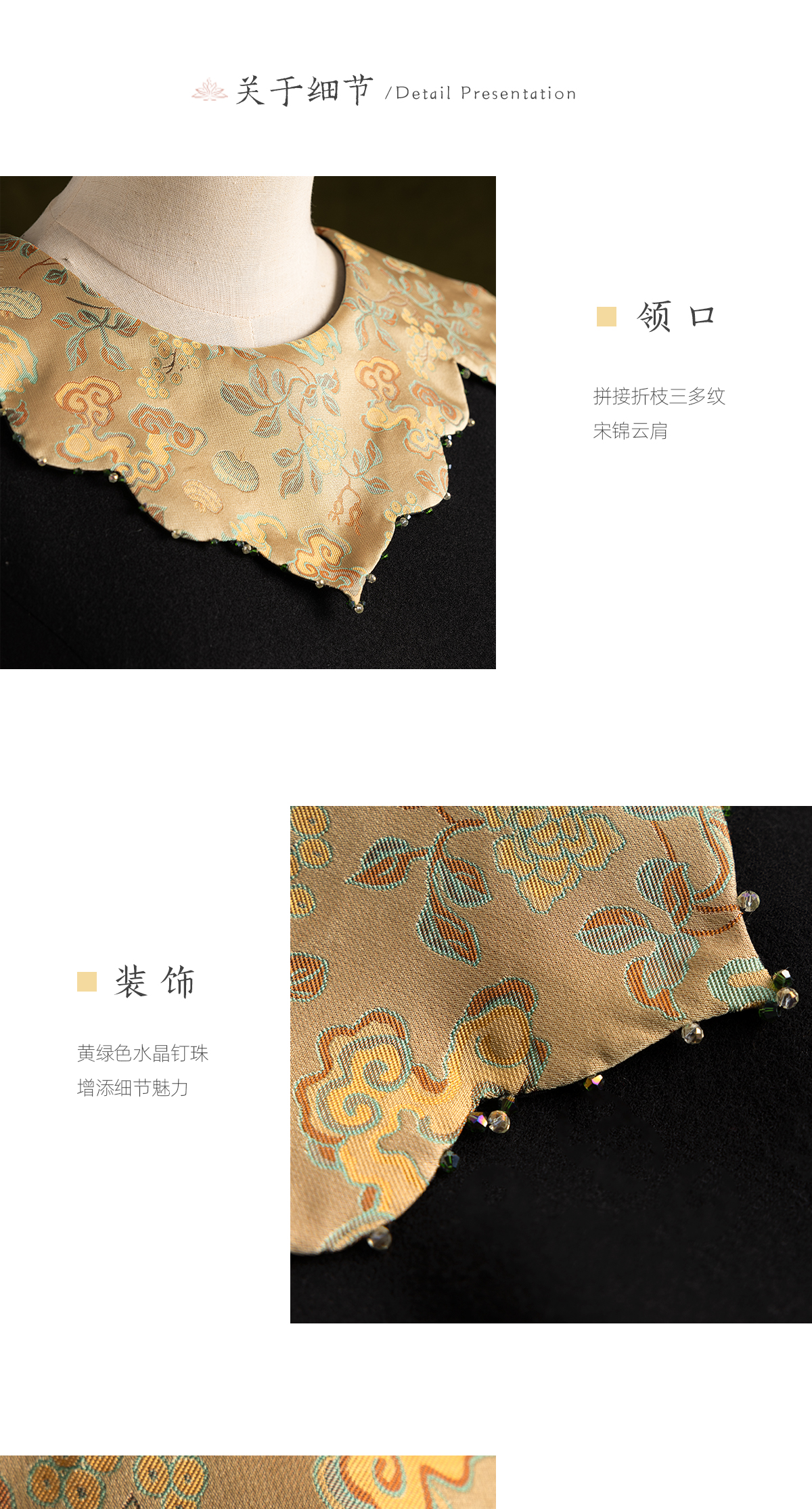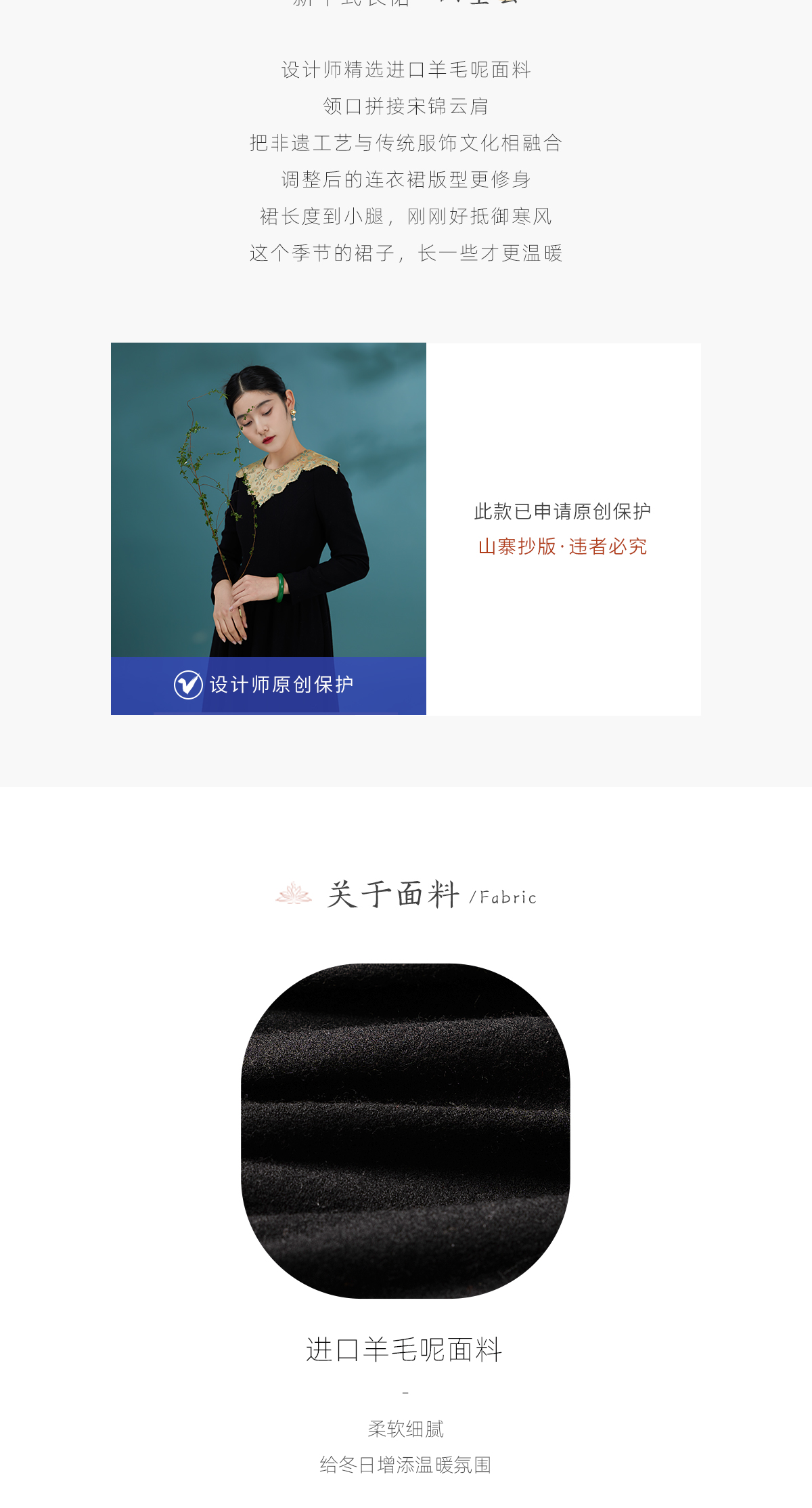 荷言GL 四垂云 非遗宋锦云肩假两件黑色羊毛连衣裙秋冬保暖