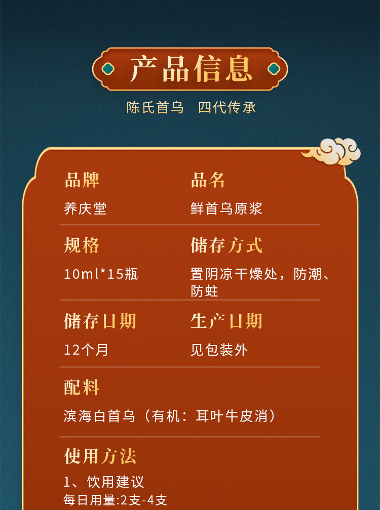 养庆堂 鲜首乌原浆天然萃取无添加15支*10ML