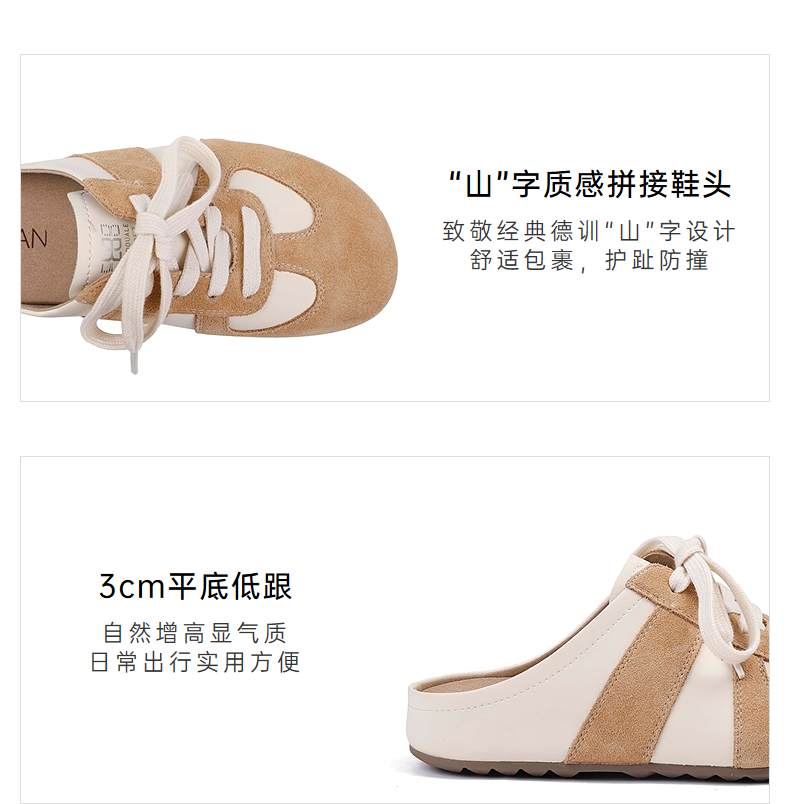 千百度双C拥抱粗跟浅口单鞋女秋季拼接真皮小香风晚晚鞋A24462628