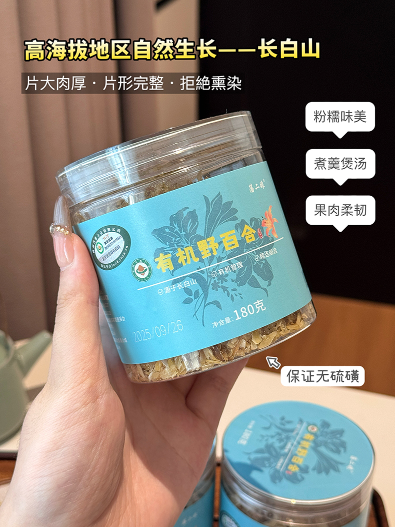 这款有机野百合干来自高海拔地区自然生长,片大肉厚、片形完整,拒绝任何人工熏染。