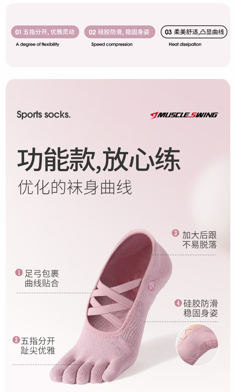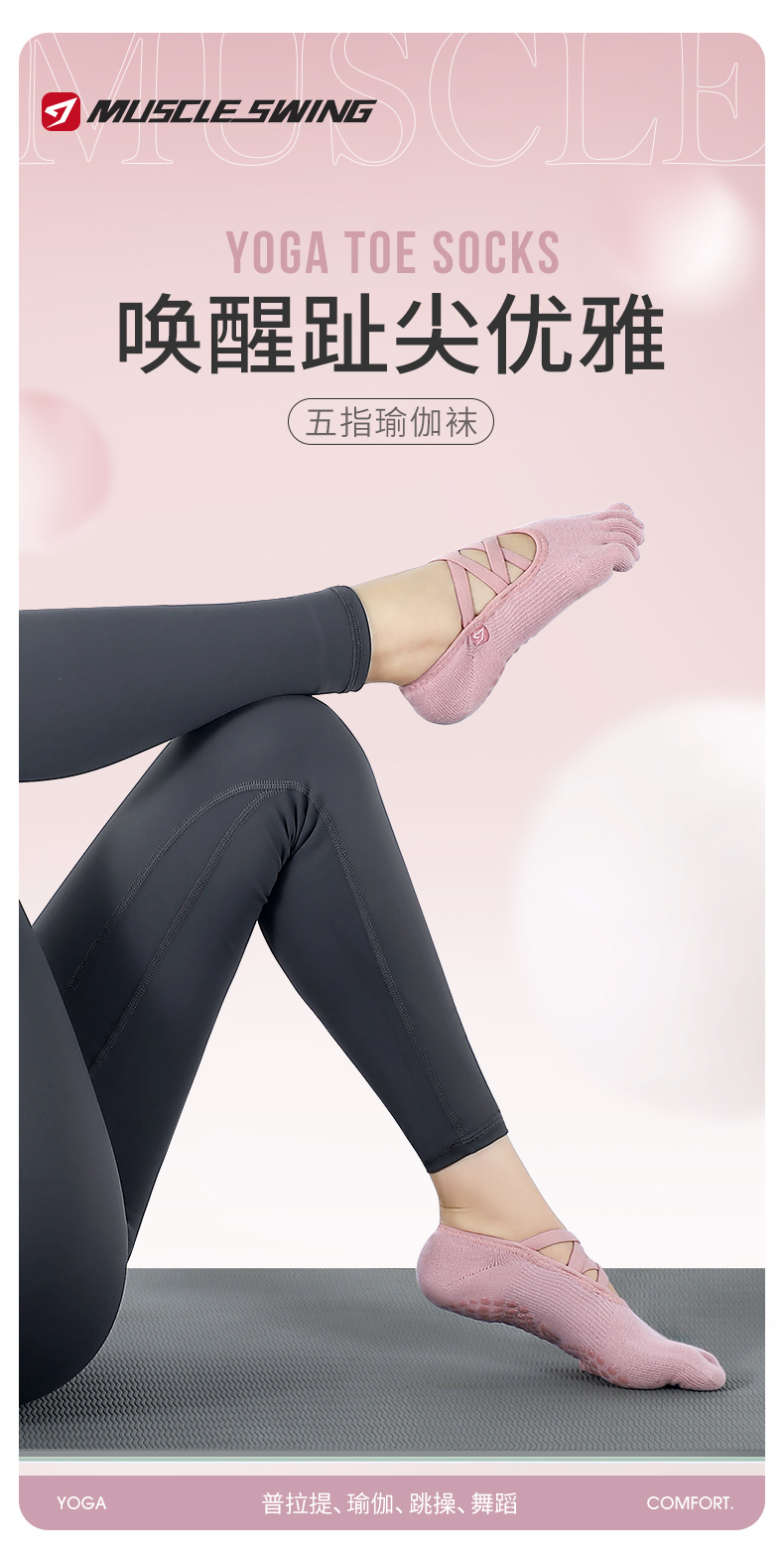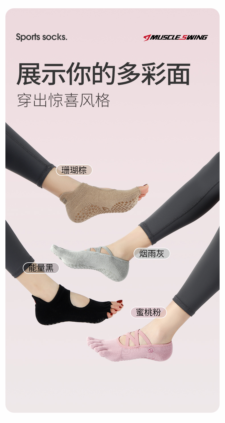 612&613肌动专业瑜伽袜子女夏运动棉袜健身舞蹈普拉提地板硅胶防滑五指袜