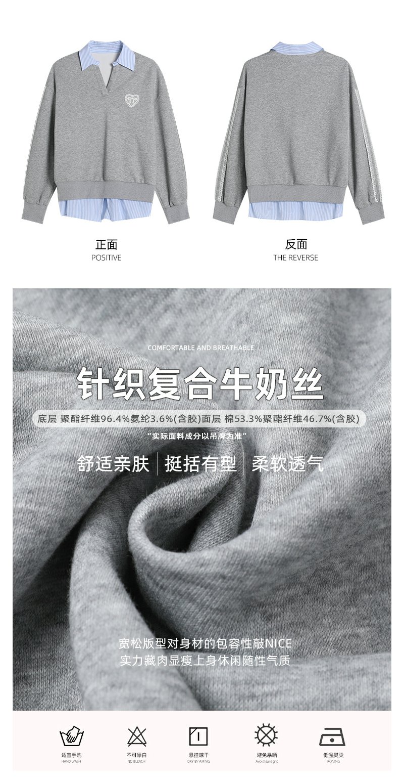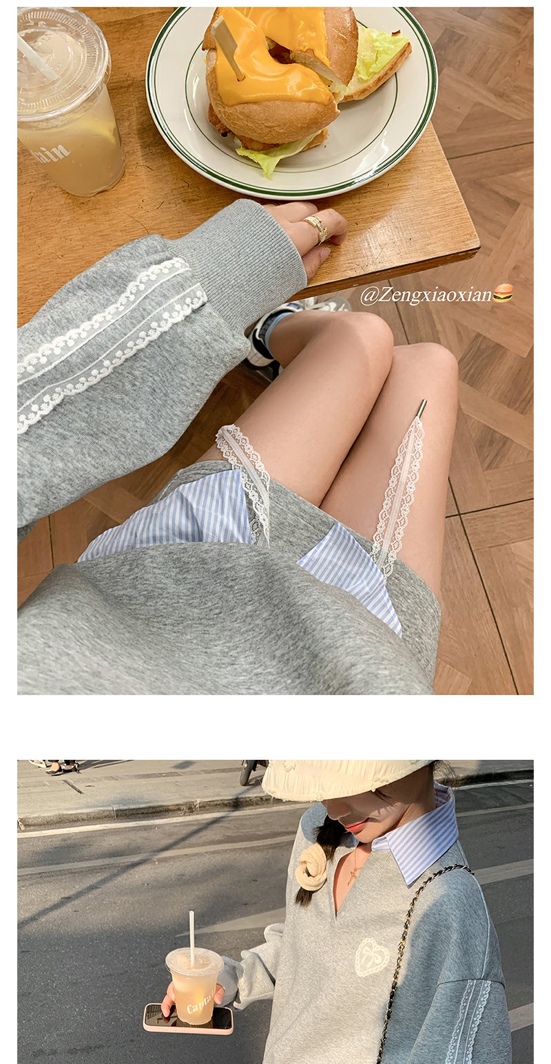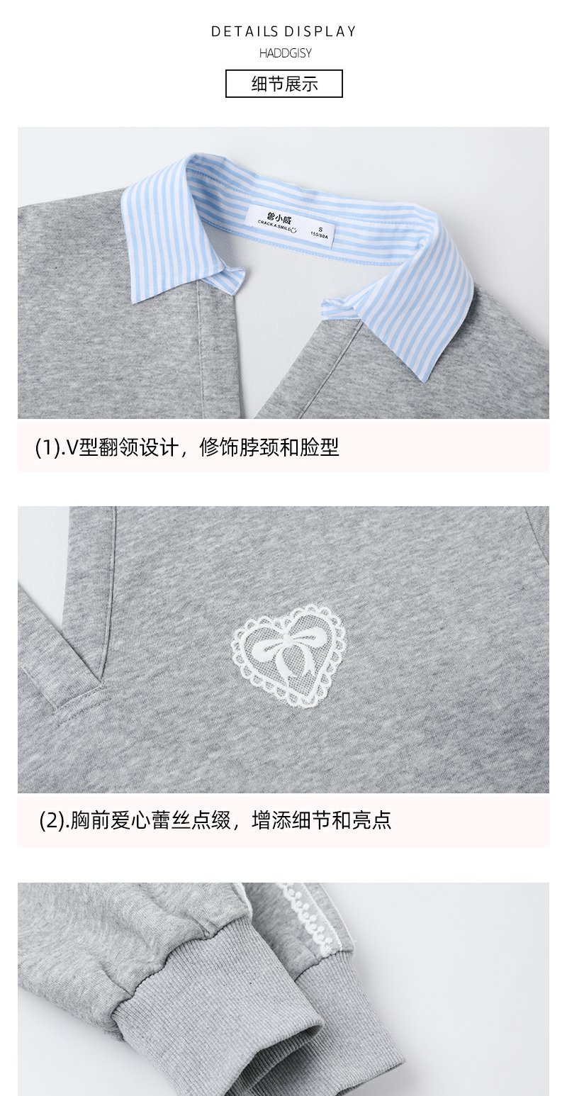 <曾小咸推荐>学院风韩系花灰色假两件卫衣