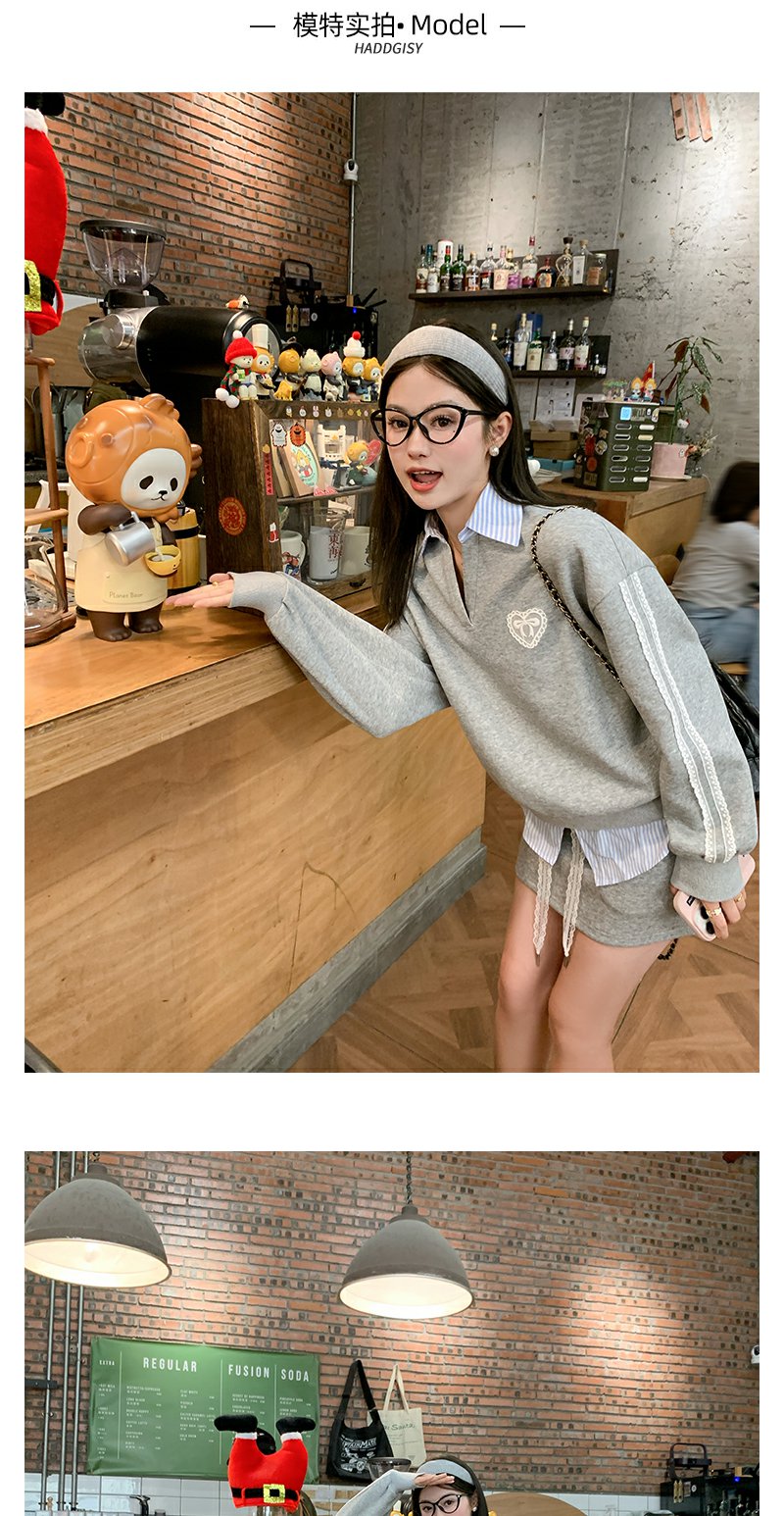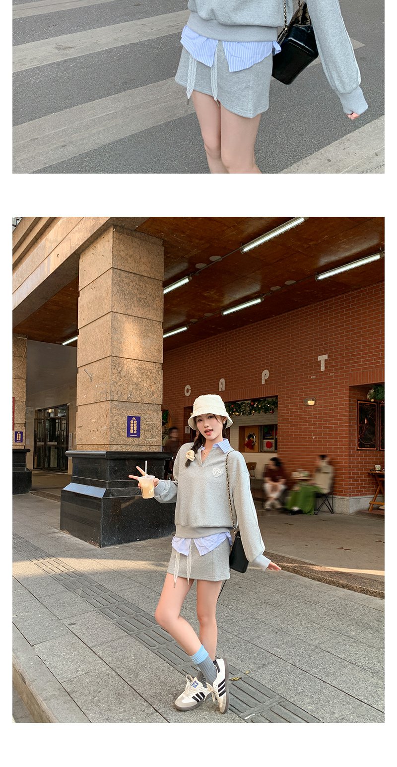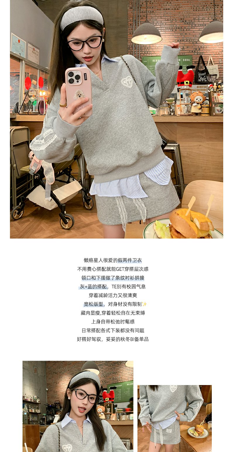 <曾小咸推荐>学院风韩系花灰色假两件卫衣