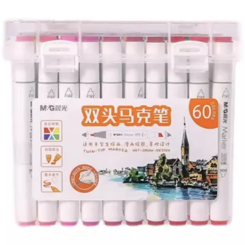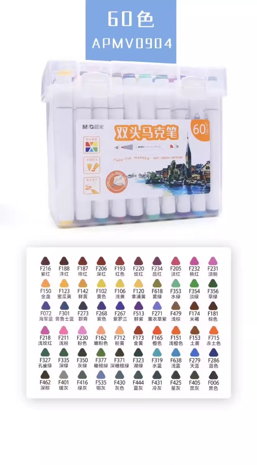 晨光马克笔APMV0904双头三角杆60色(酒清)