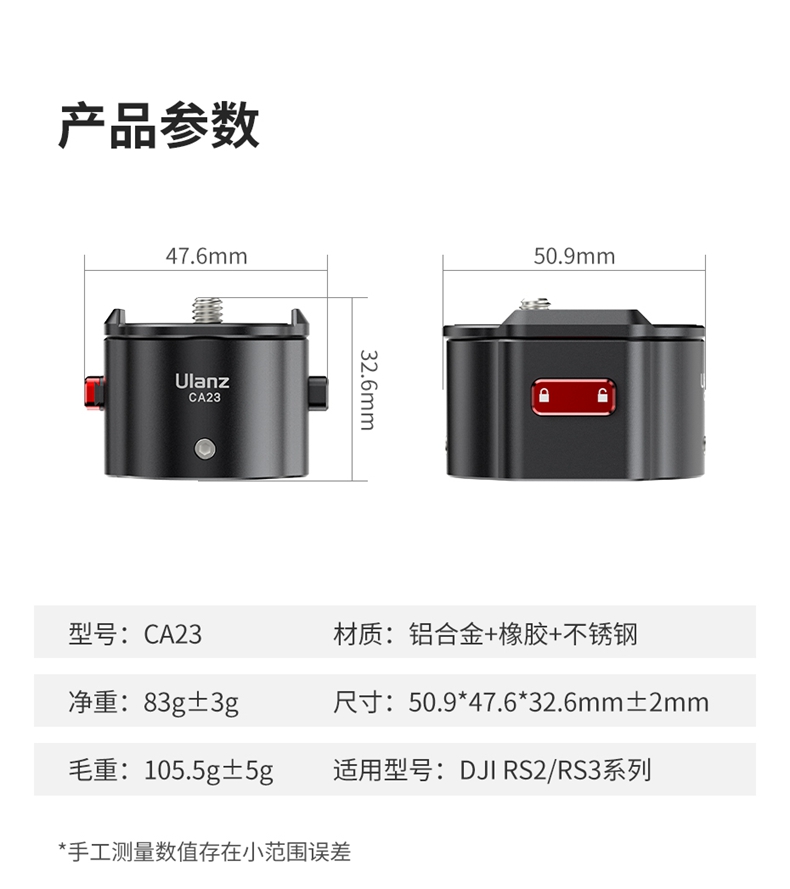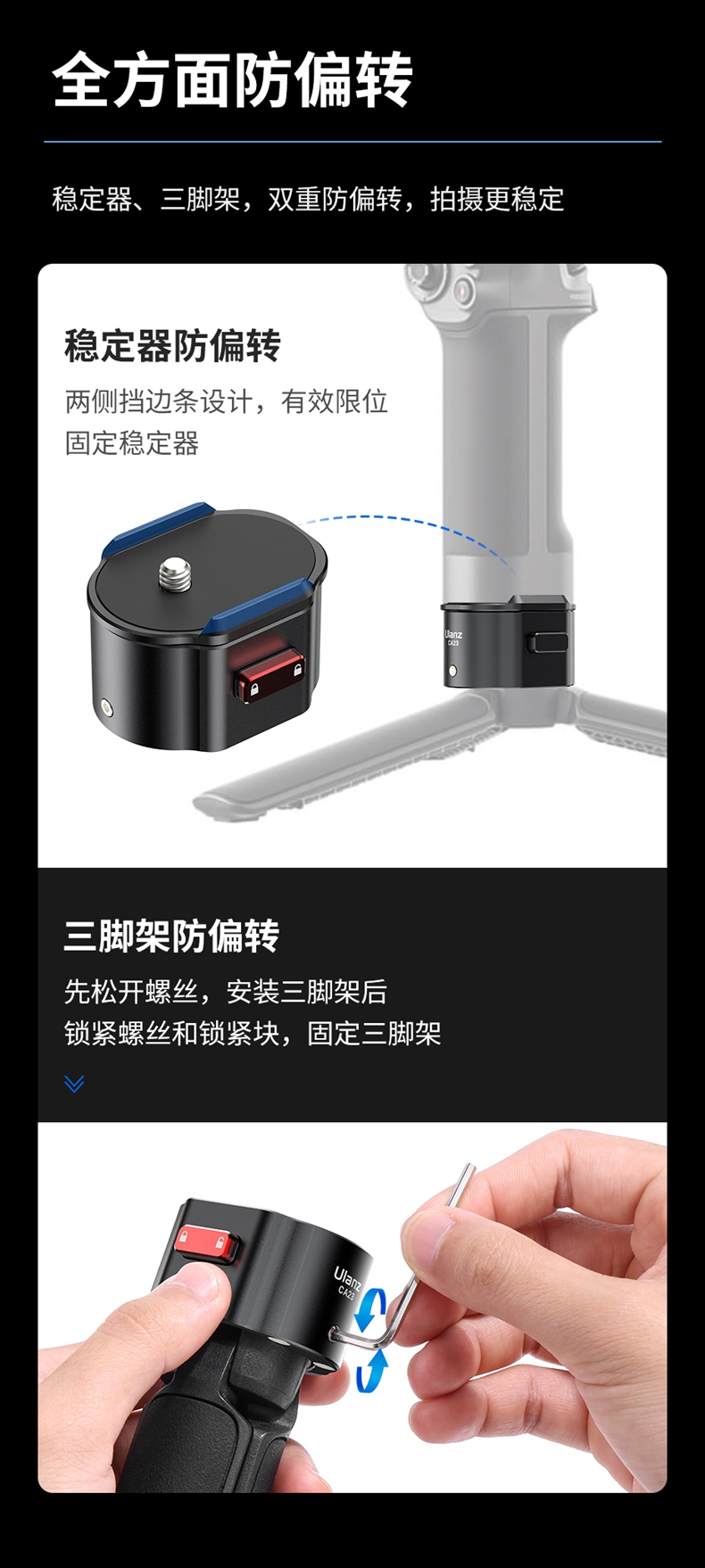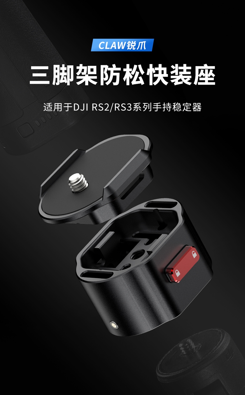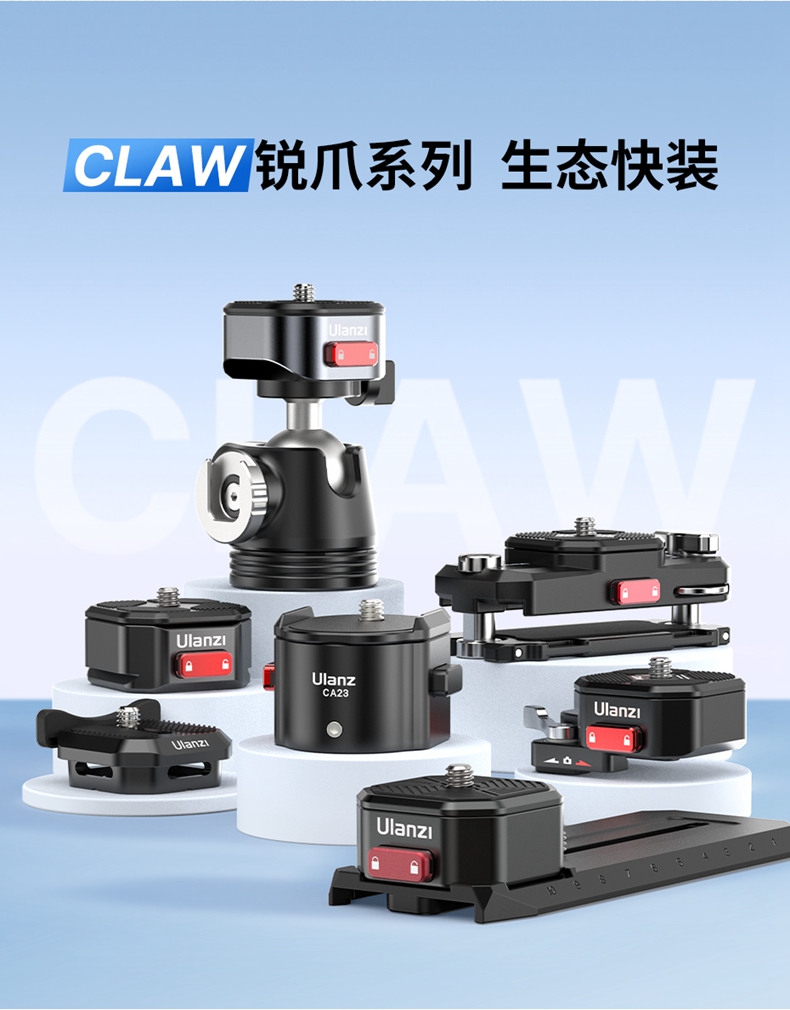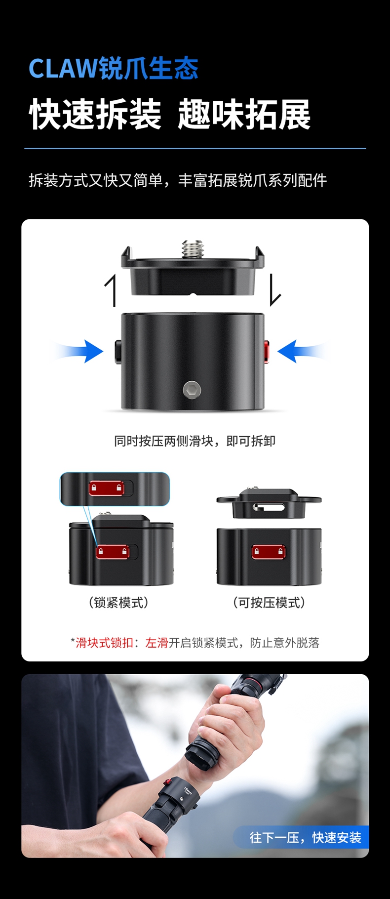 Ulanzi优篮子CA23锐爪CLAW快装板适用DJI大疆如影RS2/RSC2/RS3 MINI手持稳定器三脚架防松防偏转铝合金快装座