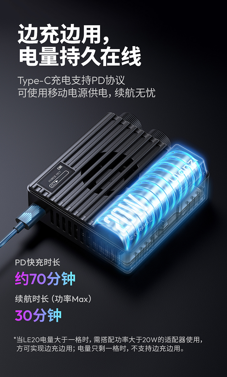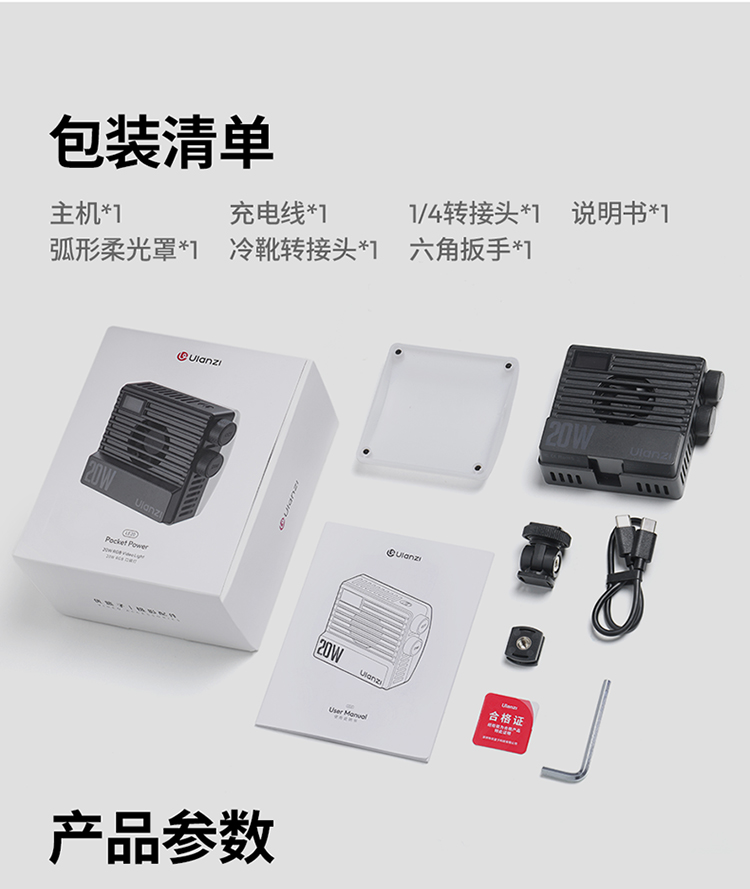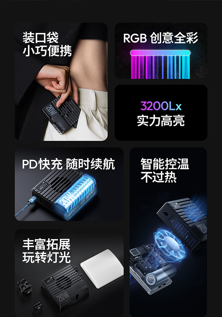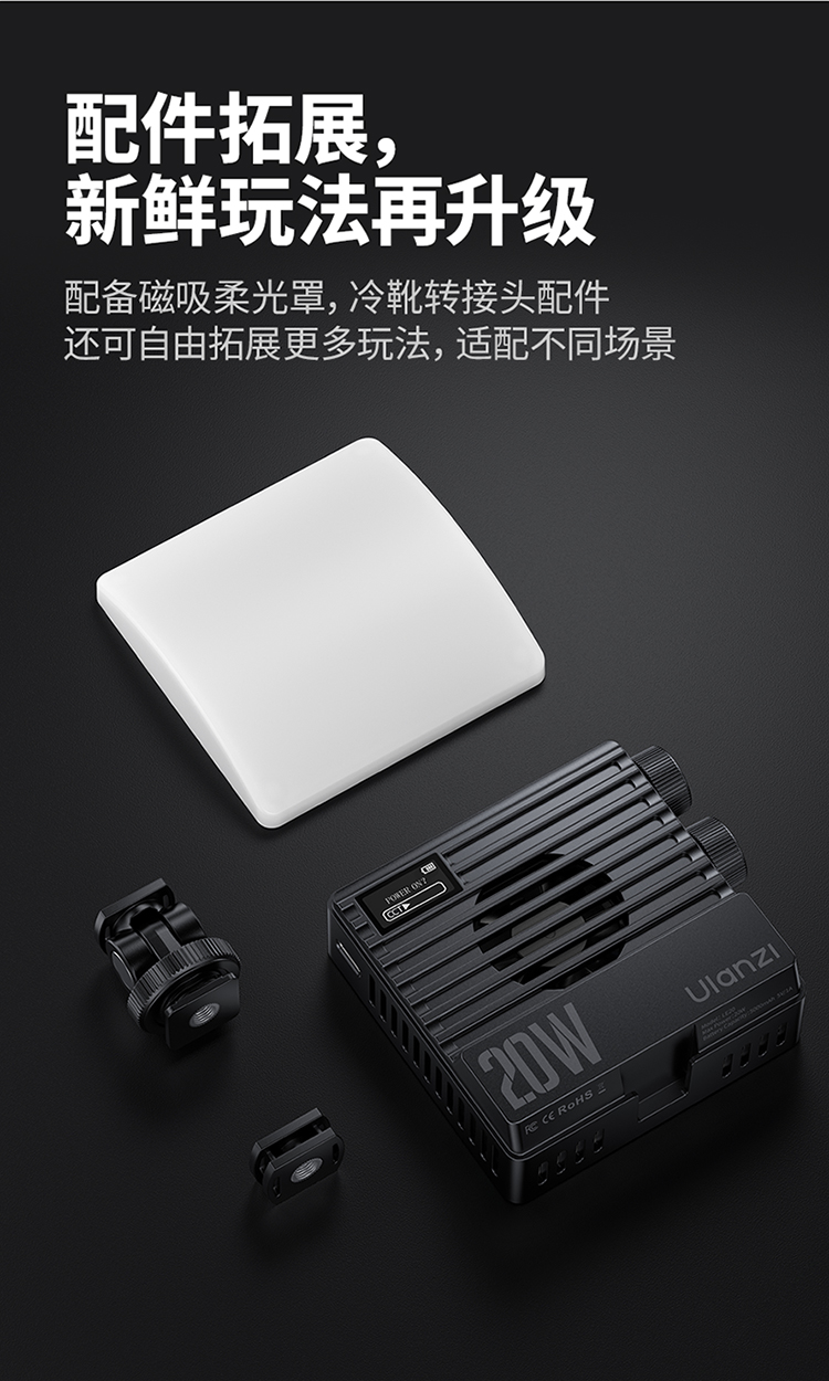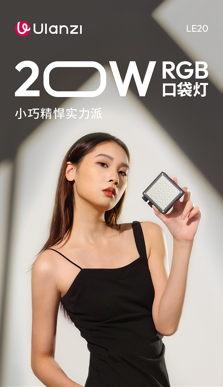 Ulanzi 优篮子LE20 20WRGB口袋补光灯全彩rgb摄影灯20W便携补光灯平板灯