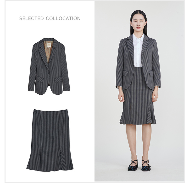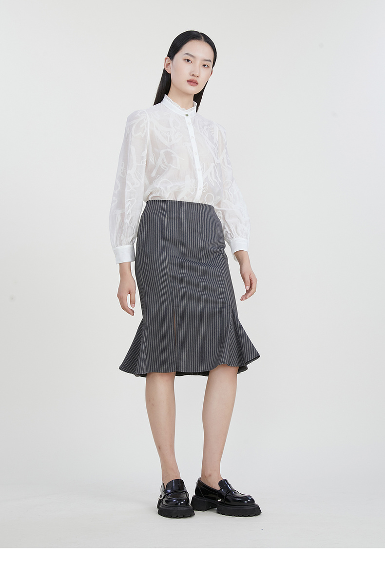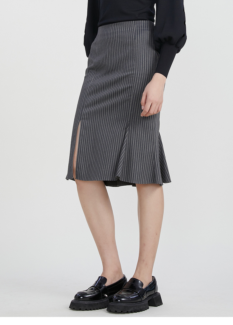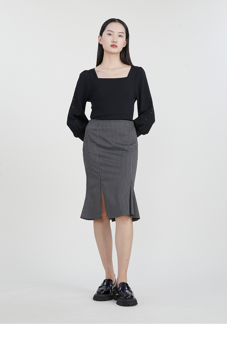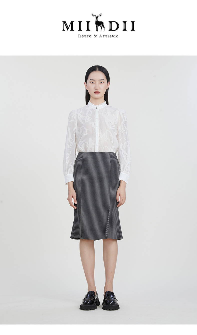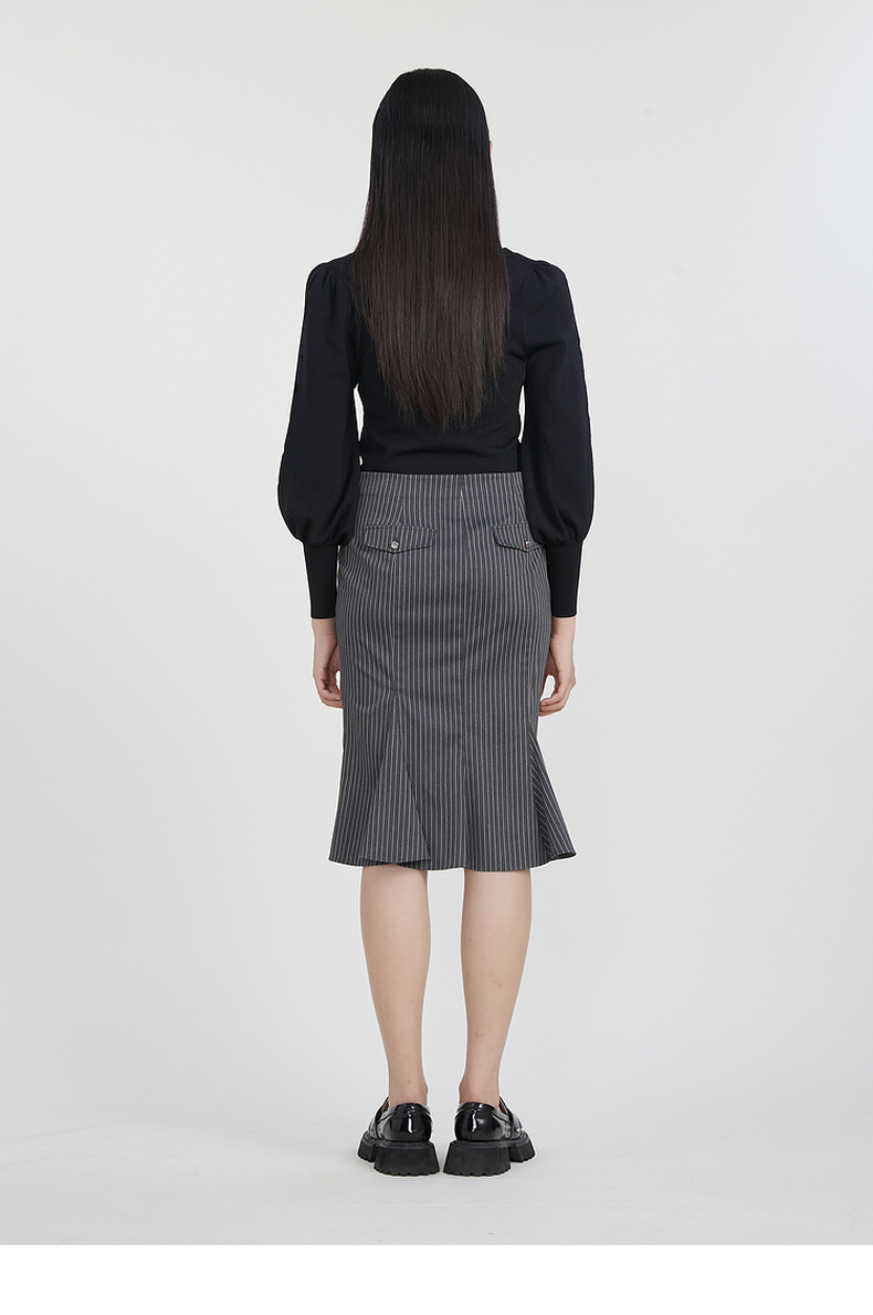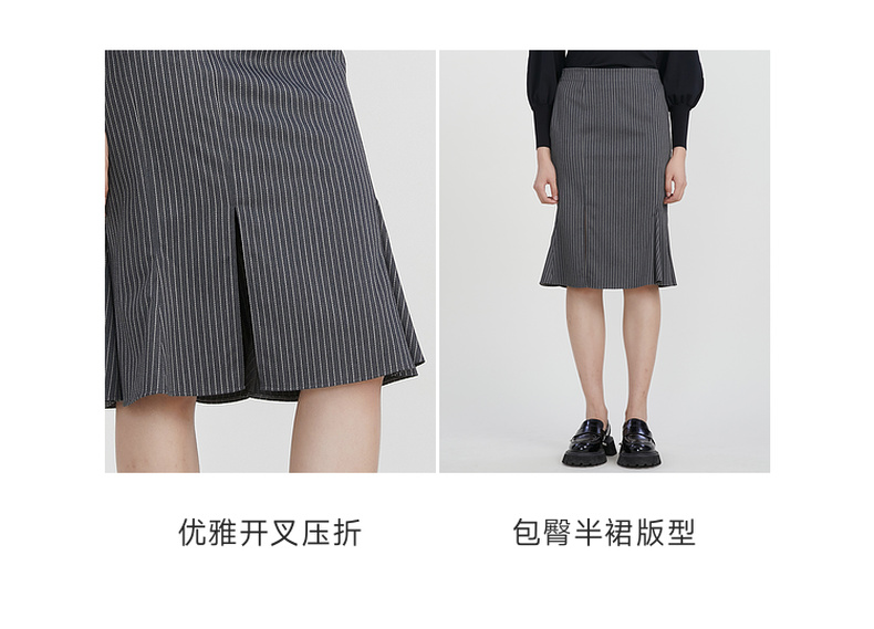 谜底半身裙2023春季新款复古条纹修身包臀裙中长鱼尾裙231MB0103