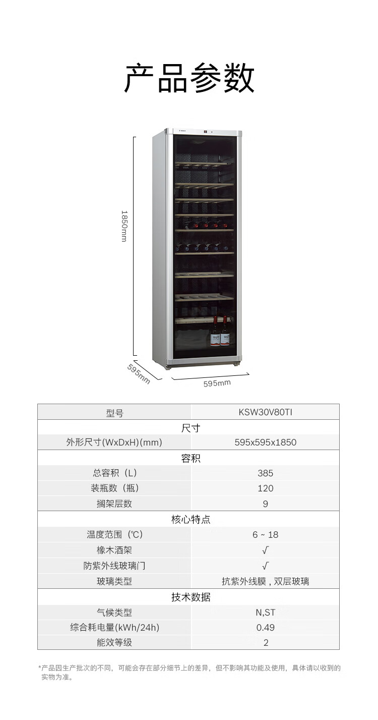 博世(BOSCH)385升专业冷藏恒温冰箱酒柜KSW30V80TI
