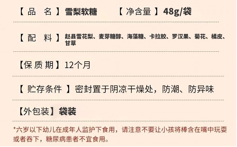 柏舍禅房 无蔗糖古树雪梨软糖48g