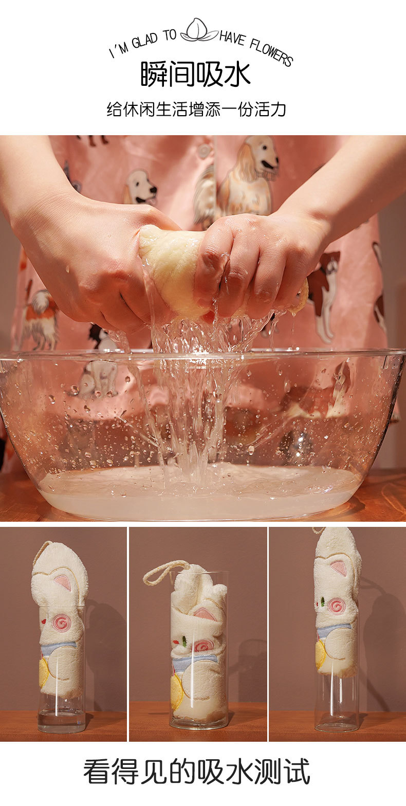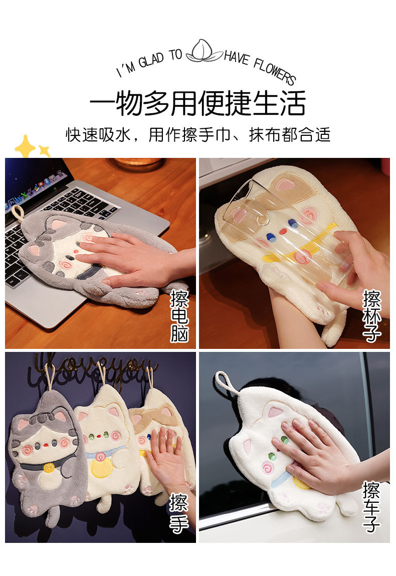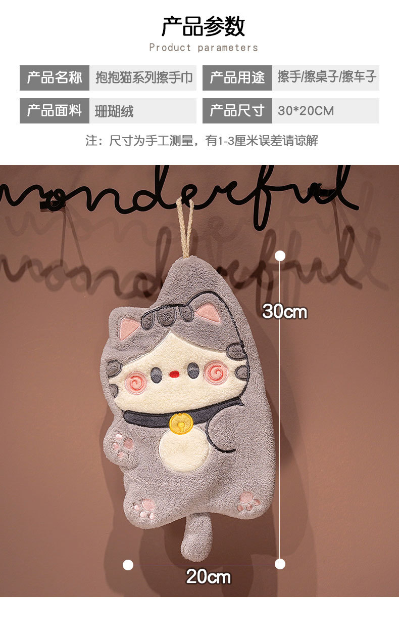 【卡通抱抱猫可挂式擦手巾】吸水如海洋。洗碗布、抹布,乖巧小毛巾,给你无比温柔的呵护,强吸水可爱,伴你轻松日常!