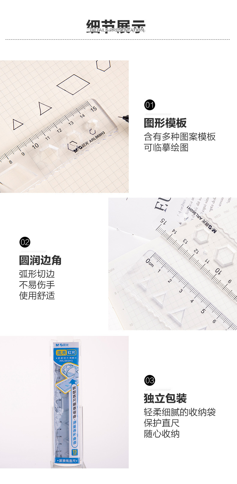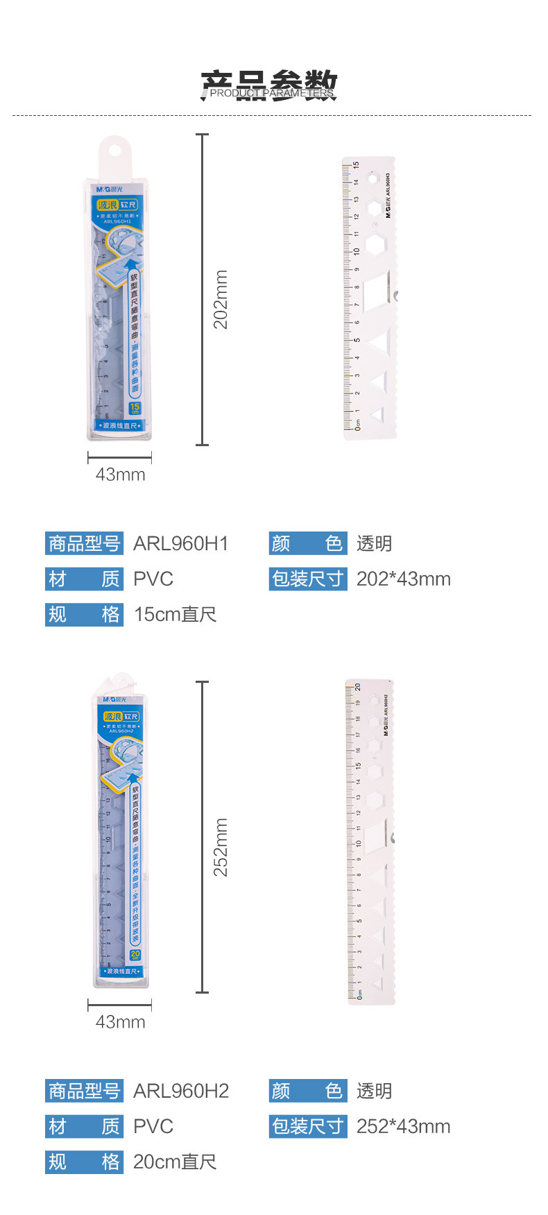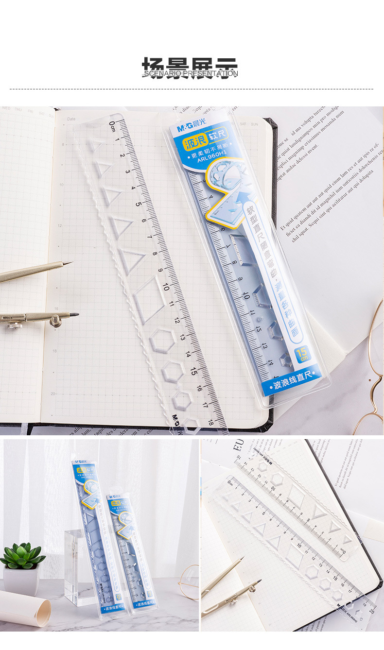 【开学季】晨光ARL960H1多规格软尺 直尺 波浪软尺 随意弯曲 不易折断 绘画 制图 学生用多功能刻度尺