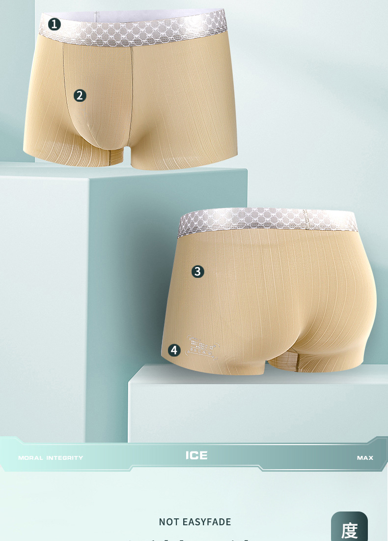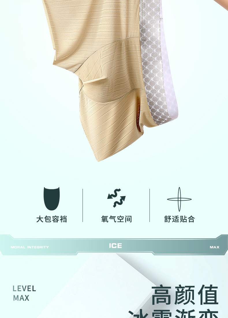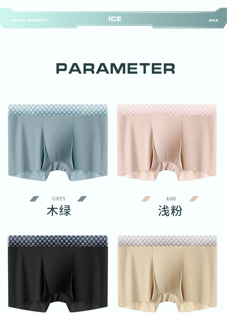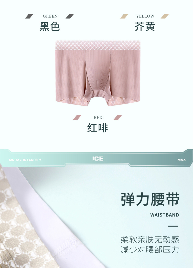 【让它自由呼吸!无痕大码冰丝男士内裤】吸湿排汗速干,亲肤柔软舒适,裸感无痕微细冰丝,薄款透气,夏季短裤宽松紫杉醇yi菌裆男平角裤!
