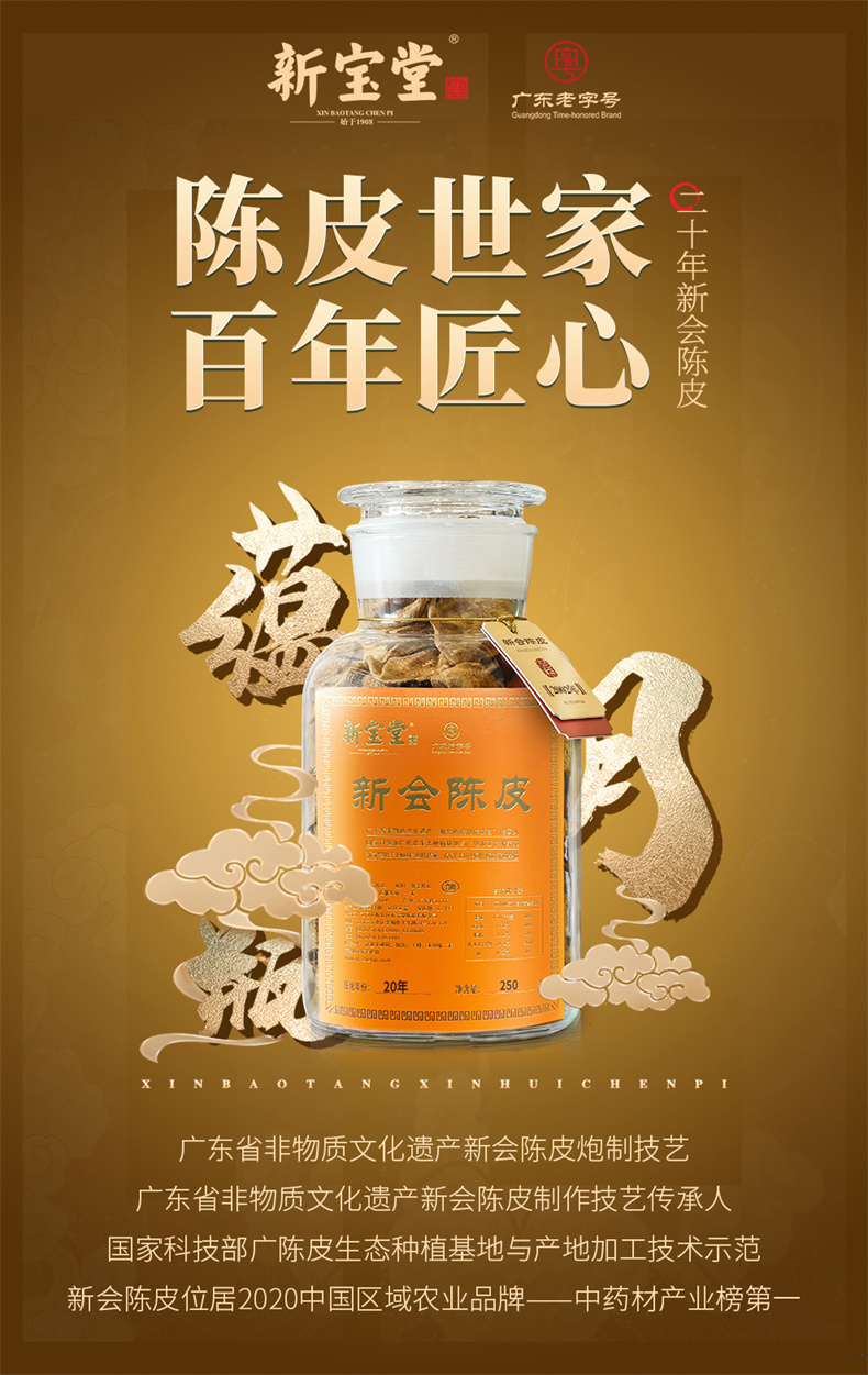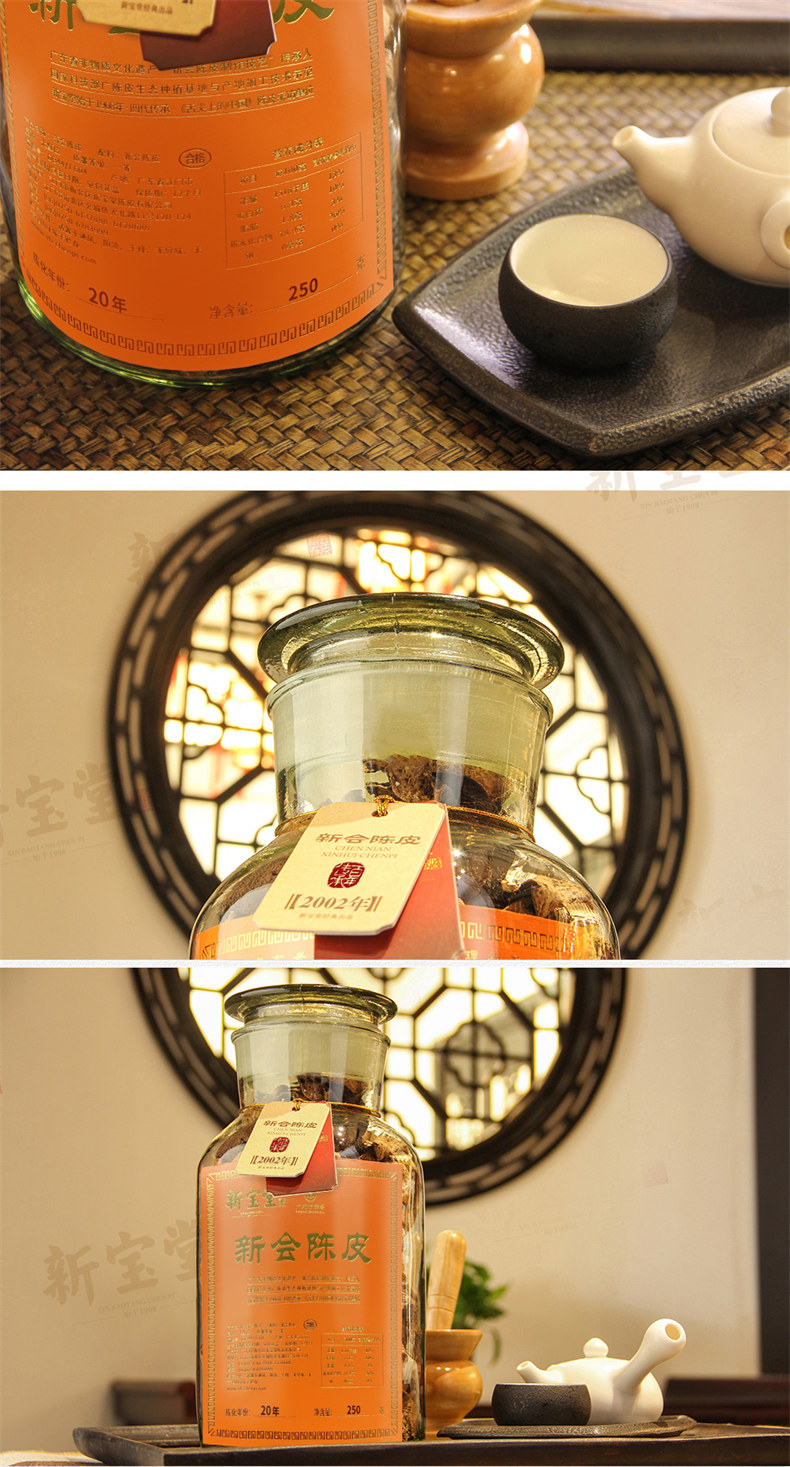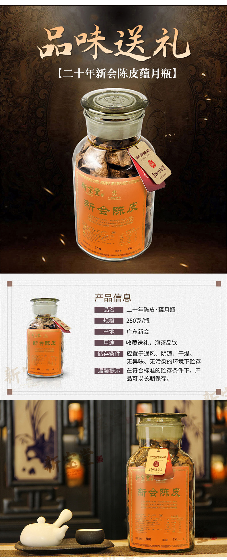 【正品保真 放心购买】新宝堂二十年新会陈皮广东特产蕴月瓶礼盒250克(京东同款)