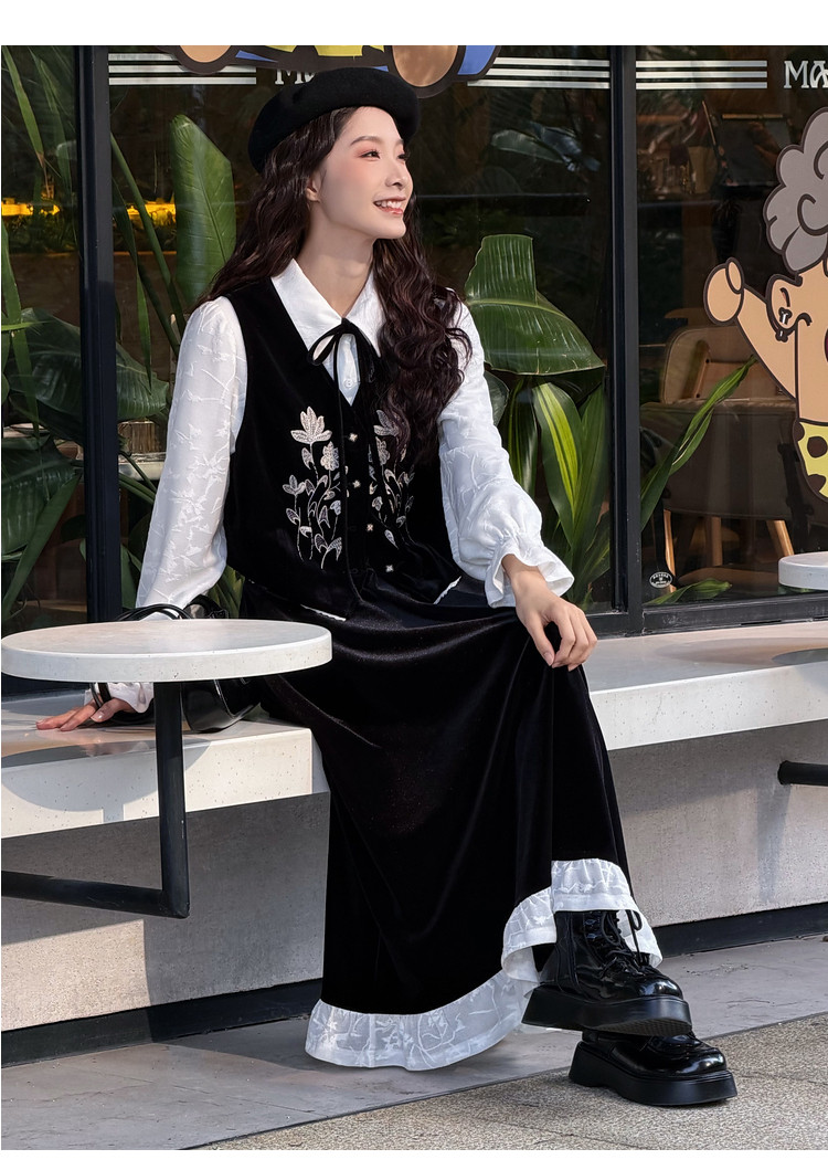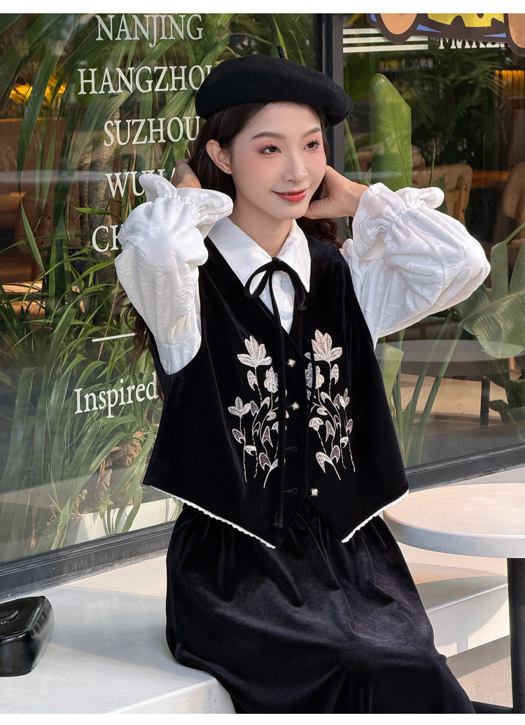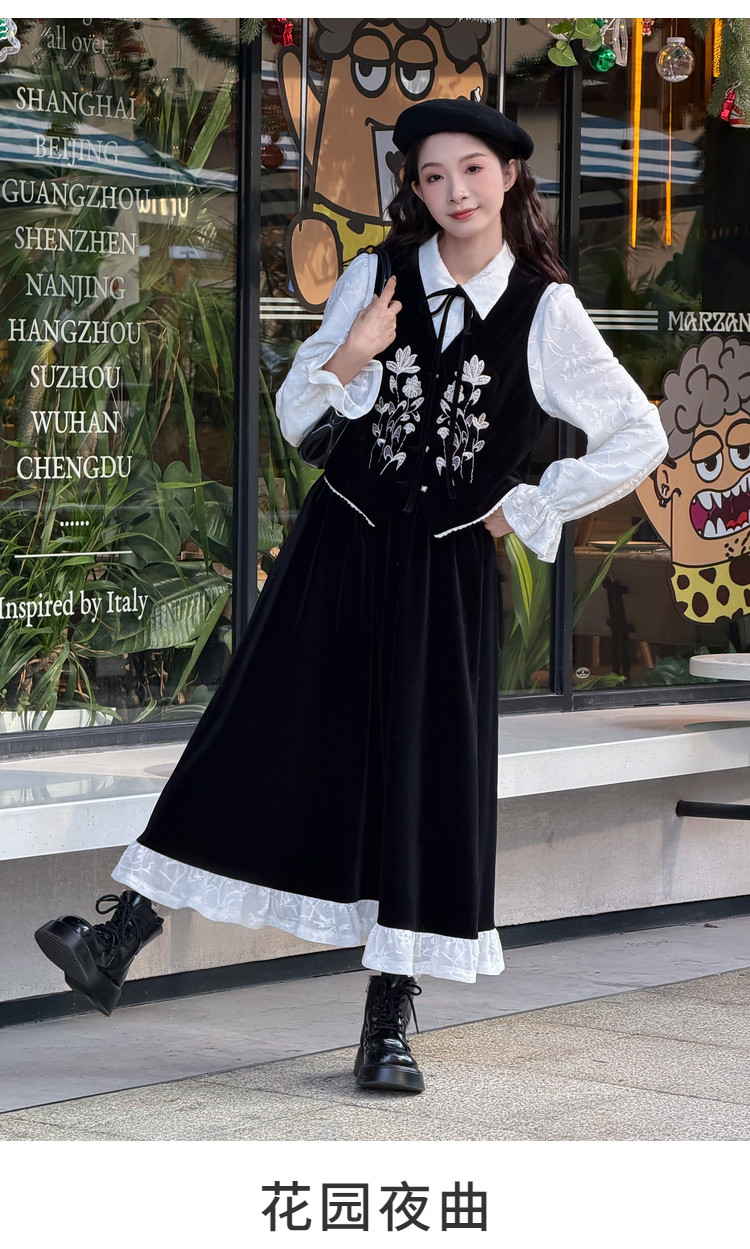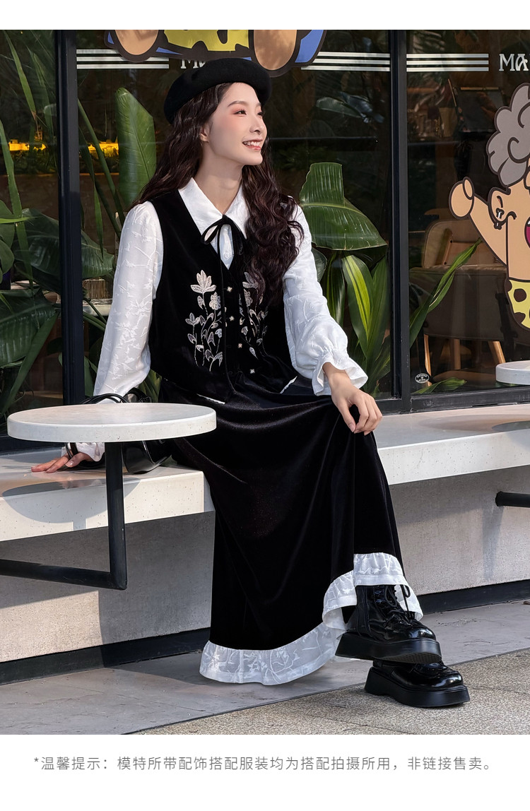 两三事花园夜曲2025冬新款新中式绣花马夹半身裙两件套女时尚套装
