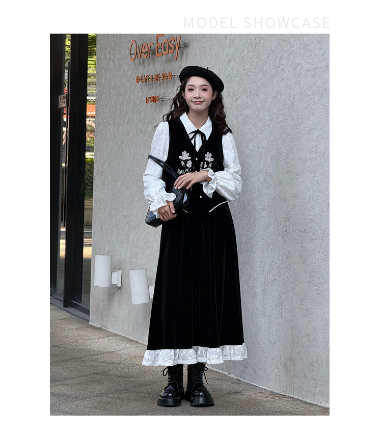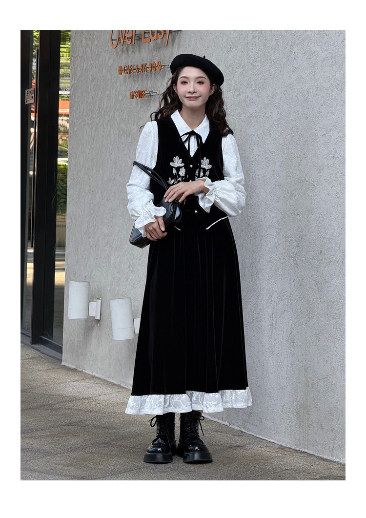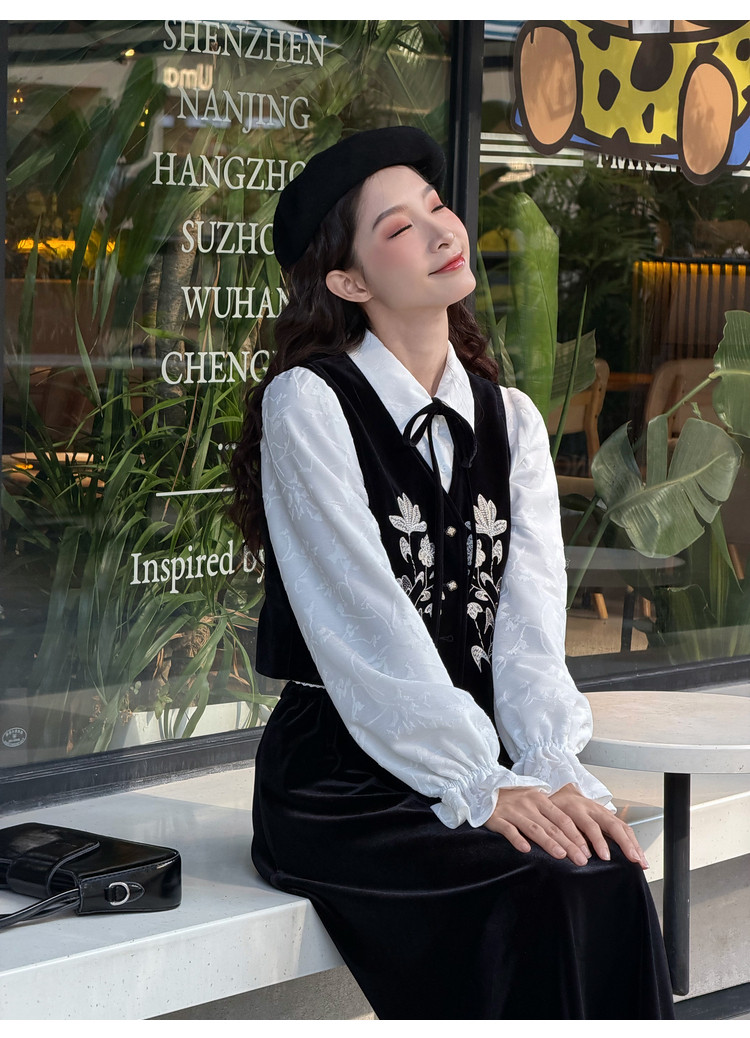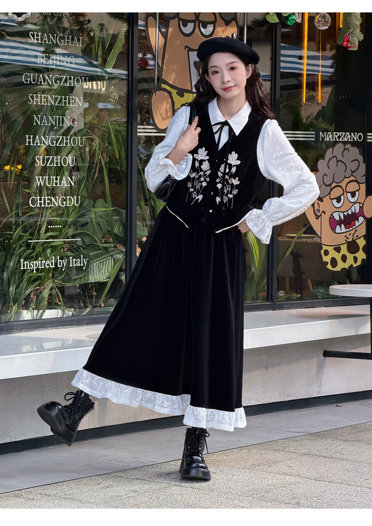 两三事花园夜曲2025冬新款新中式绣花马夹半身裙两件套女时尚套装