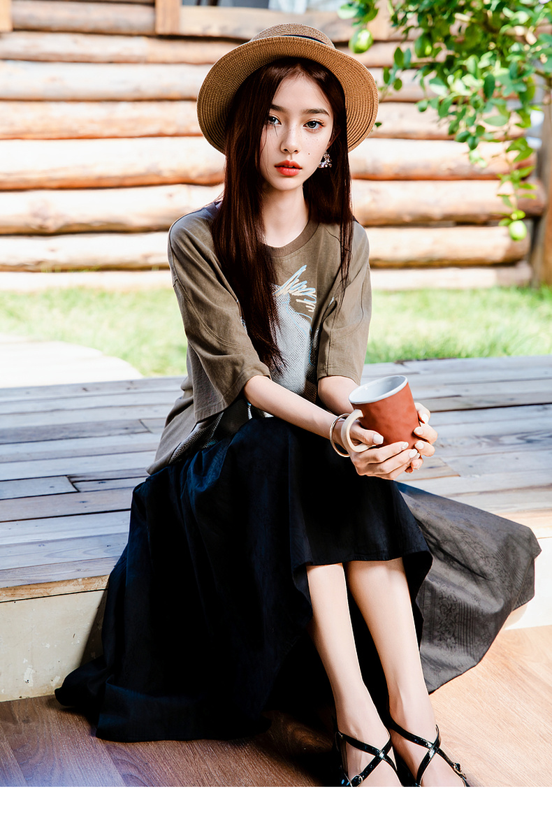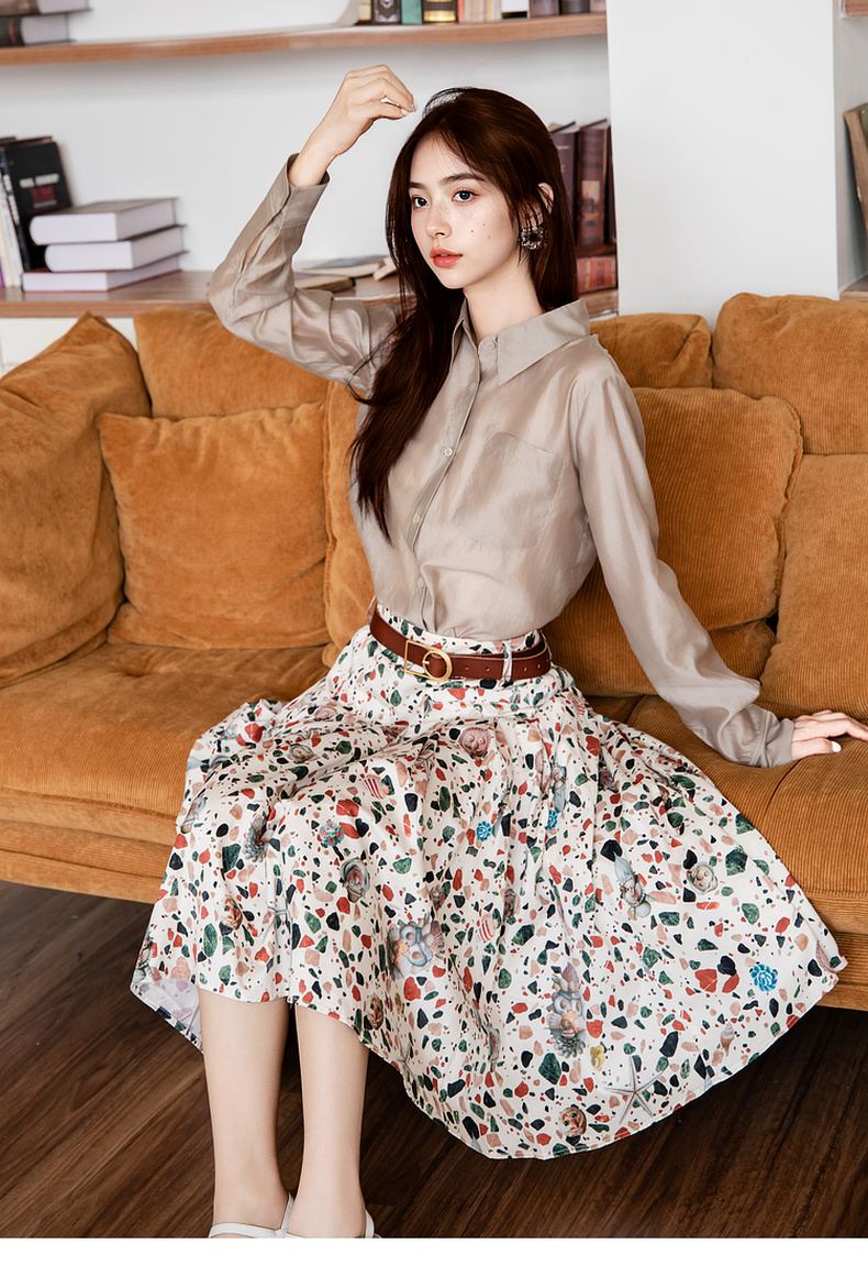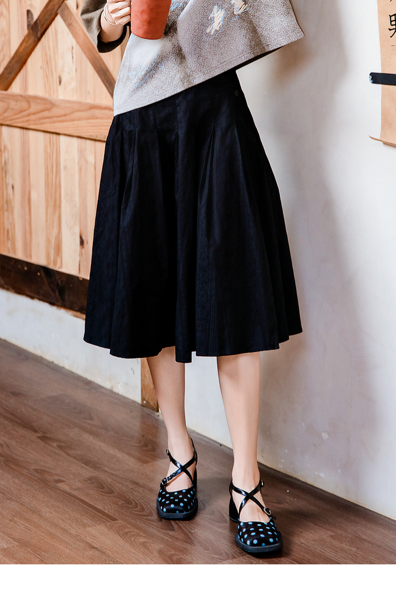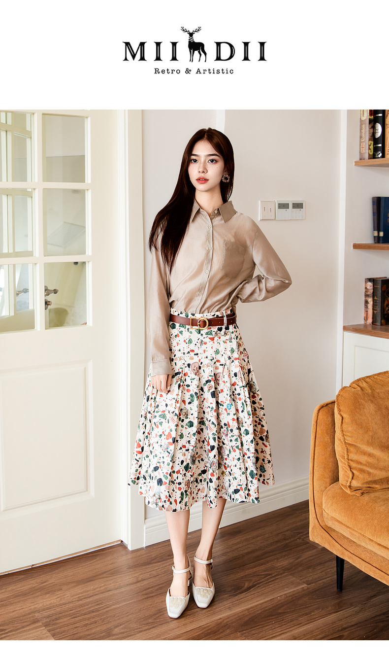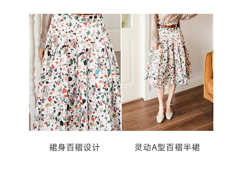 谜底花色半身裙2025秋季新款复古风修身印花百褶中长裙257MB7821