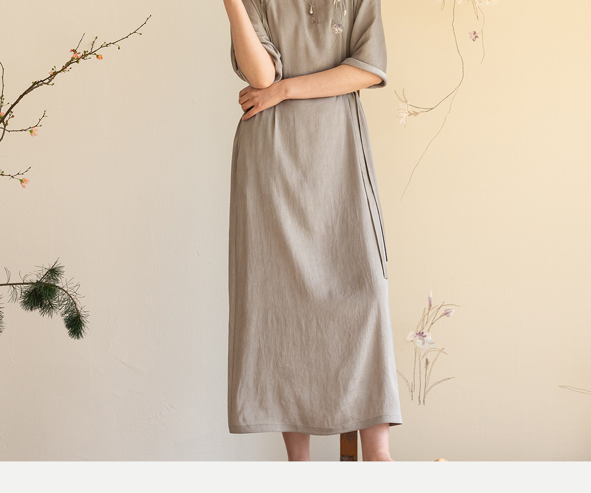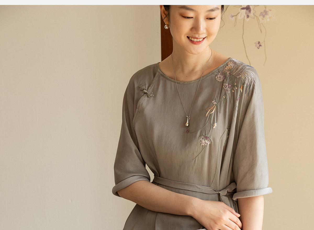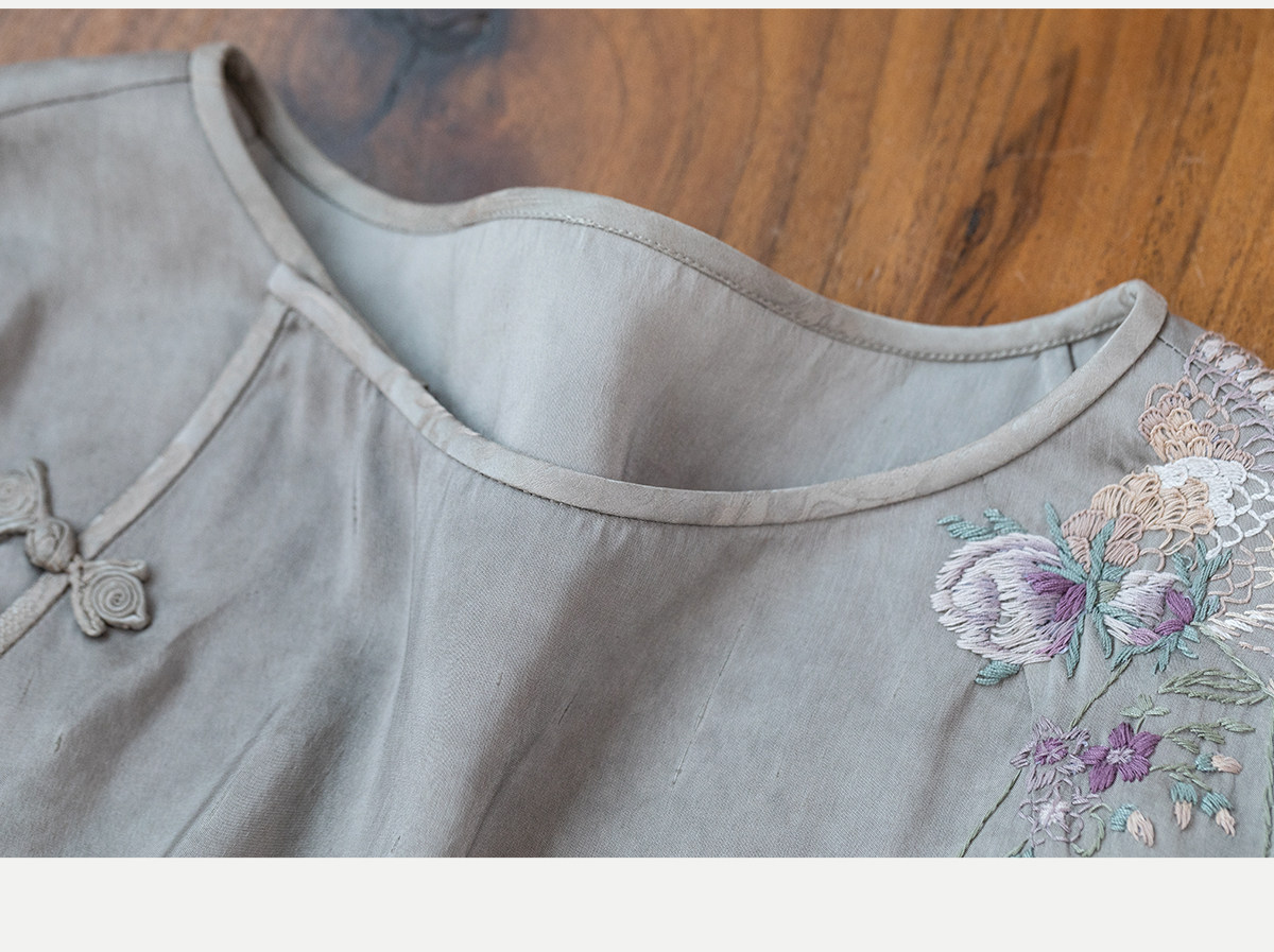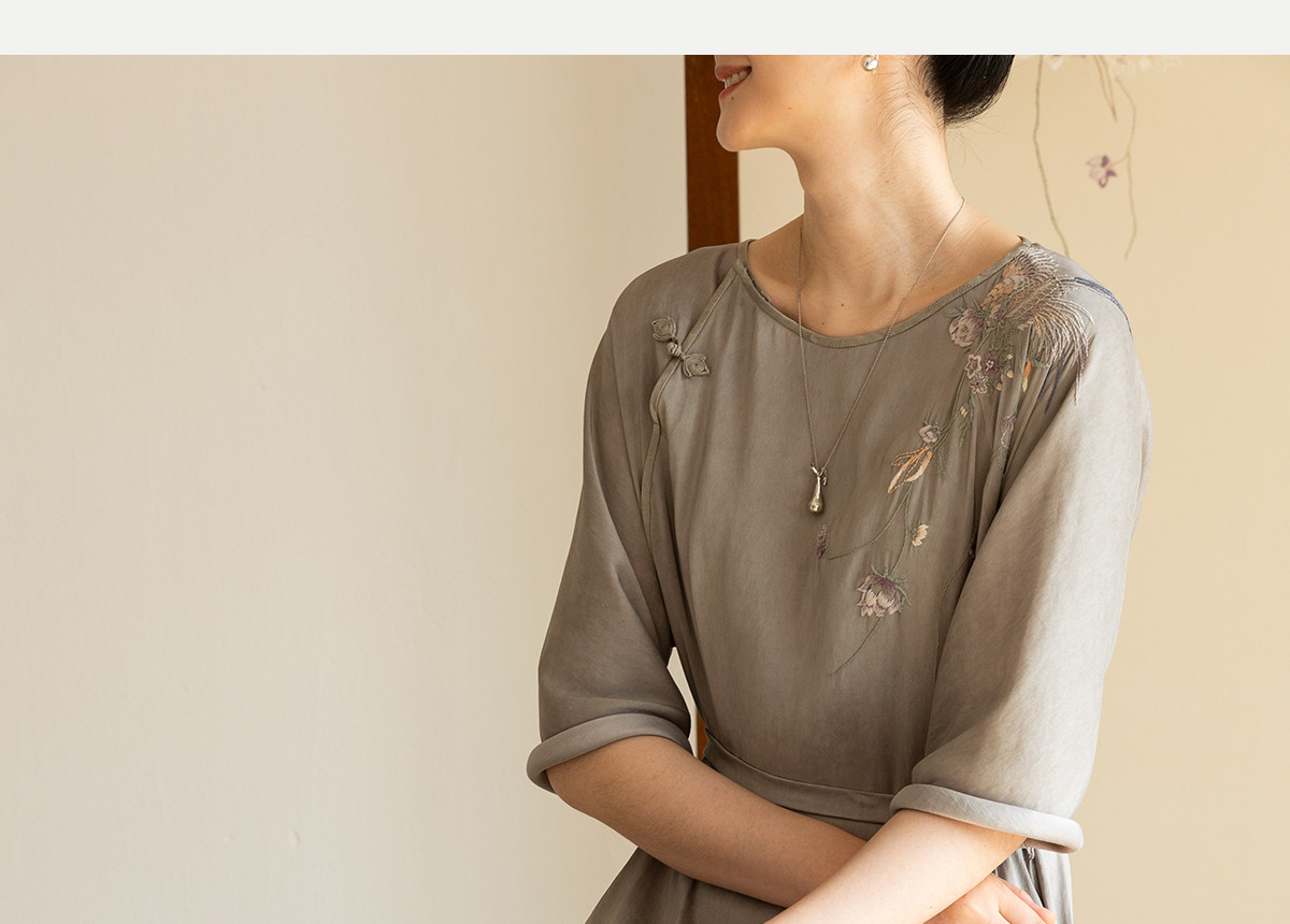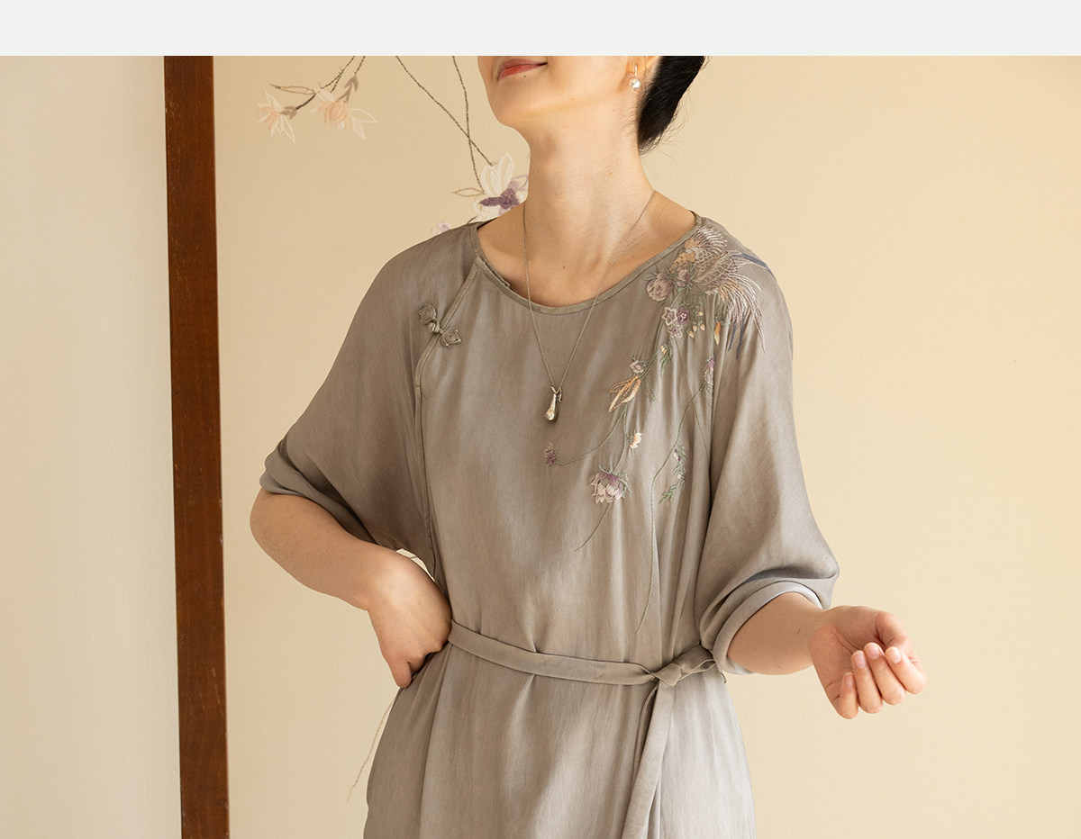 牧衣游原创 22姆米重磅双宫绸手工刺绣桑蚕丝旗袍复古中式风 孤岑
