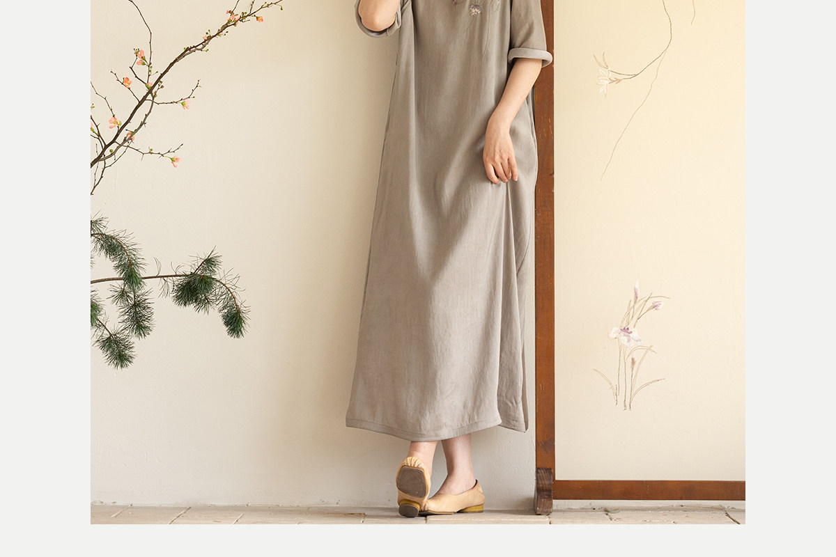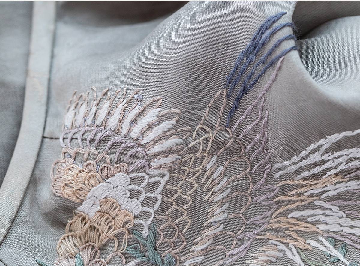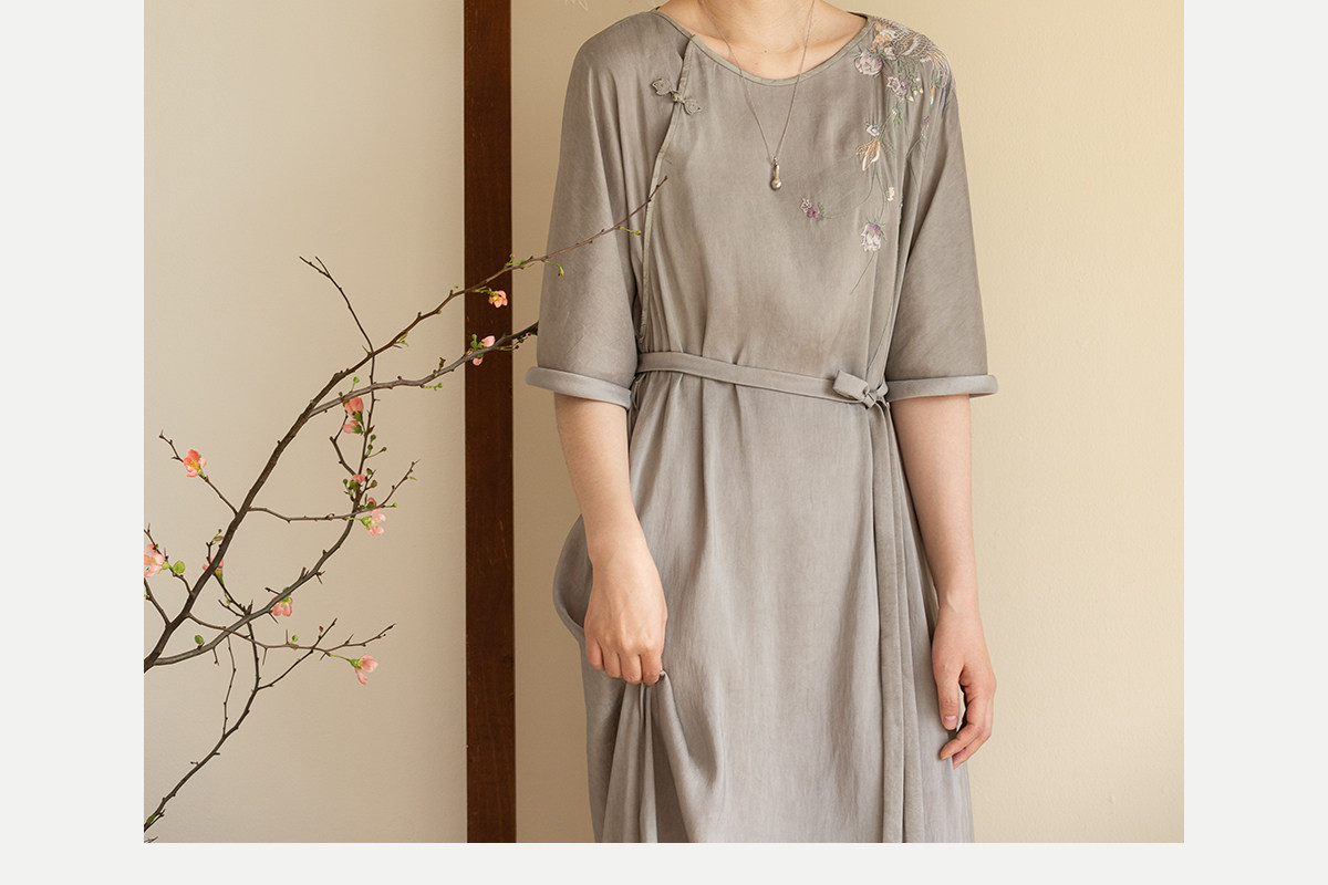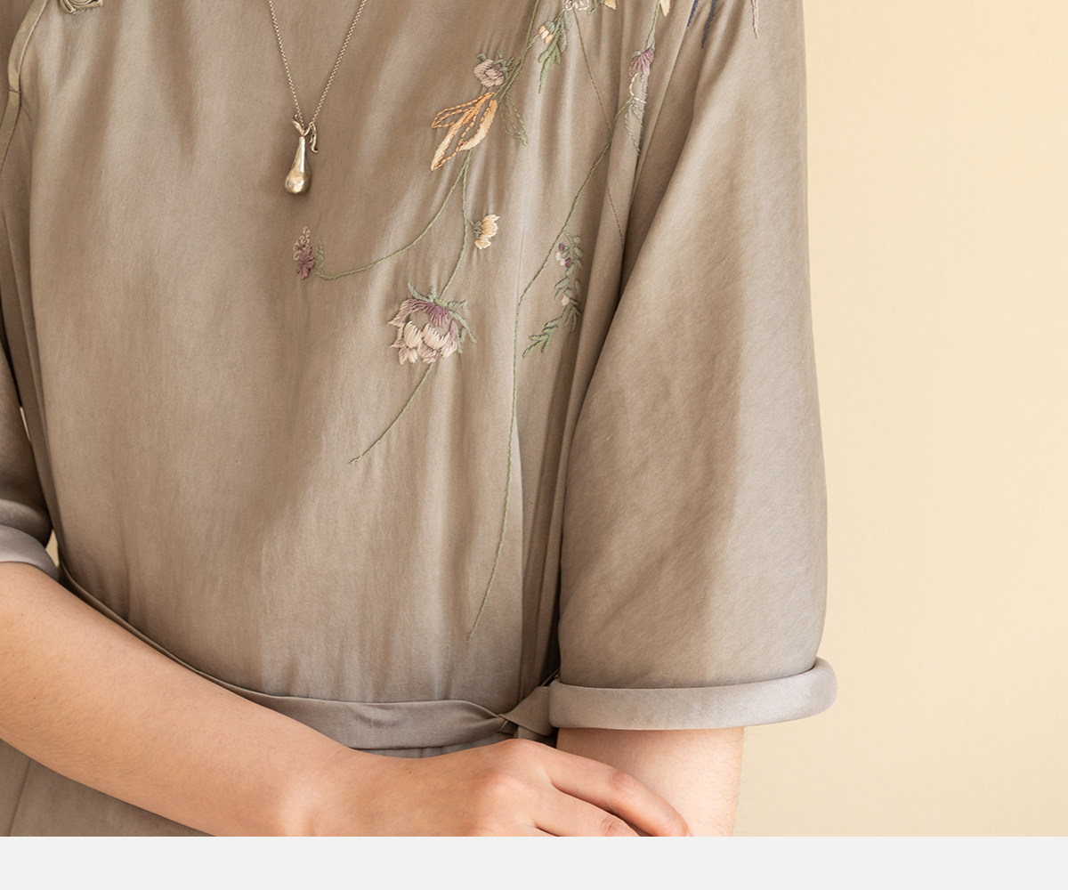 牧衣游原创 22姆米重磅双宫绸手工刺绣桑蚕丝旗袍复古中式风 孤岑