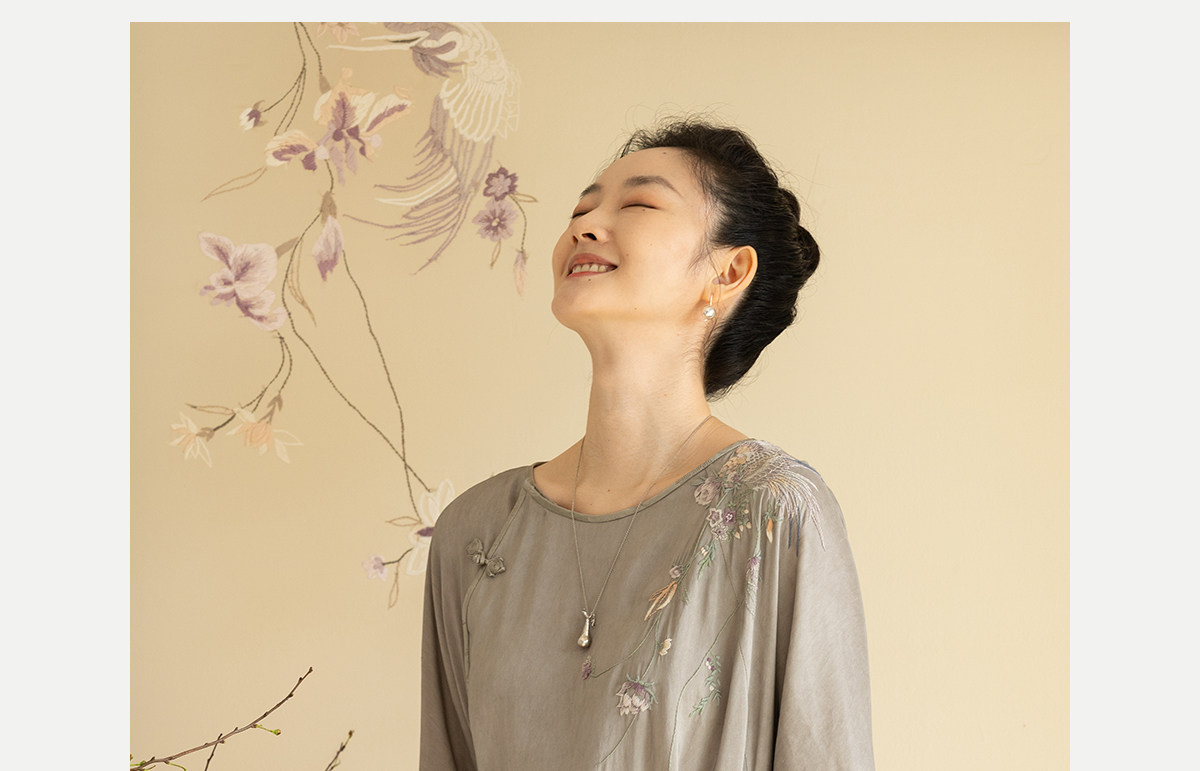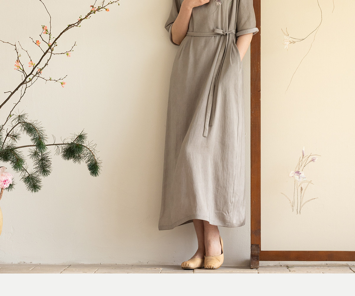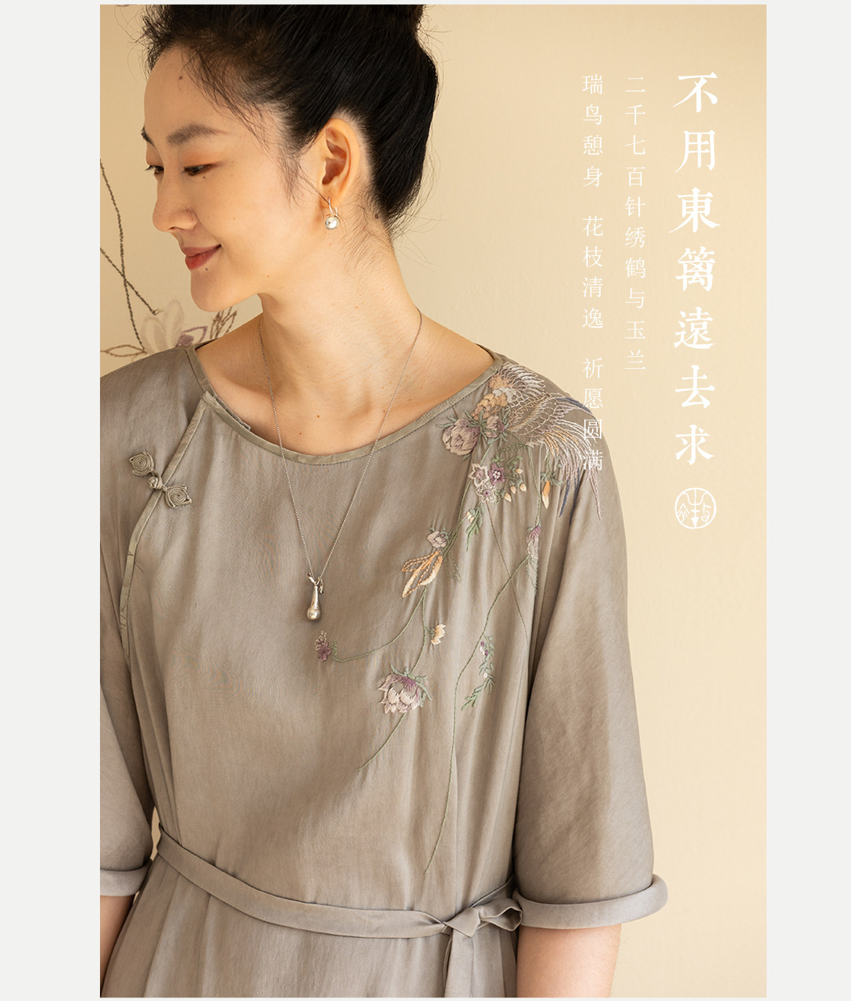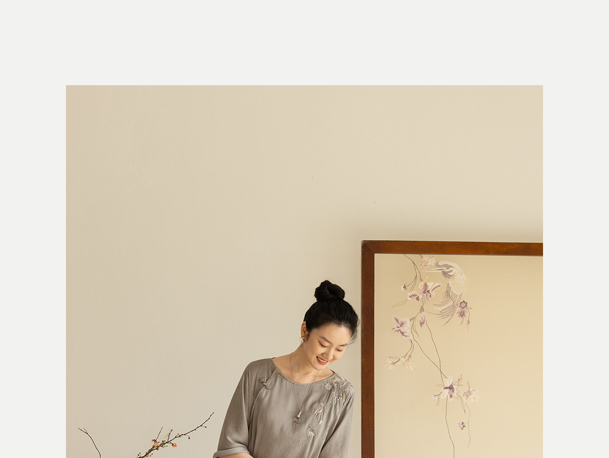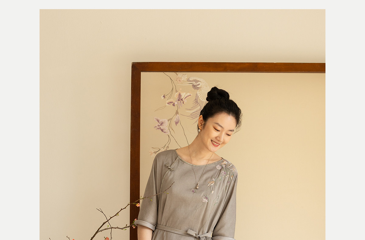 牧衣游原创 22姆米重磅双宫绸手工刺绣桑蚕丝旗袍复古中式风 孤岑
