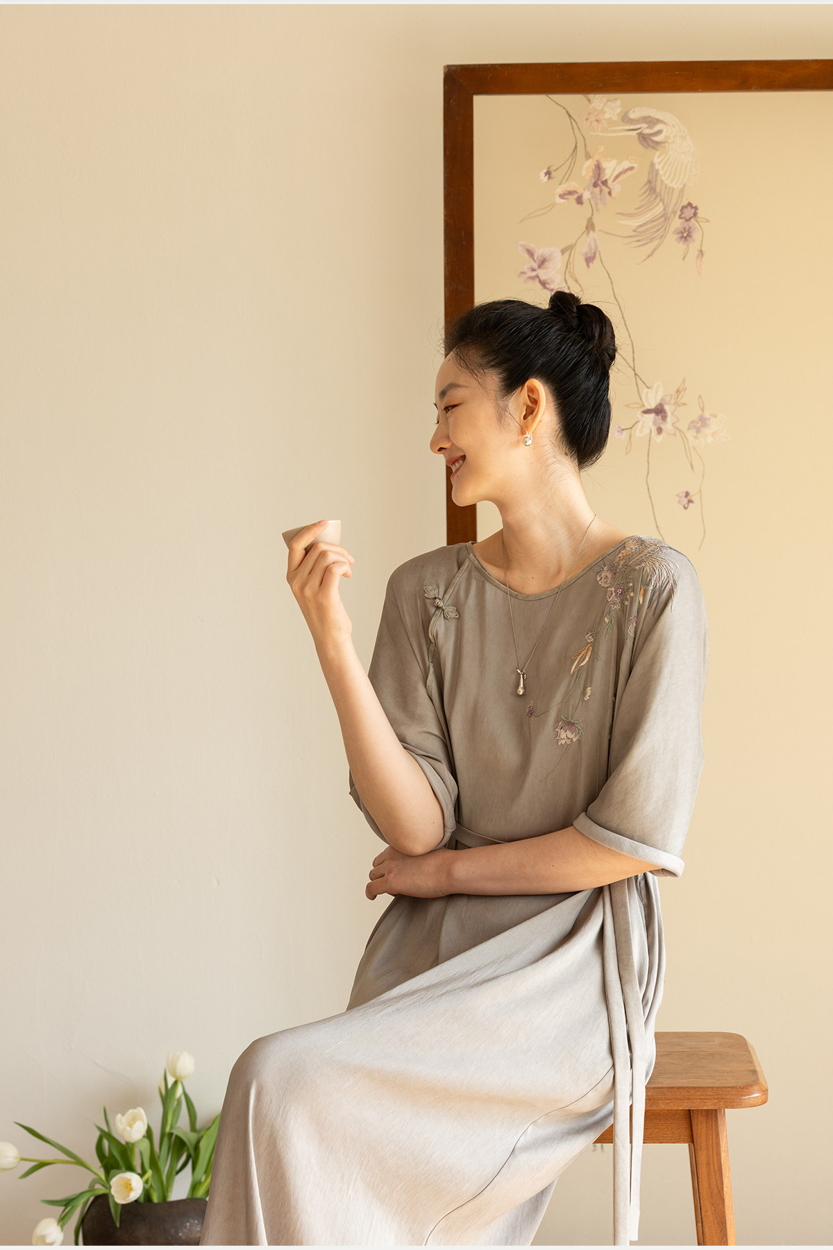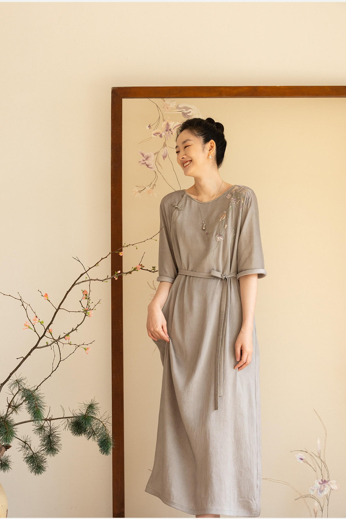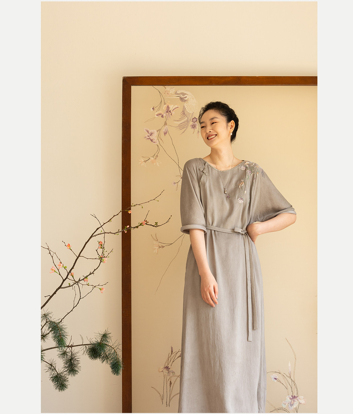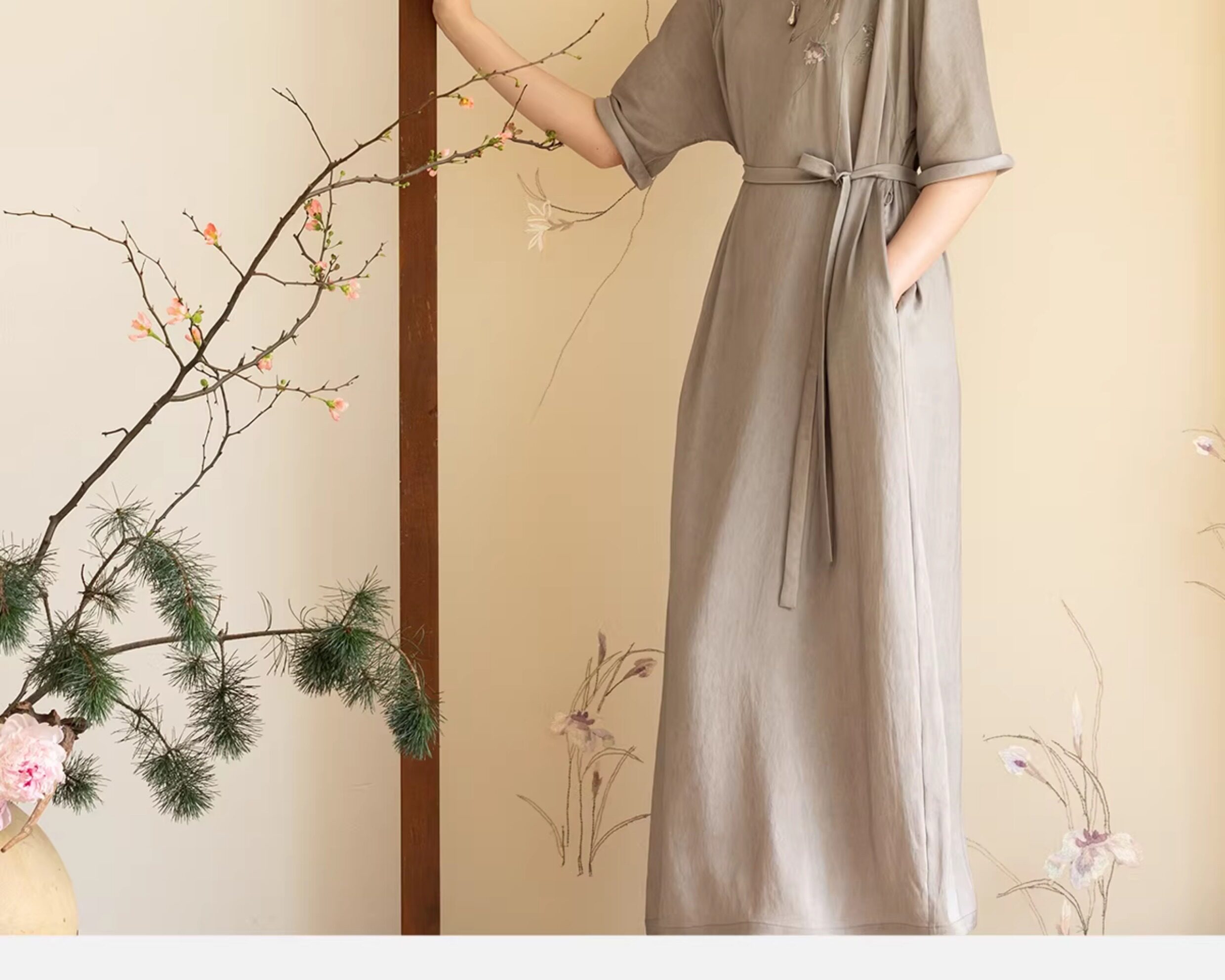 牧衣游原创 22姆米重磅双宫绸手工刺绣桑蚕丝旗袍复古中式风 孤岑