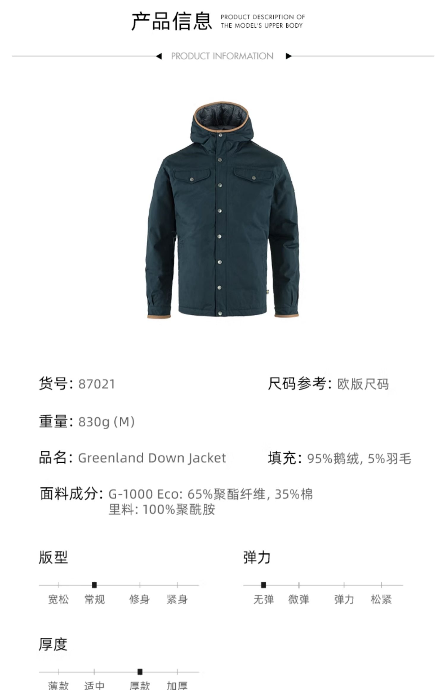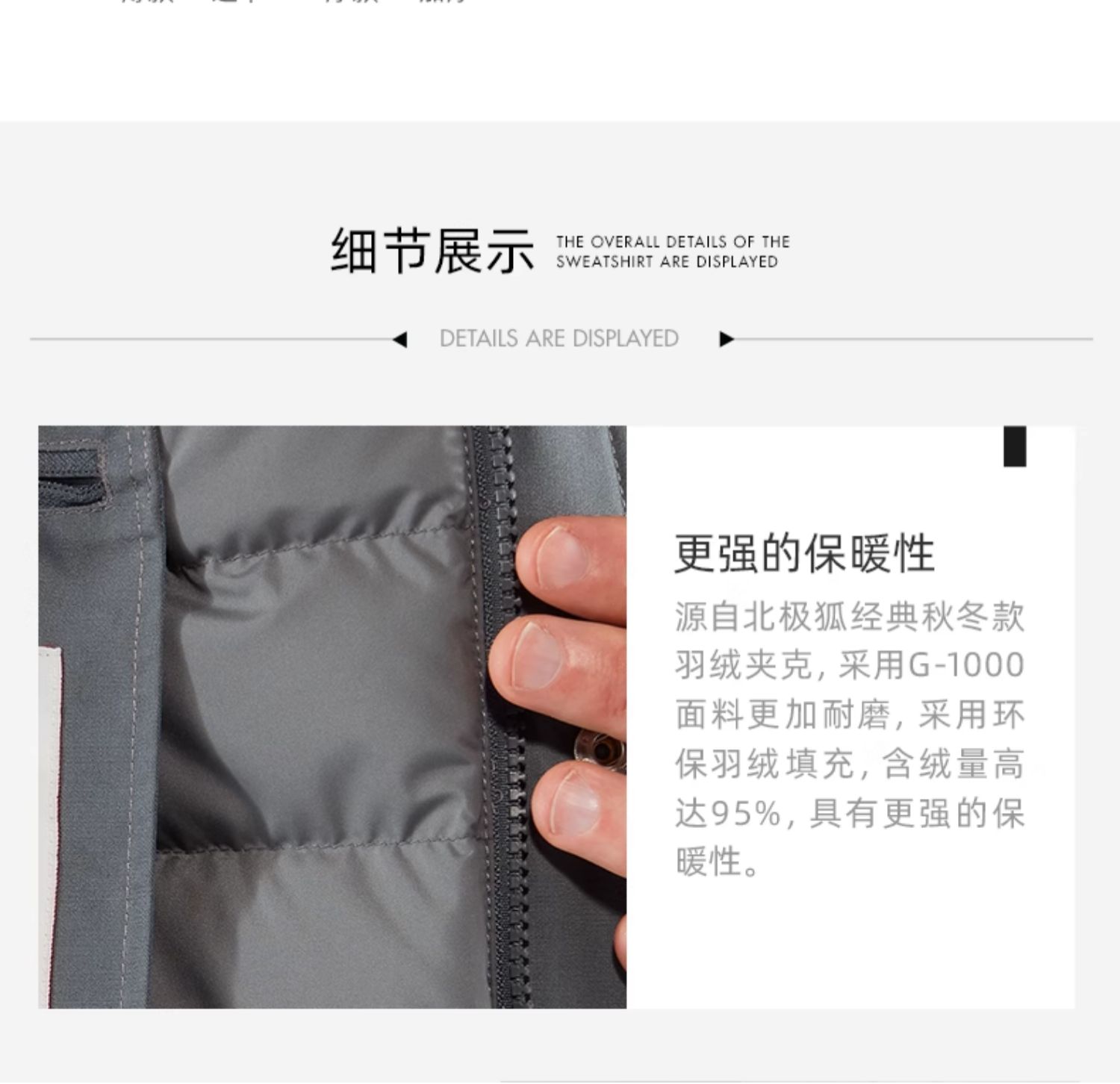 北极狐秋冬白鹅绒羽绒服G-1000夹克外套男户外休闲保暖 87021