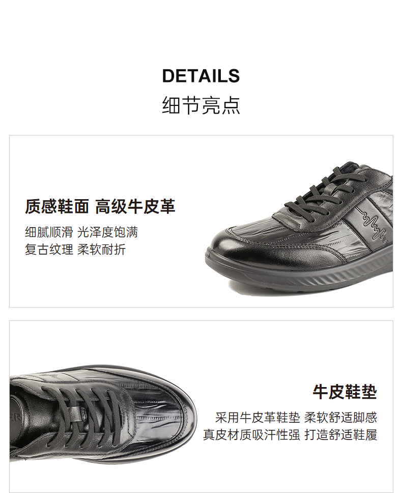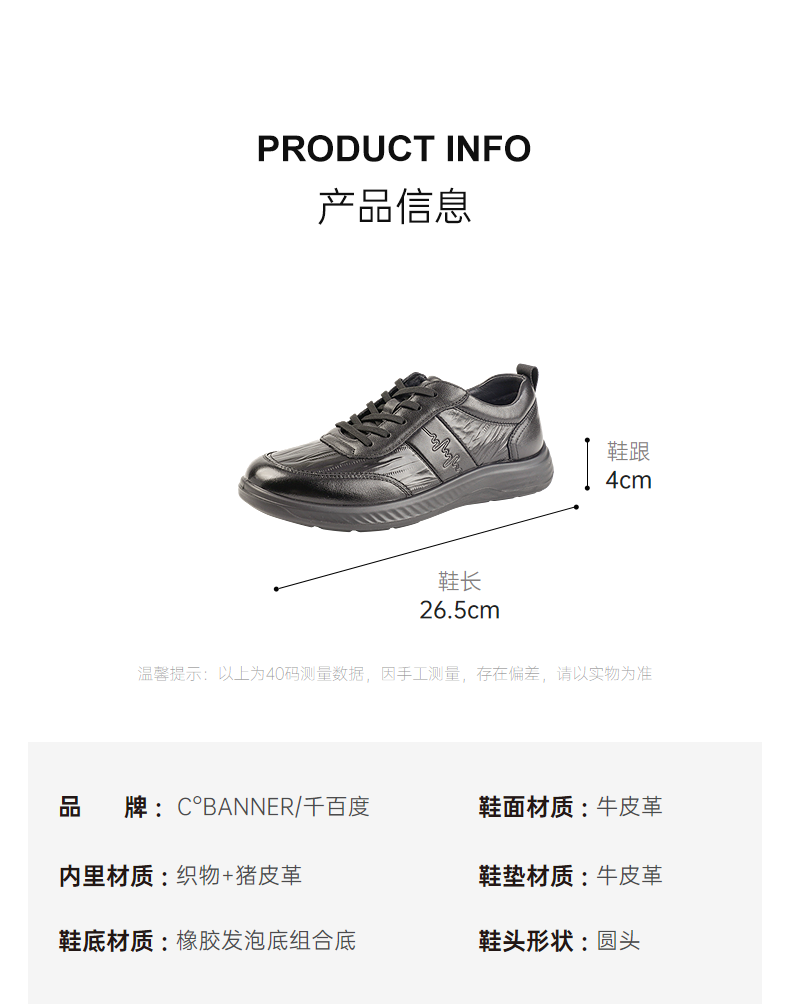 千百度2026春季商务休闲复古纹理 柔软耐折男鞋A26133160