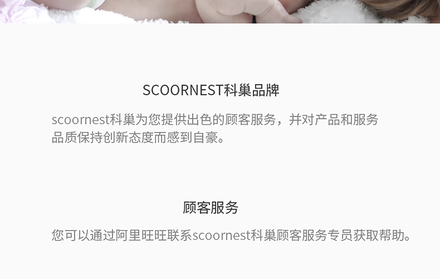 - Scoornest始终秉承给每一位宝宝送去科学的、关心的、创新的成长体验,通过提供商品和服务,使顾客形成守护、发展、巩固这种弥足珍贵的亲情的爱。