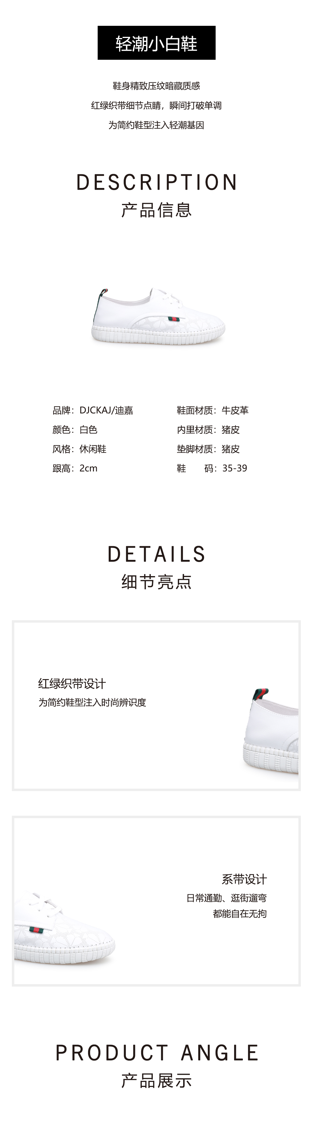 豪麟名鞋奥莱迪嘉女鞋时尚休闲鞋牛皮革DJXXO52WX210白色 原价1460元
